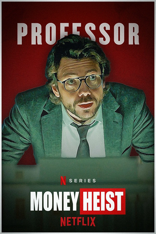 An artistic tribute to 'The Professor' from Money Heist, designed with striking visuals that reflect his intelligence, strategy, and iconic persona.