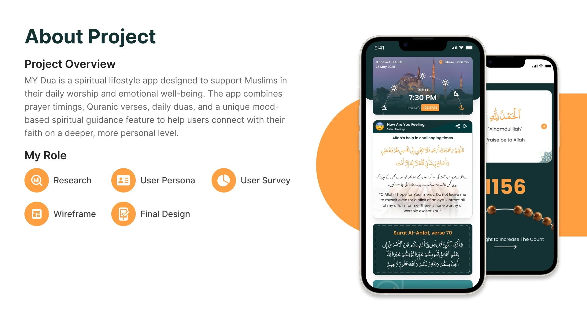 My Dua is a modern spiritual app helping Muslims enrich daily worship and well-being with prayer times, duas, Quranic verses, and mood-based faith guidance.