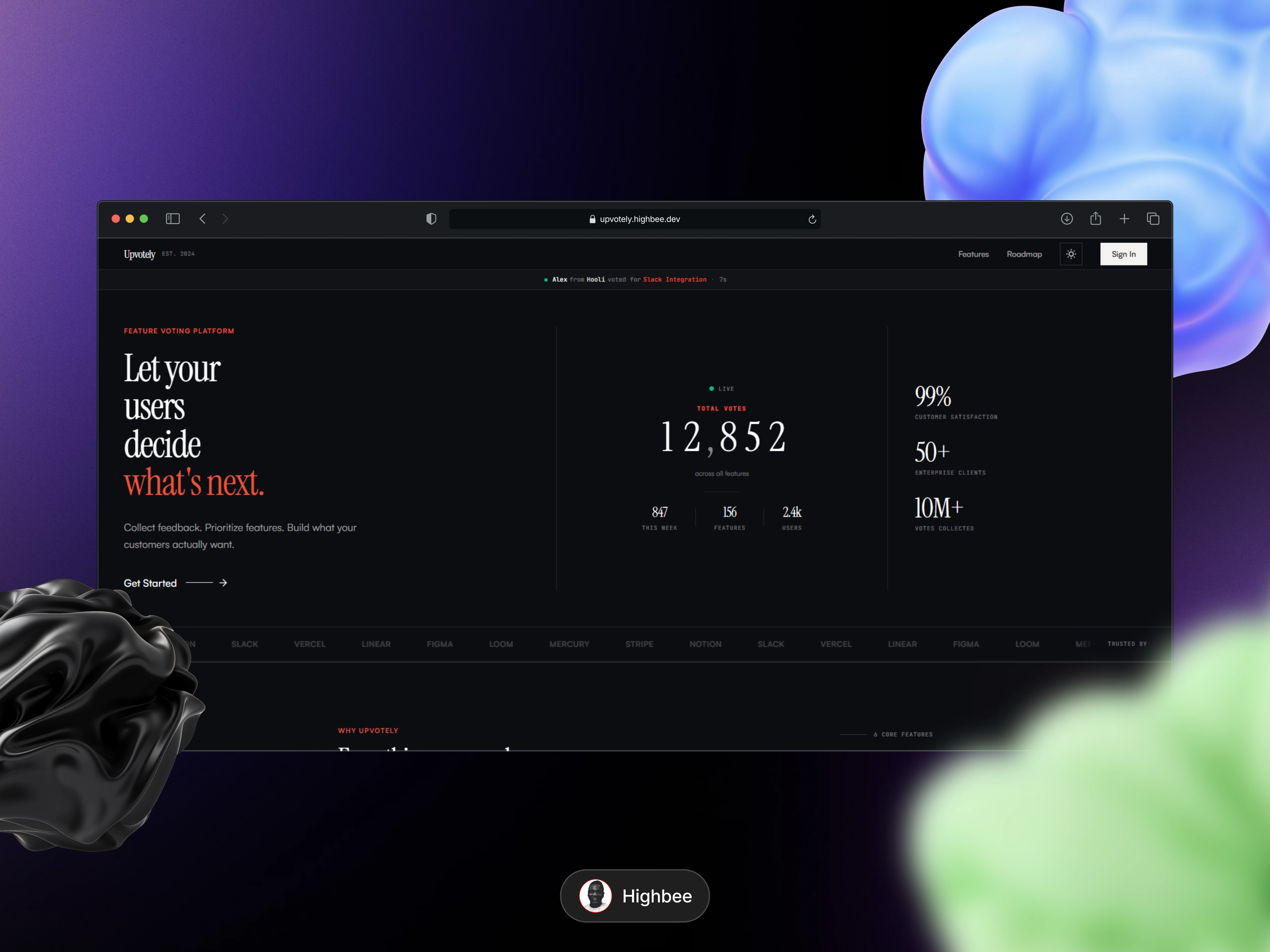 I built Upvotely, a lightweight feature voting board that helps startups collect, prioritize, and build what their users actually need. Users can submit ideas, vote on favorites, and the most-requested features automatically rise to the top.