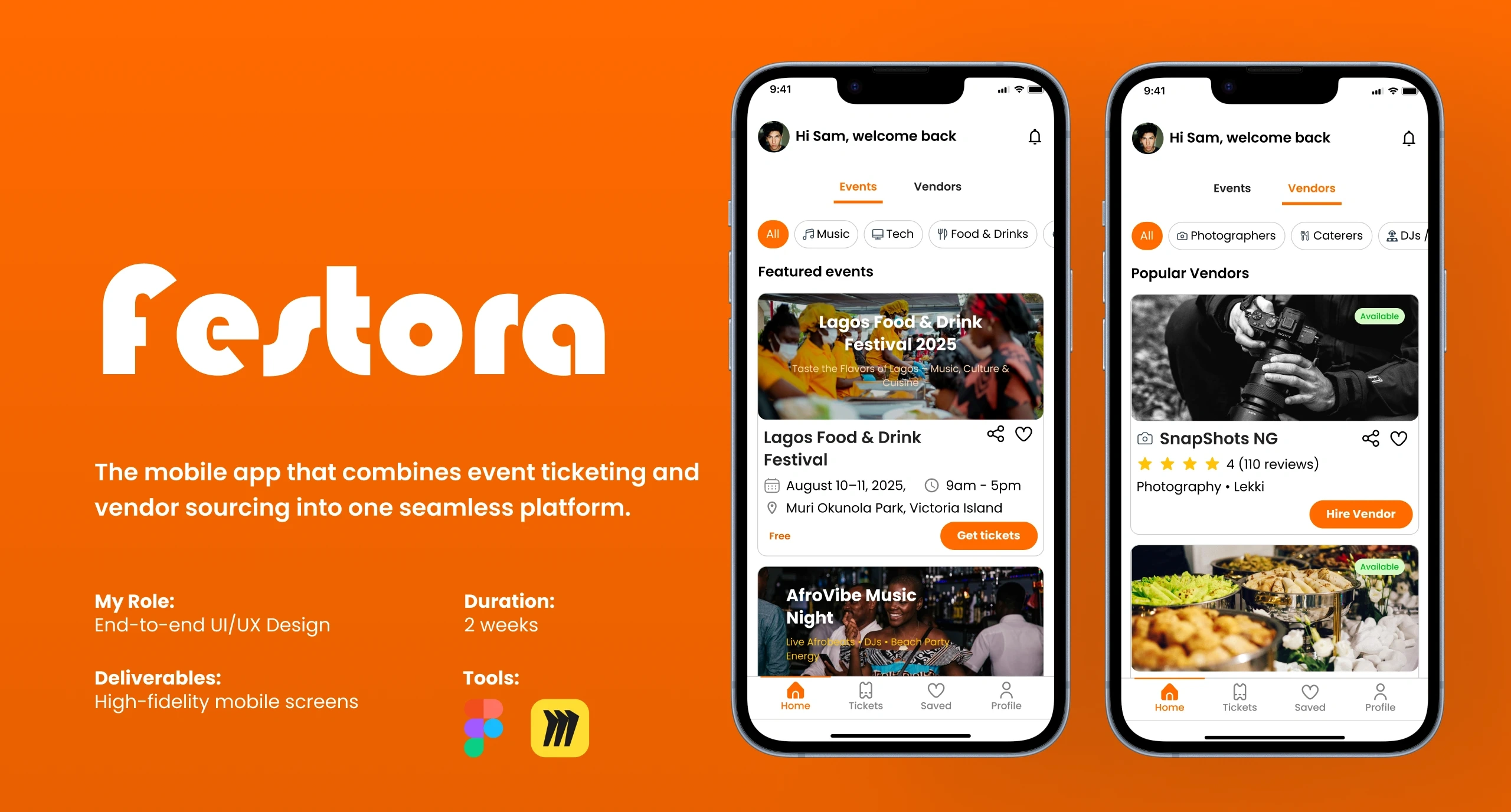 I designed a mobile app that combines event ticketing & vendor sourcing into one seamless platform, to simplify event planning, attendance and vendor sourcing.
