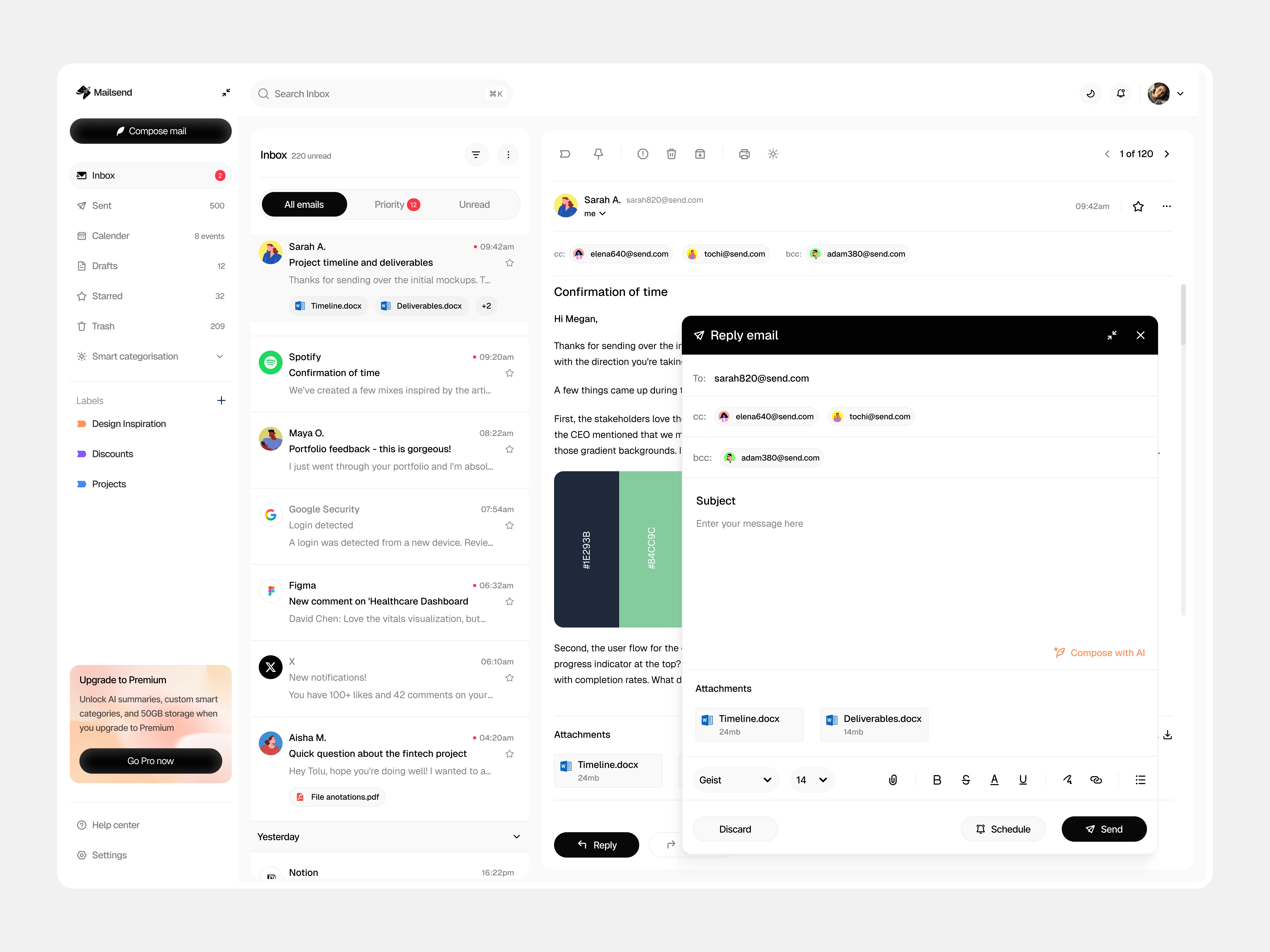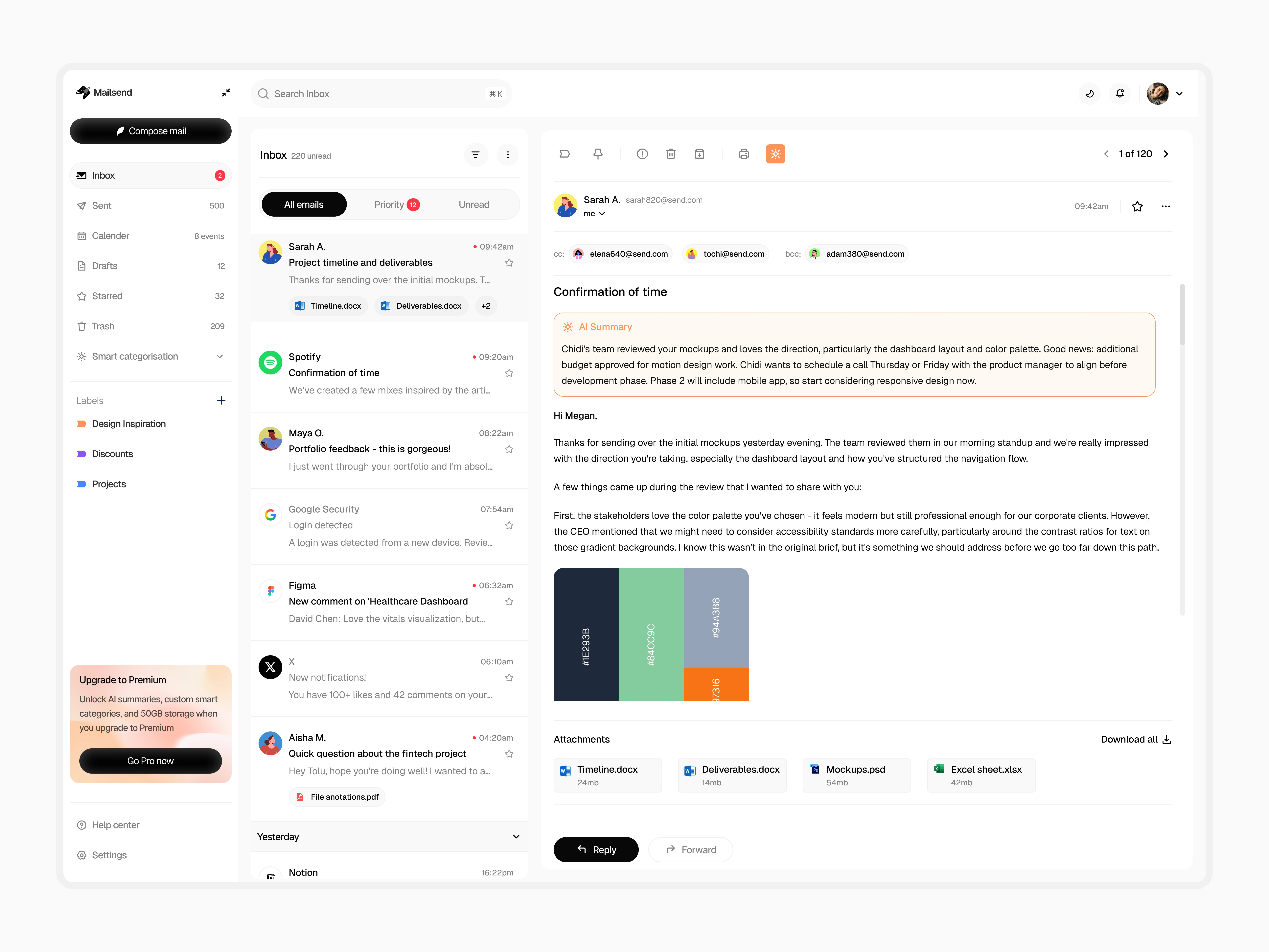 A modern email client with AI-powered categorization, integrated calendar, and clean interface. Designed to feel familiar while working smarter.