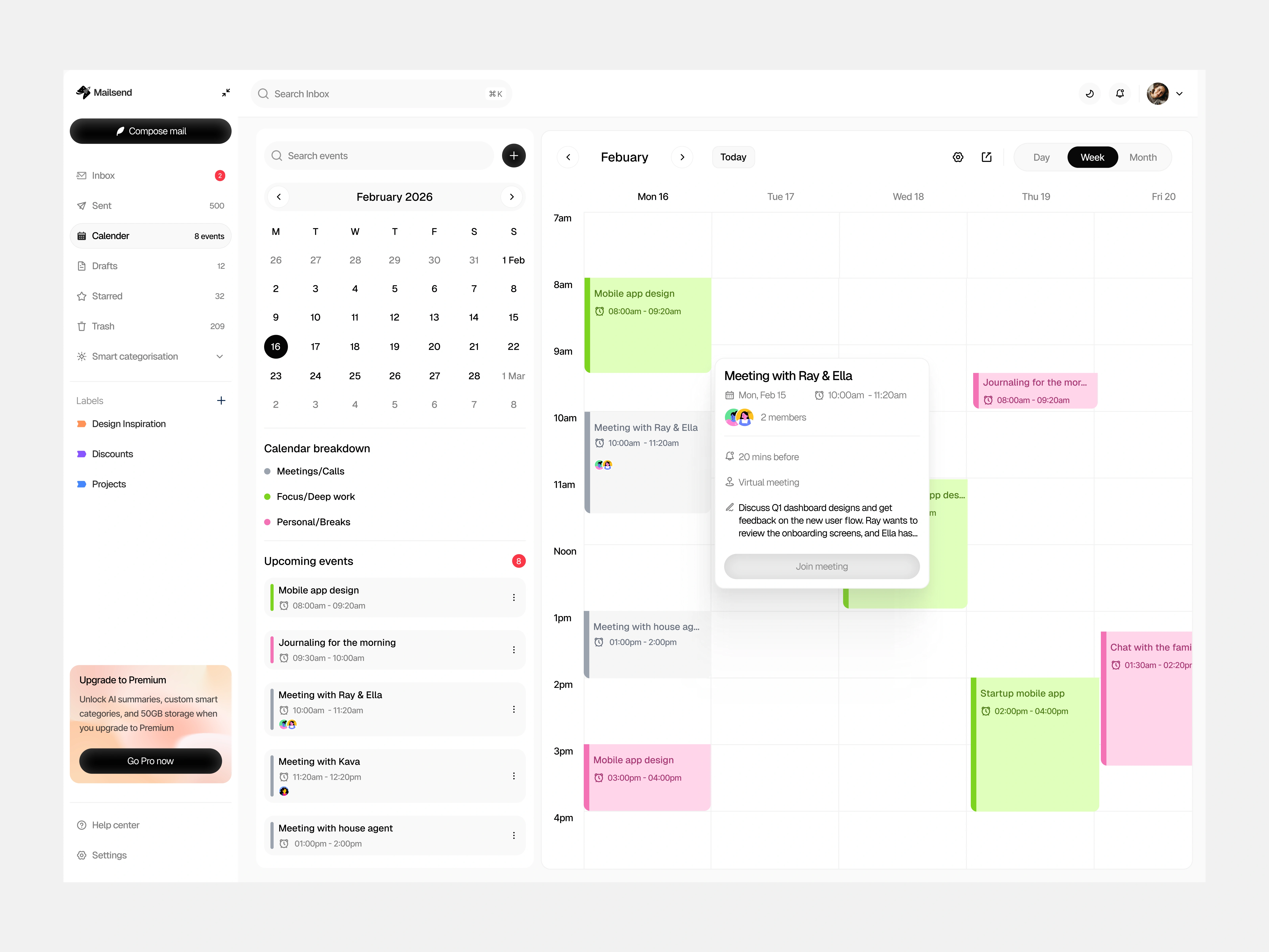 Why integrated calendar? After analyzing my own workflow, I realized I'm constantly switching between email and calendar to check availability before responding. Putting them side-by-side eliminates that friction.