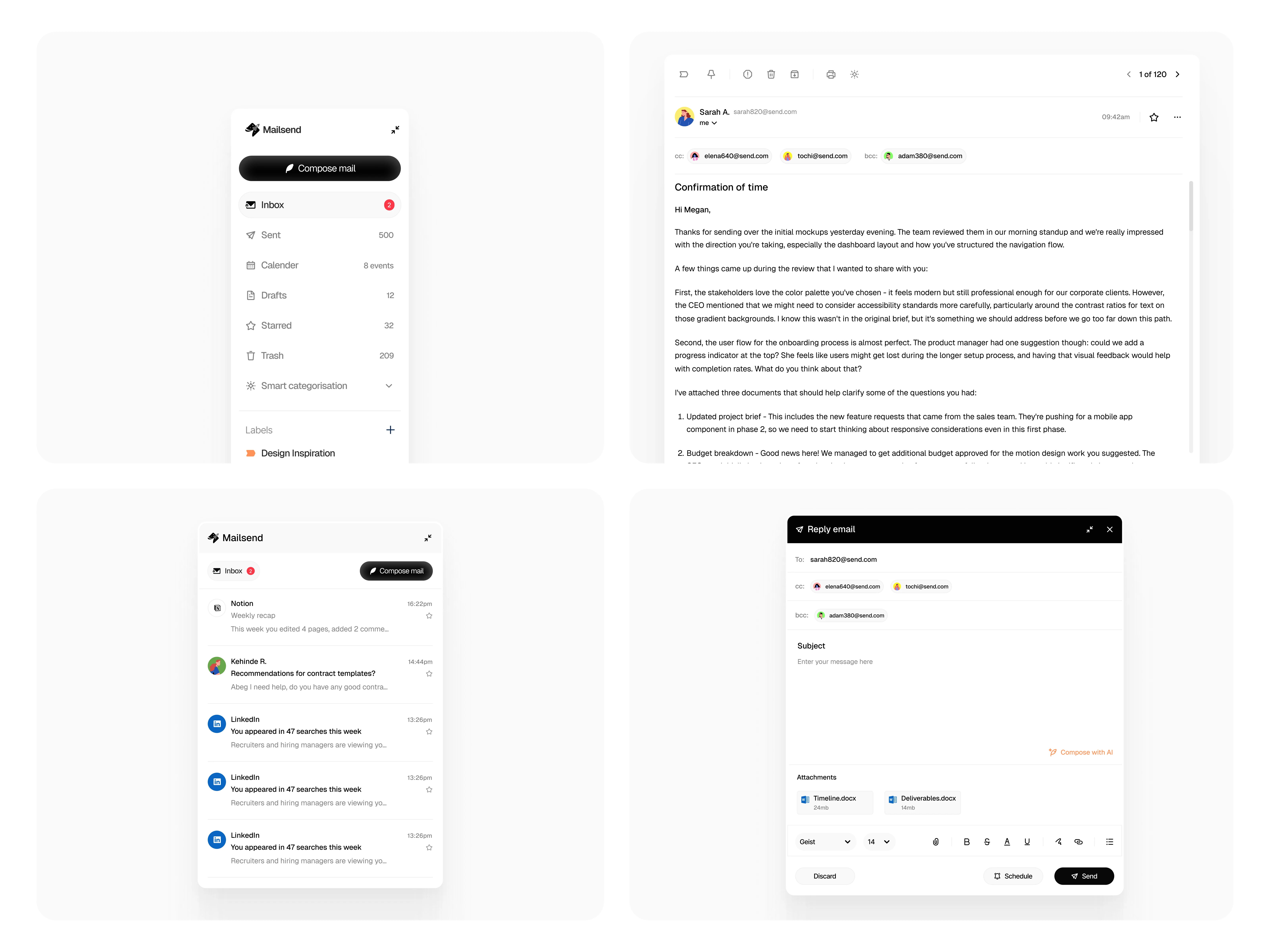 Good design doesn't announce itself. The best tools feel invisible - they get out of your way and let you work. Mailsend prioritizes clarity, control, and quiet intelligence over flashy features.