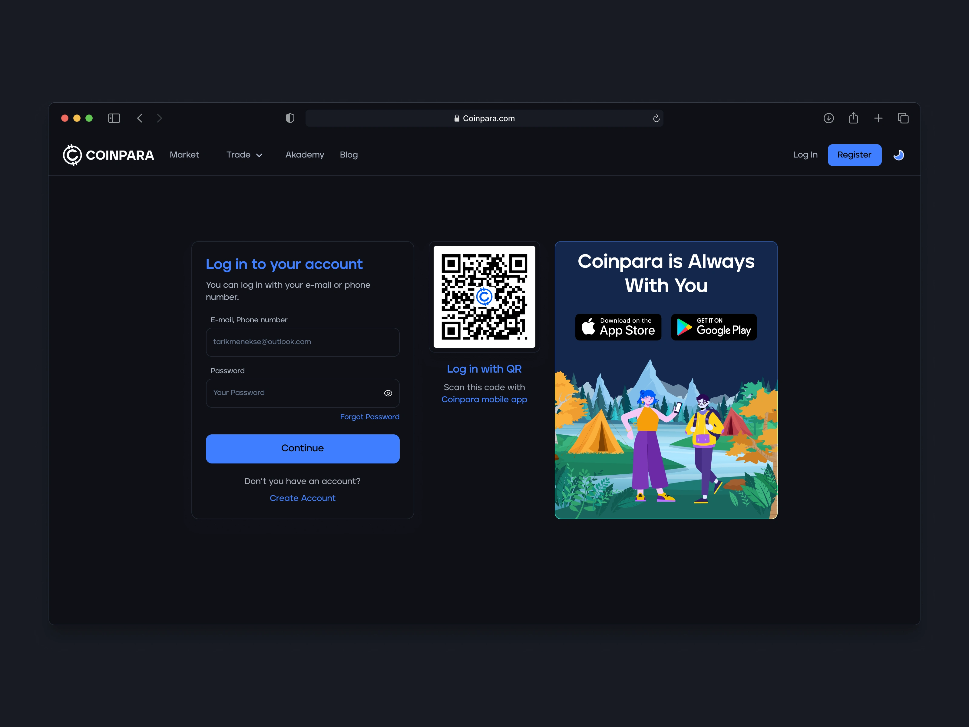 I worked on all product pages of Coinpara Crypto Exchange and this is a little shot of Coinpara's sign in page