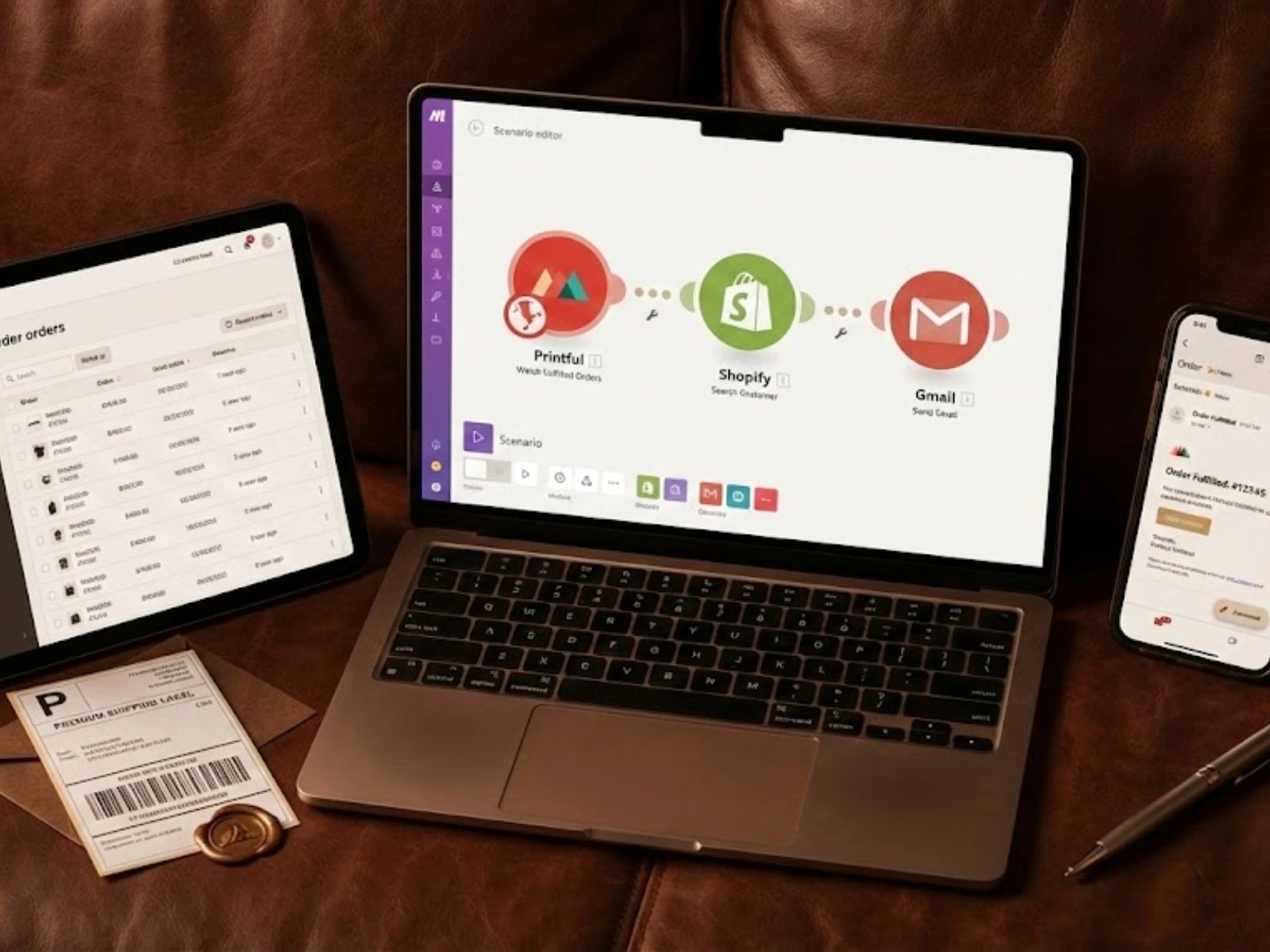 I connected 3 major tools — Printful, Shopify, and Gmail — using Make.com to create a seamless workflow. The goal was to automatically send personalized email updates to customers once their orders were fulfilled on Printful.