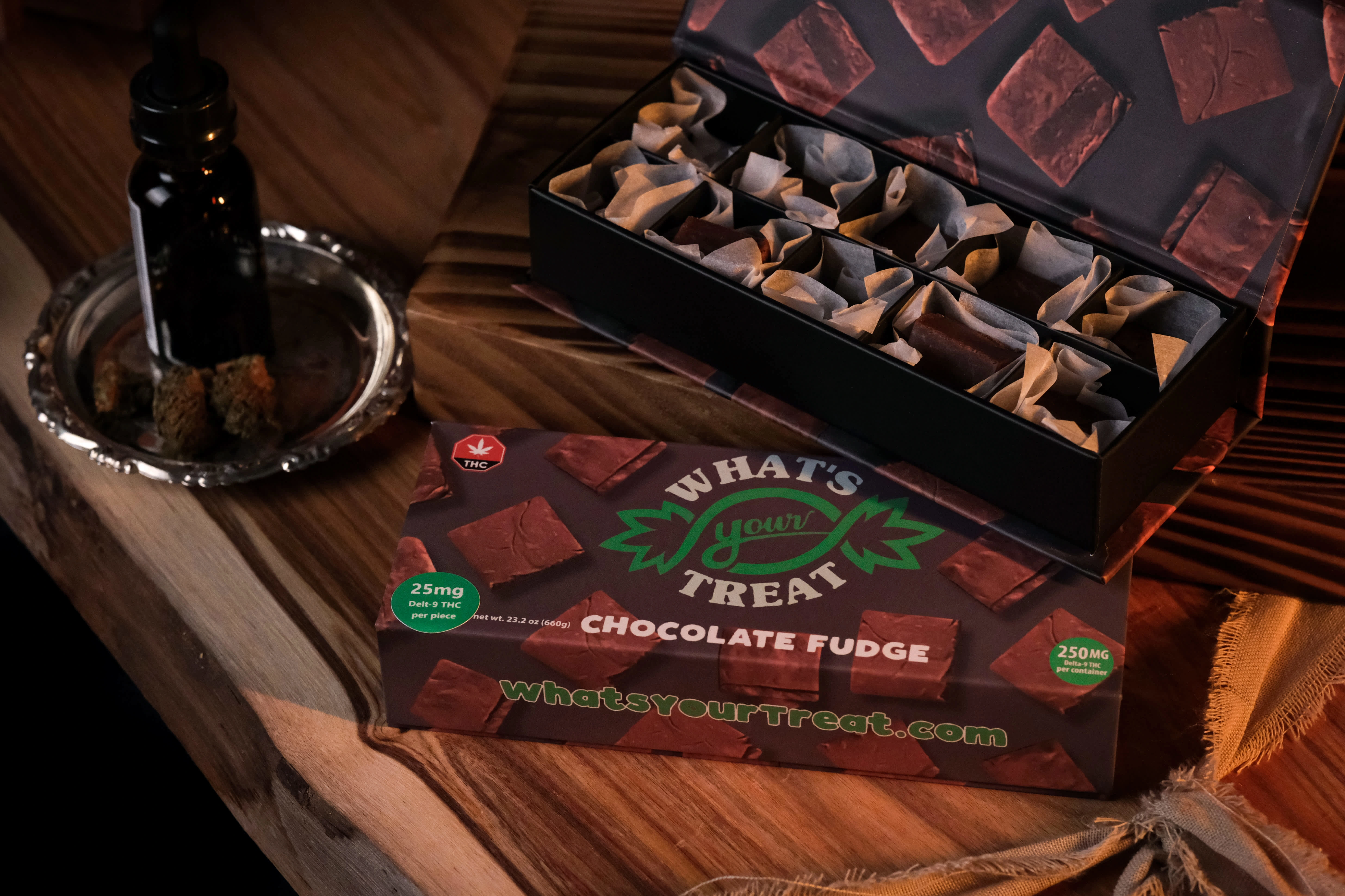 The client wanted to show their edible treats as a luxurious candy. We worked on making it look like a collection of food that would belong in a cigar lounge.