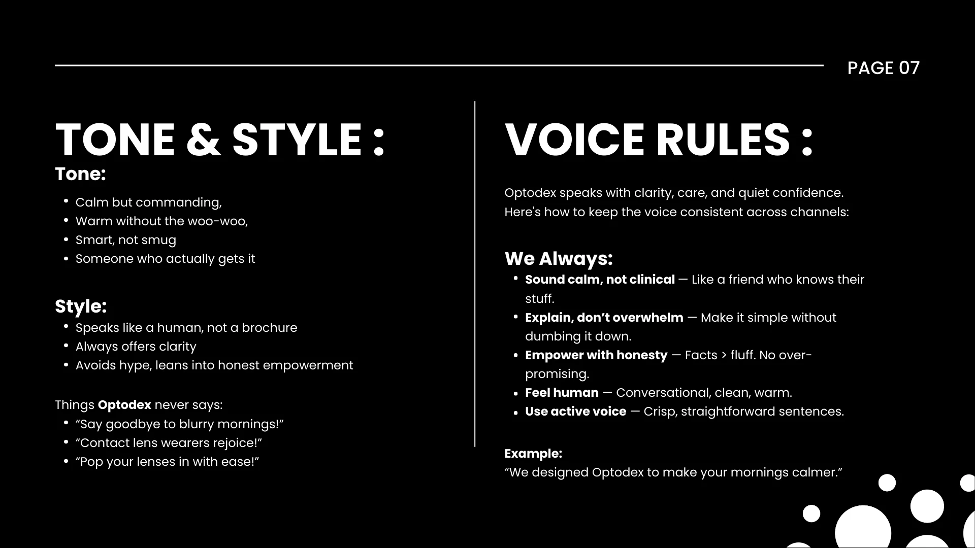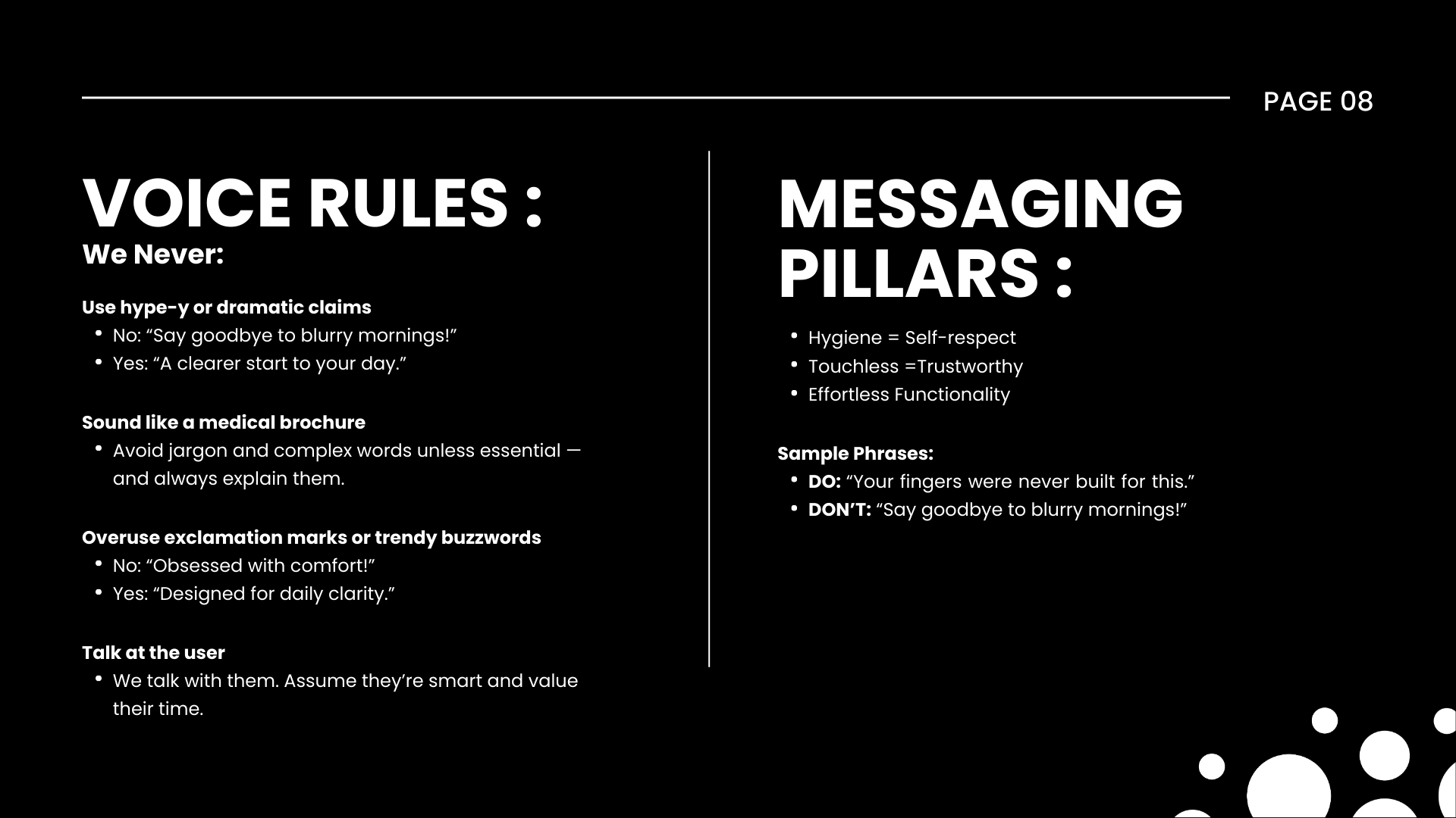Working with an established US-based client, we completed and systematised their brand identity into a single, practical Brand Guidelines document. The brief: take existing logo and visual assets, unify them with a clear voice and messaging framework, and deliver a usable system that marketing and product teams can apply across packaging, digital and print.