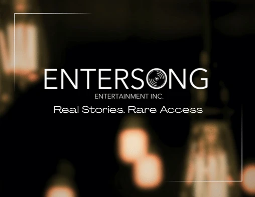 Promo Postcard for EnterSong who offers private concerts with award-winning songwriters.