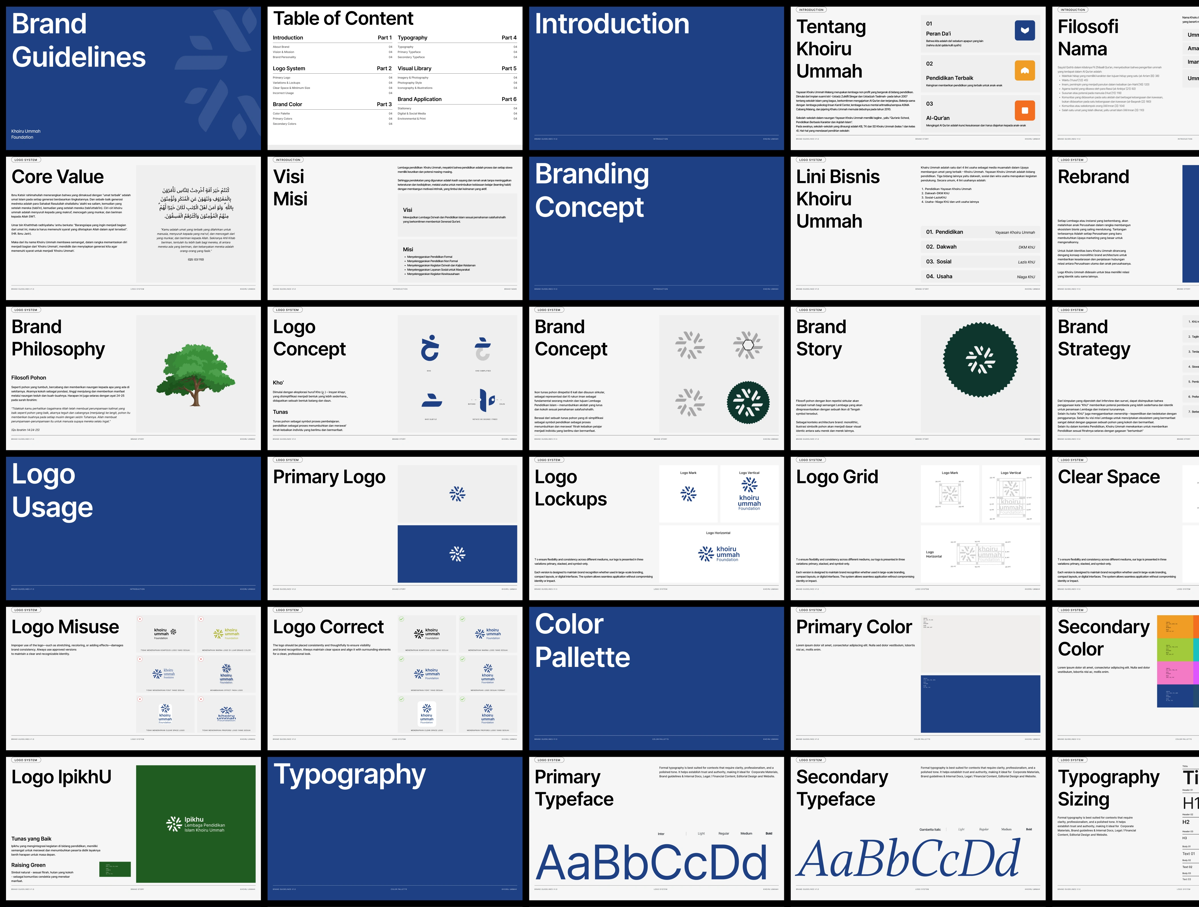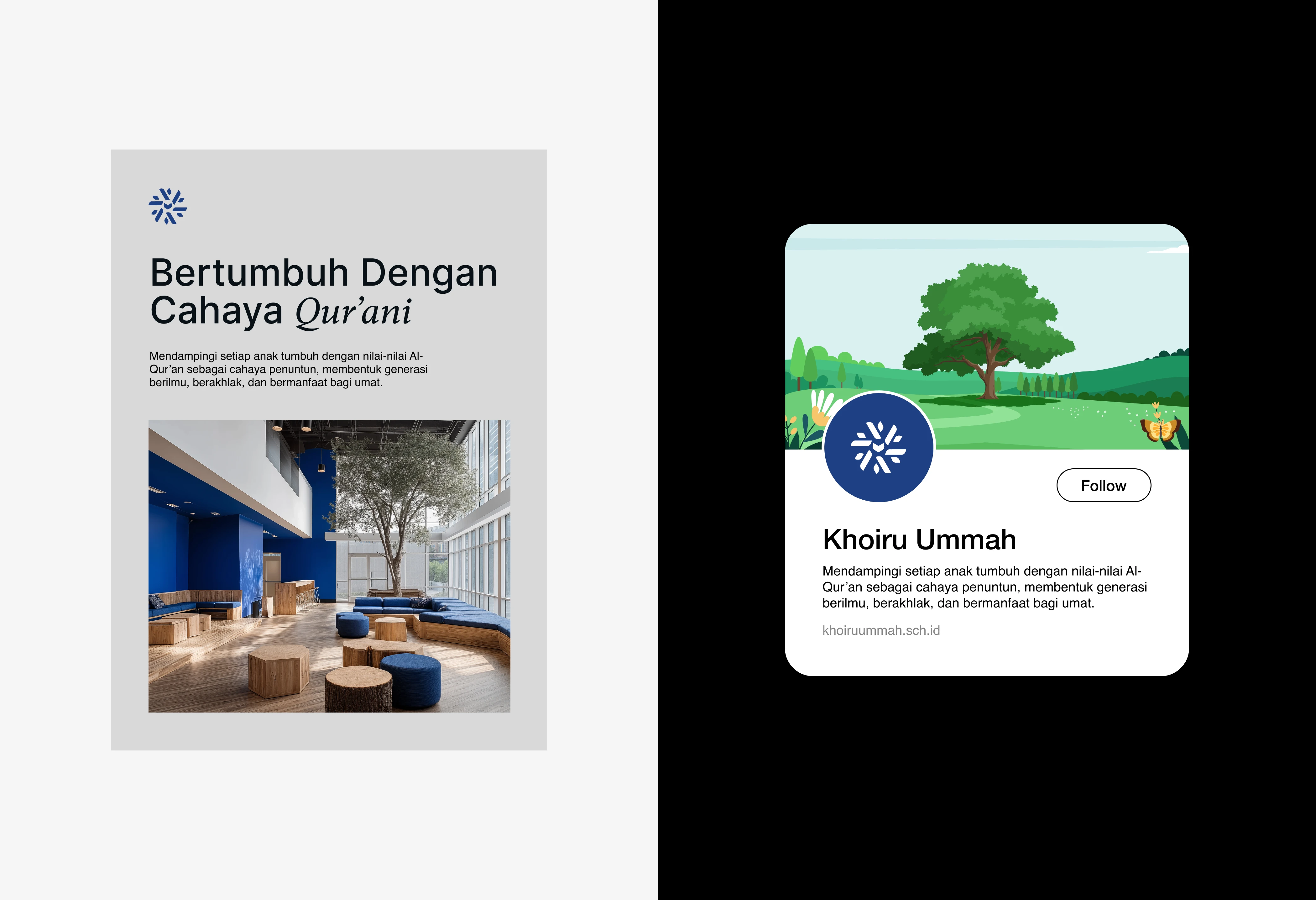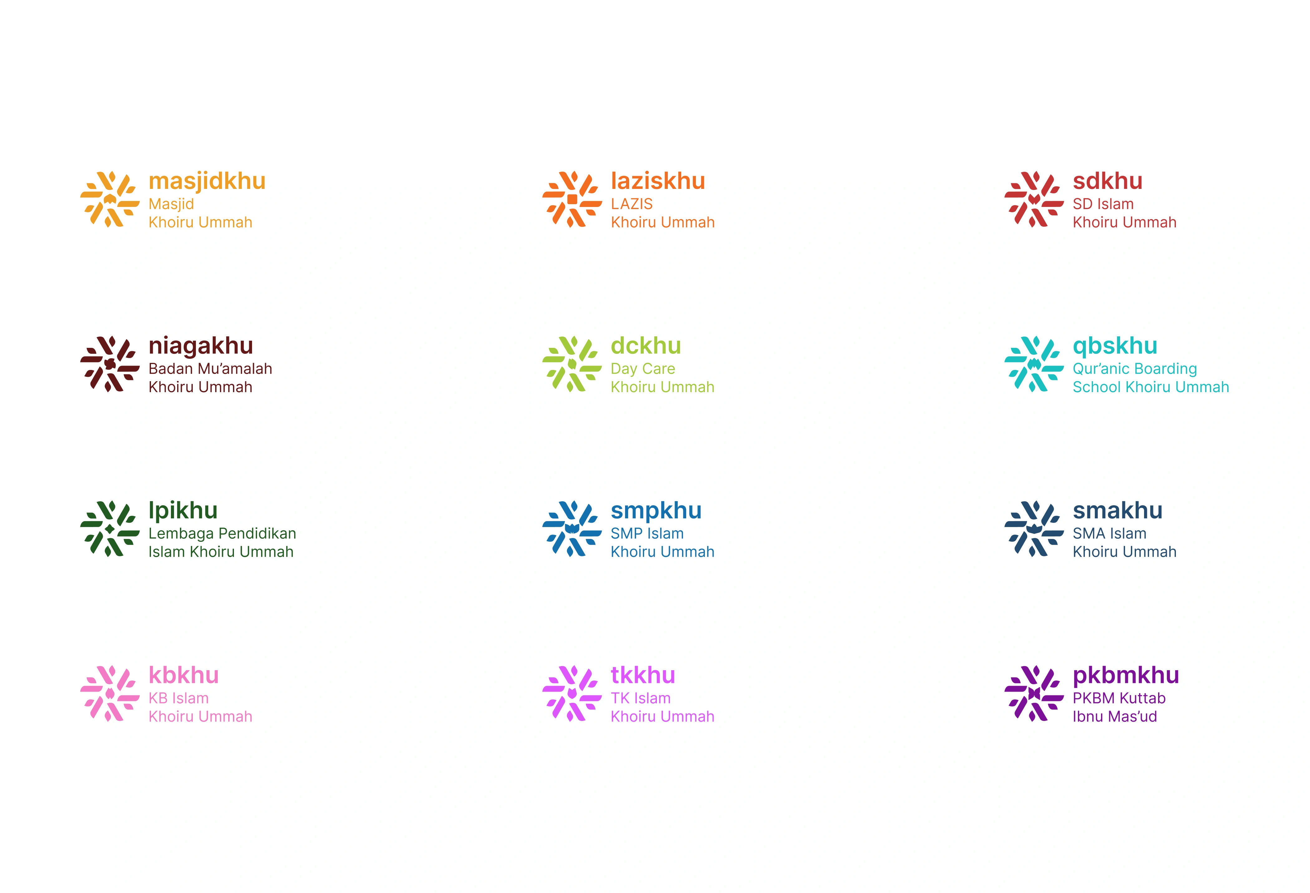 As an Islamic institution with multiple units, the rebranding of Khoiru Ummah was designed using a brand architecture system with a monolithic design approach, incorporating a growth concept that aligns with the Quranic concept of tree analogy. This rebranding not only serves as a clear Islamic brand positioning, but also fosters unity among units that aligns with the institution's spirit.