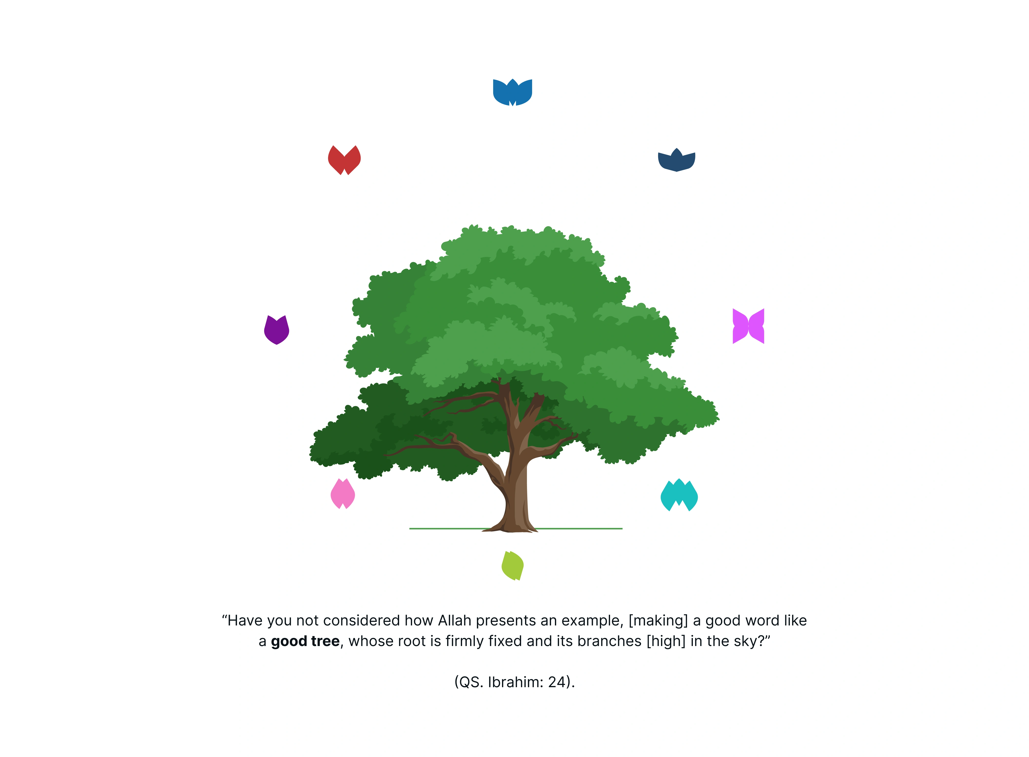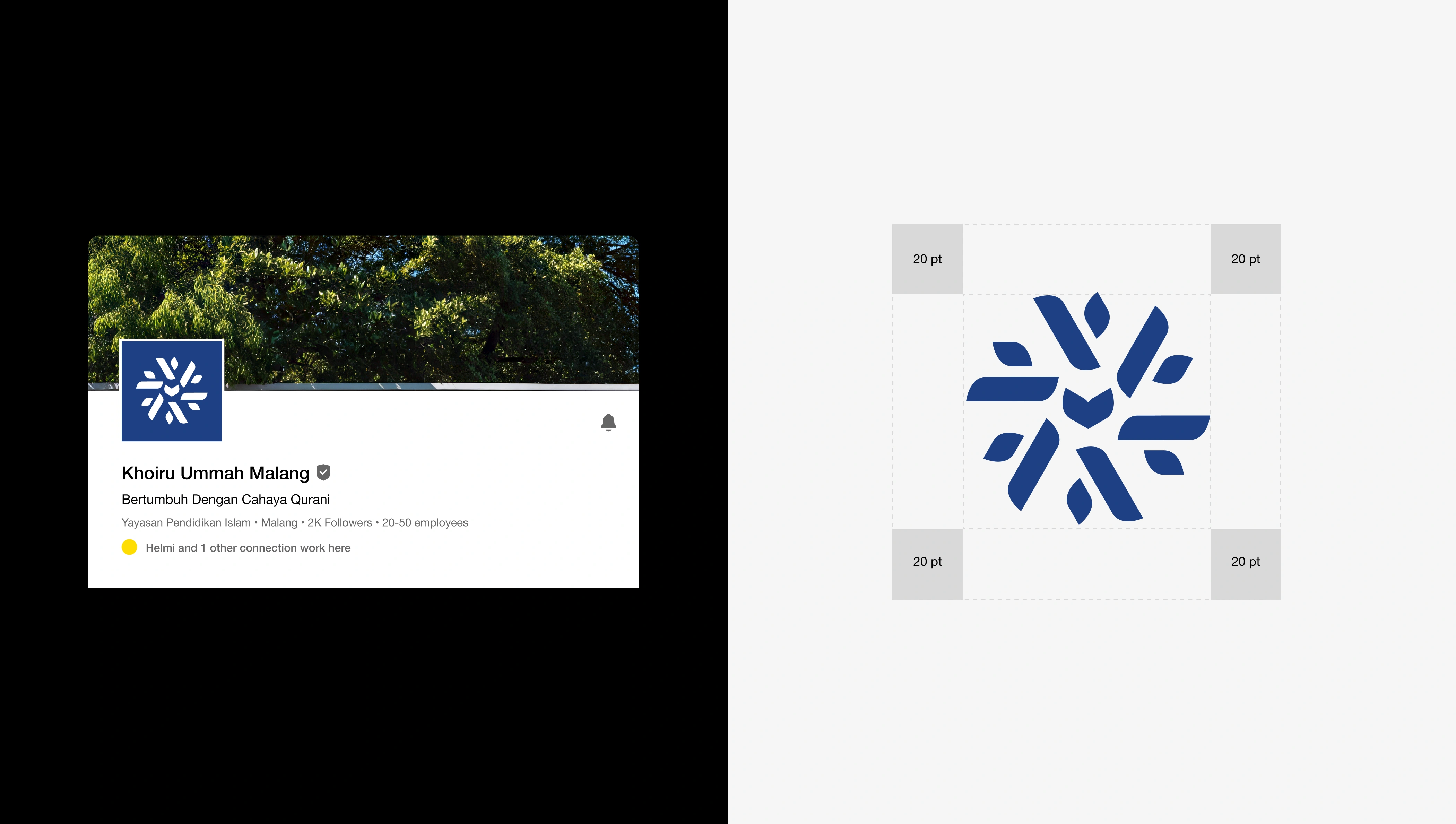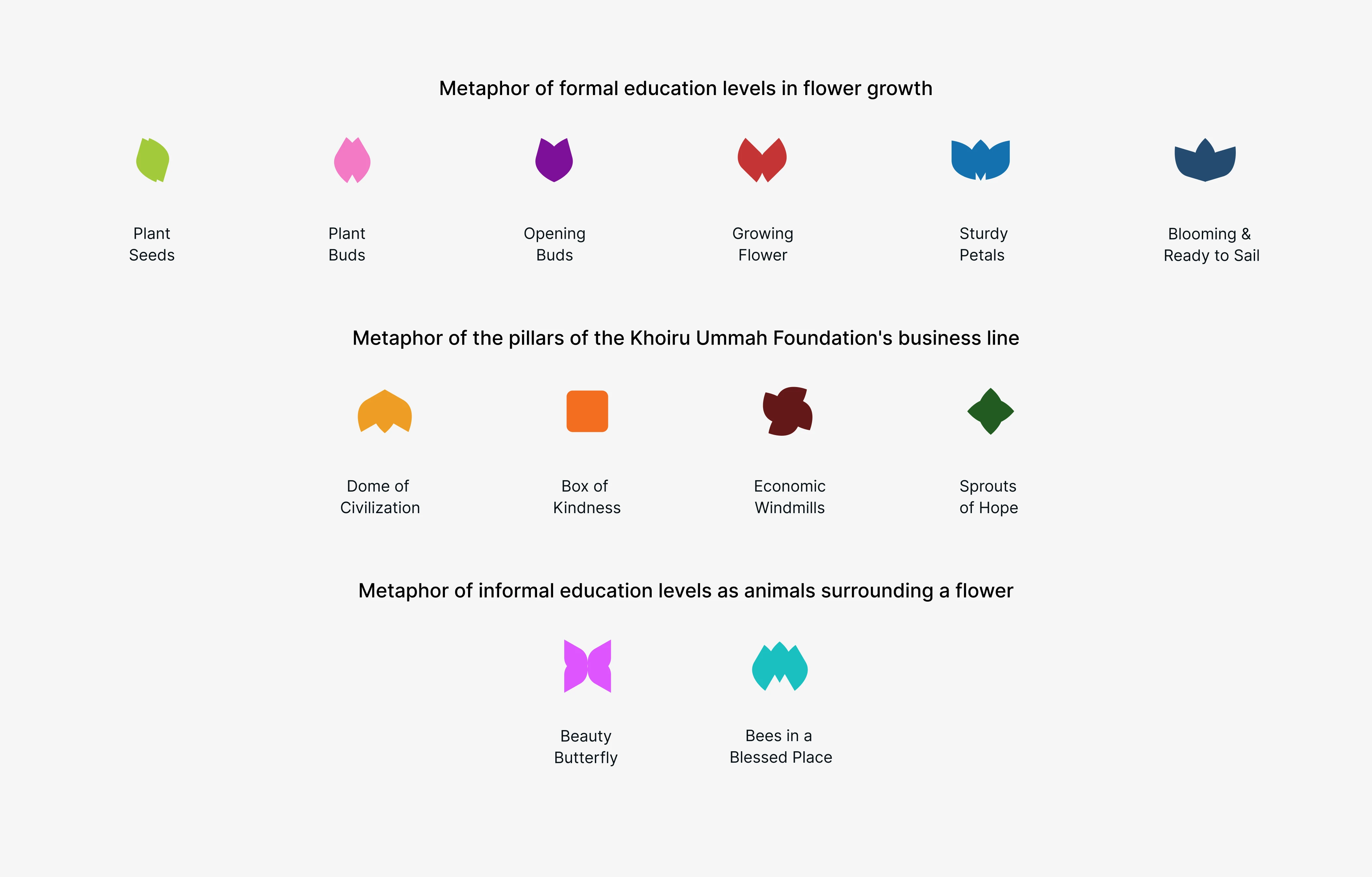 As an Islamic institution with multiple units, the rebranding of Khoiru Ummah was designed using a brand architecture system with a monolithic design approach, incorporating a growth concept that aligns with the Quranic concept of tree analogy. This rebranding not only serves as a clear Islamic brand positioning, but also fosters unity among units that aligns with the institution's spirit.