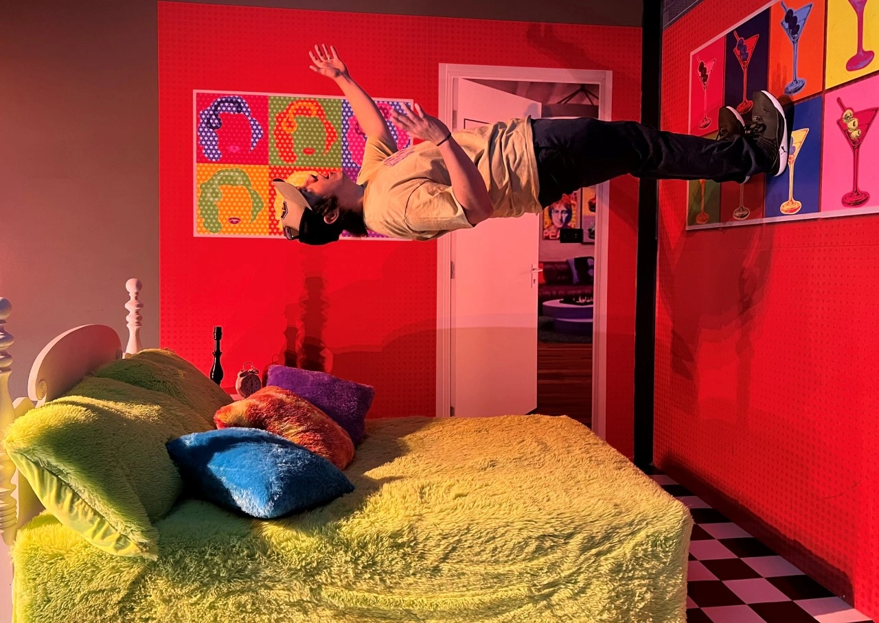 For anyone who wants to look like they are falling through space, trapped in a glass bottle, boxed up like a doll, or being eaten by a dinosaur, the selfie room at