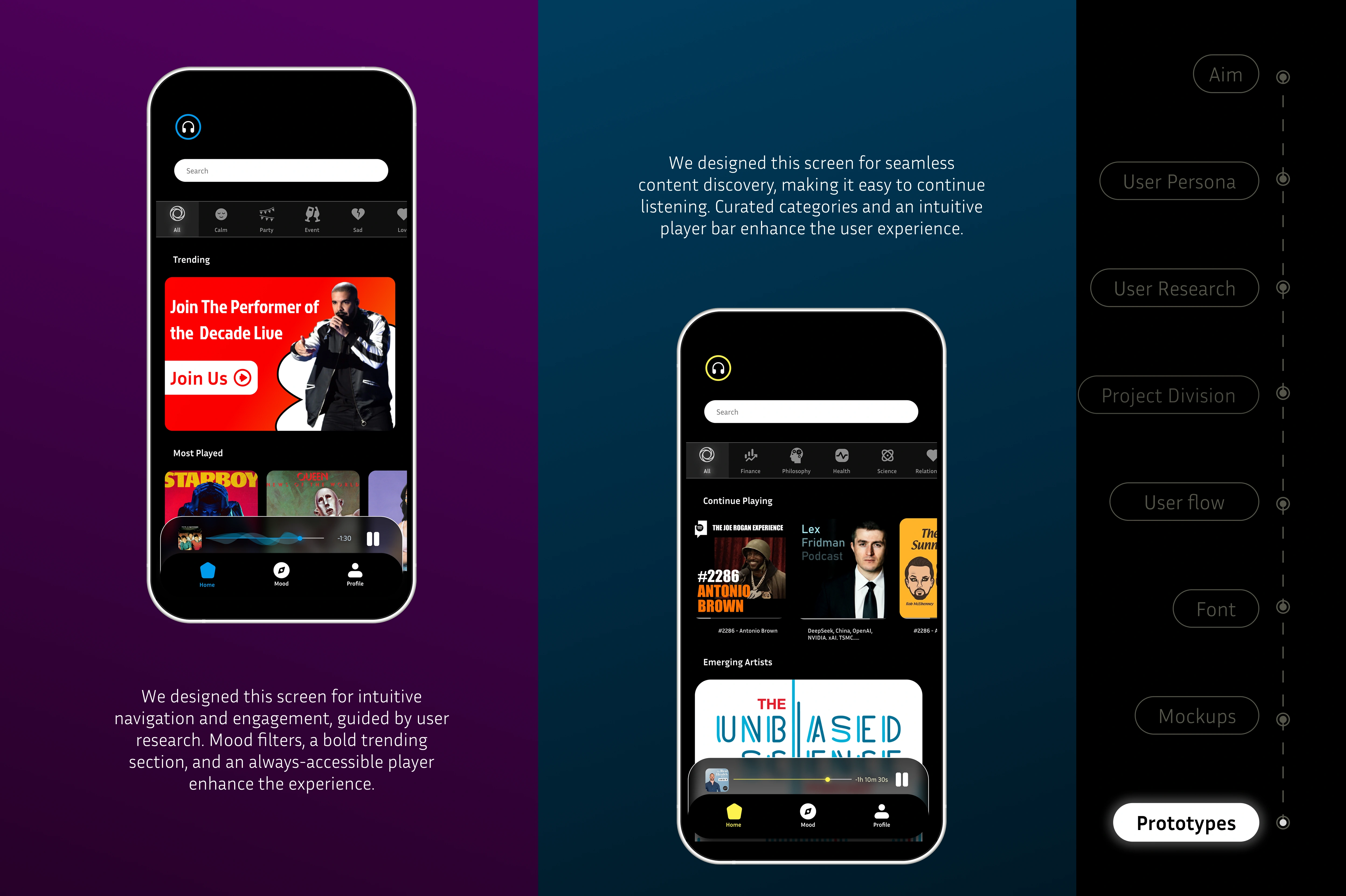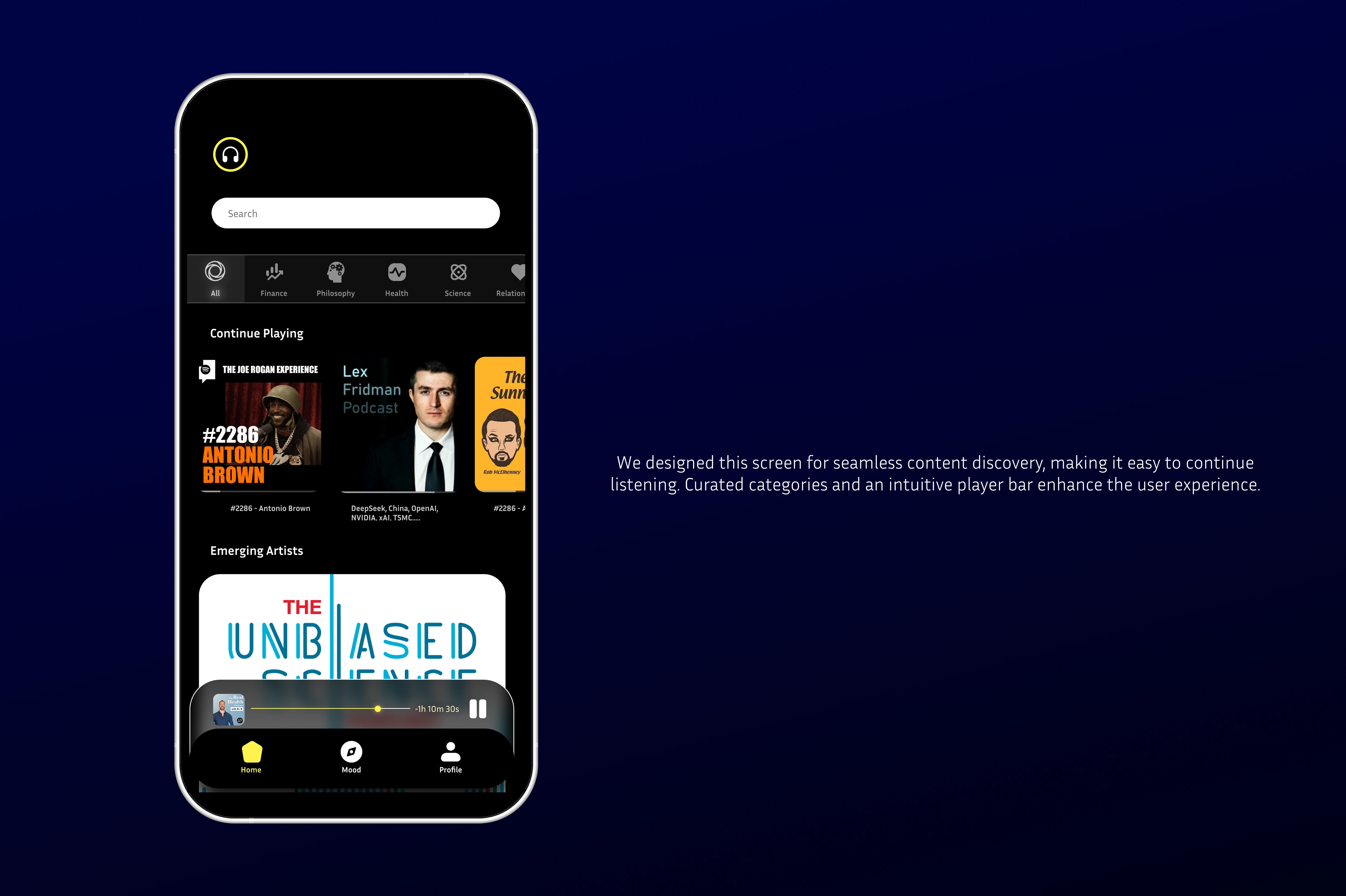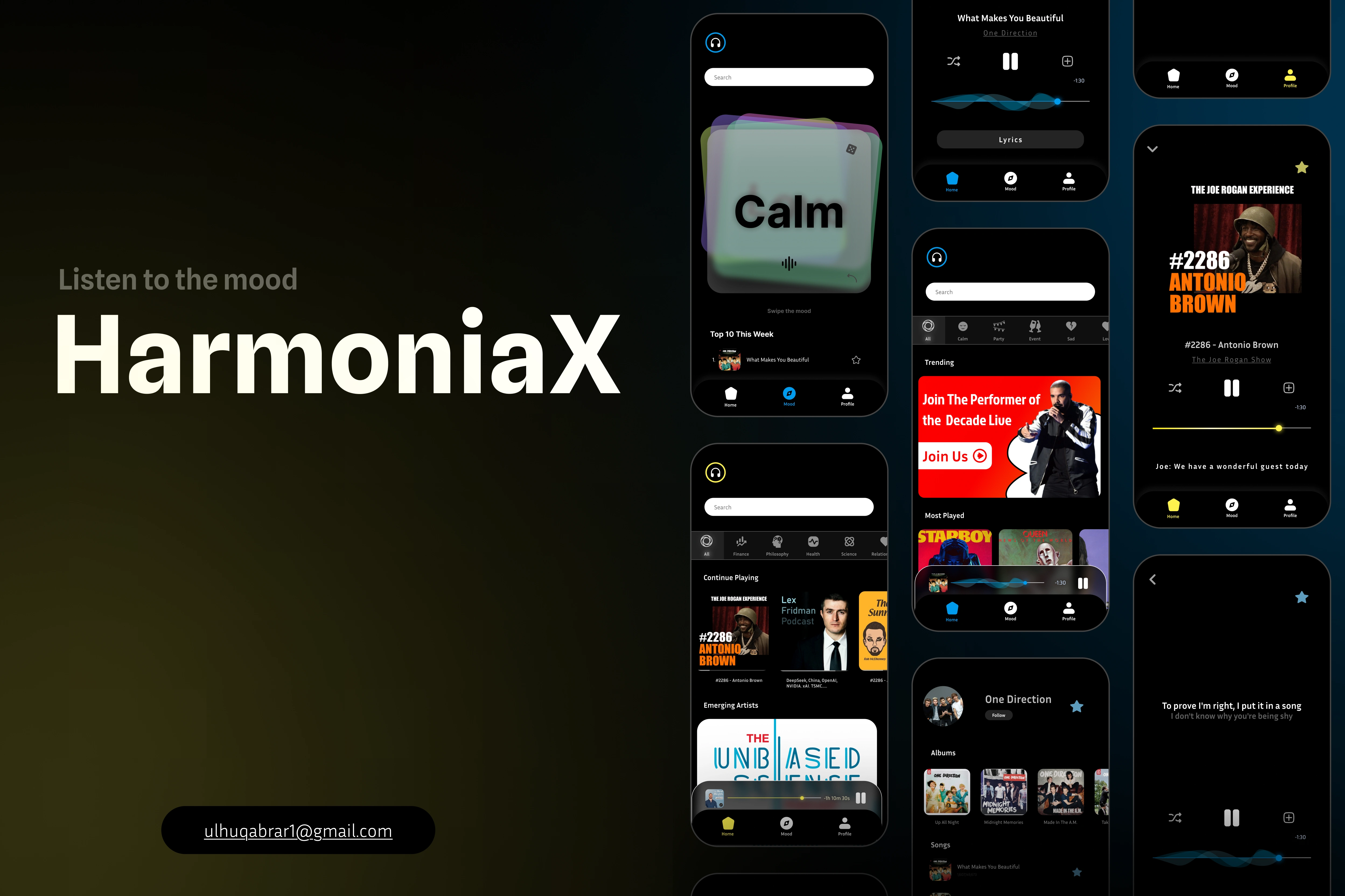 HarmoniaX redefines audio discovery with mood-driven recommendations, seamless navigation & a clean, immersive design crafted through deep research