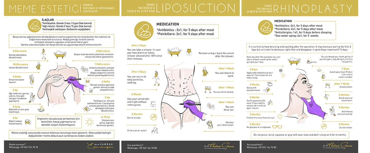 After Surgery Operation information cards for patientsThings You should / Should not After your Rhinoplasty, Liposuction, Breast Aesthetic Estetik Operasyonlar…