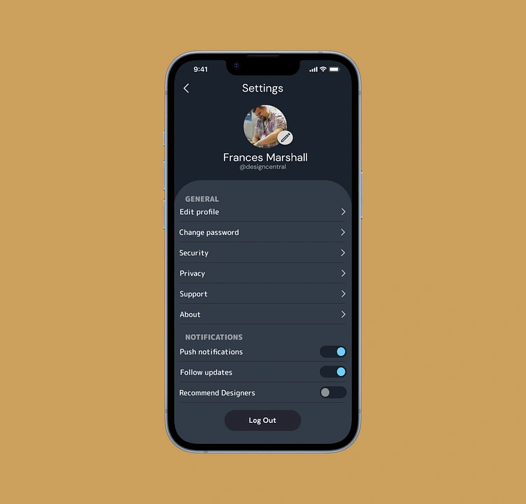 A simple settings page mockup for a designer app going in conjunction with my previous profile page.