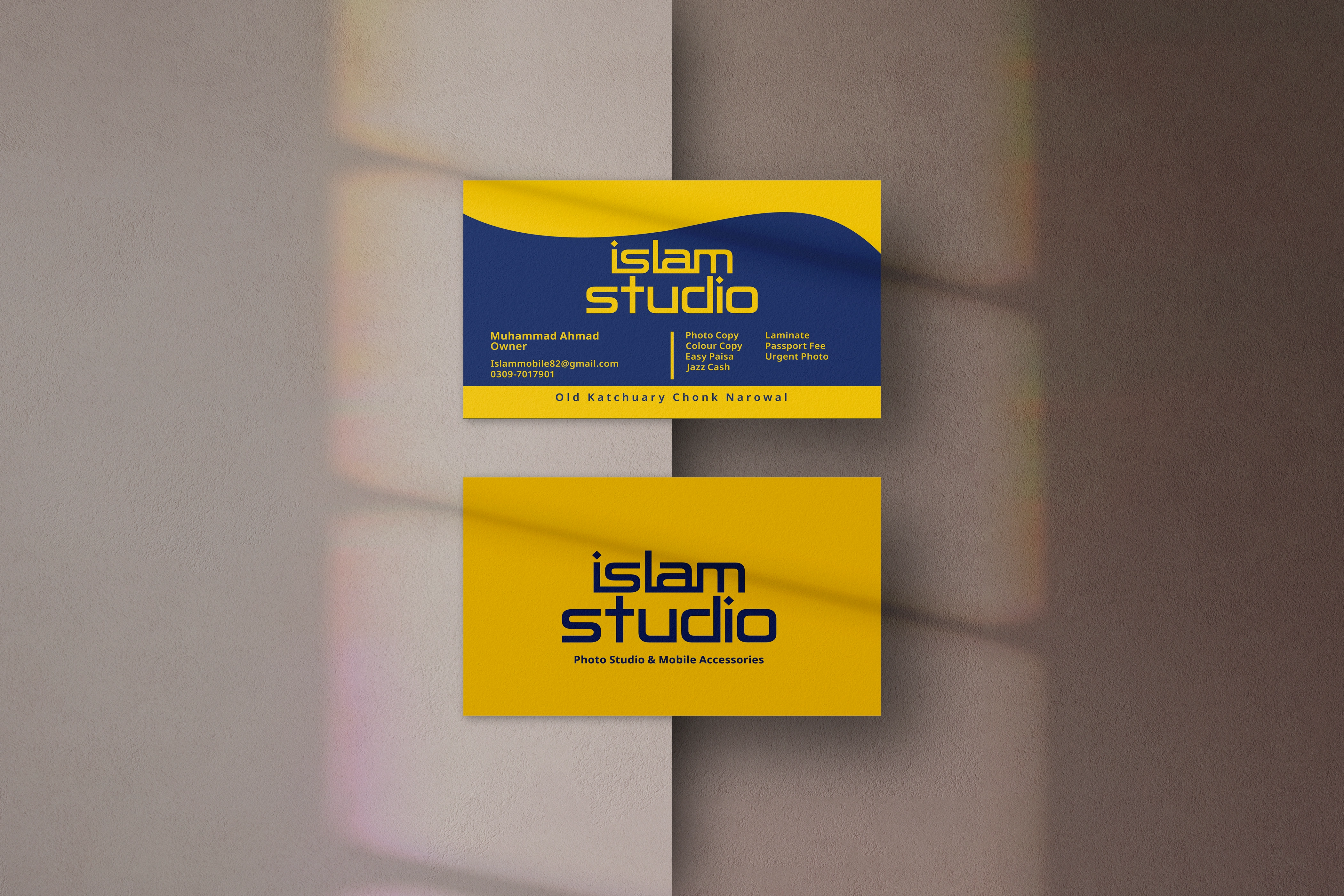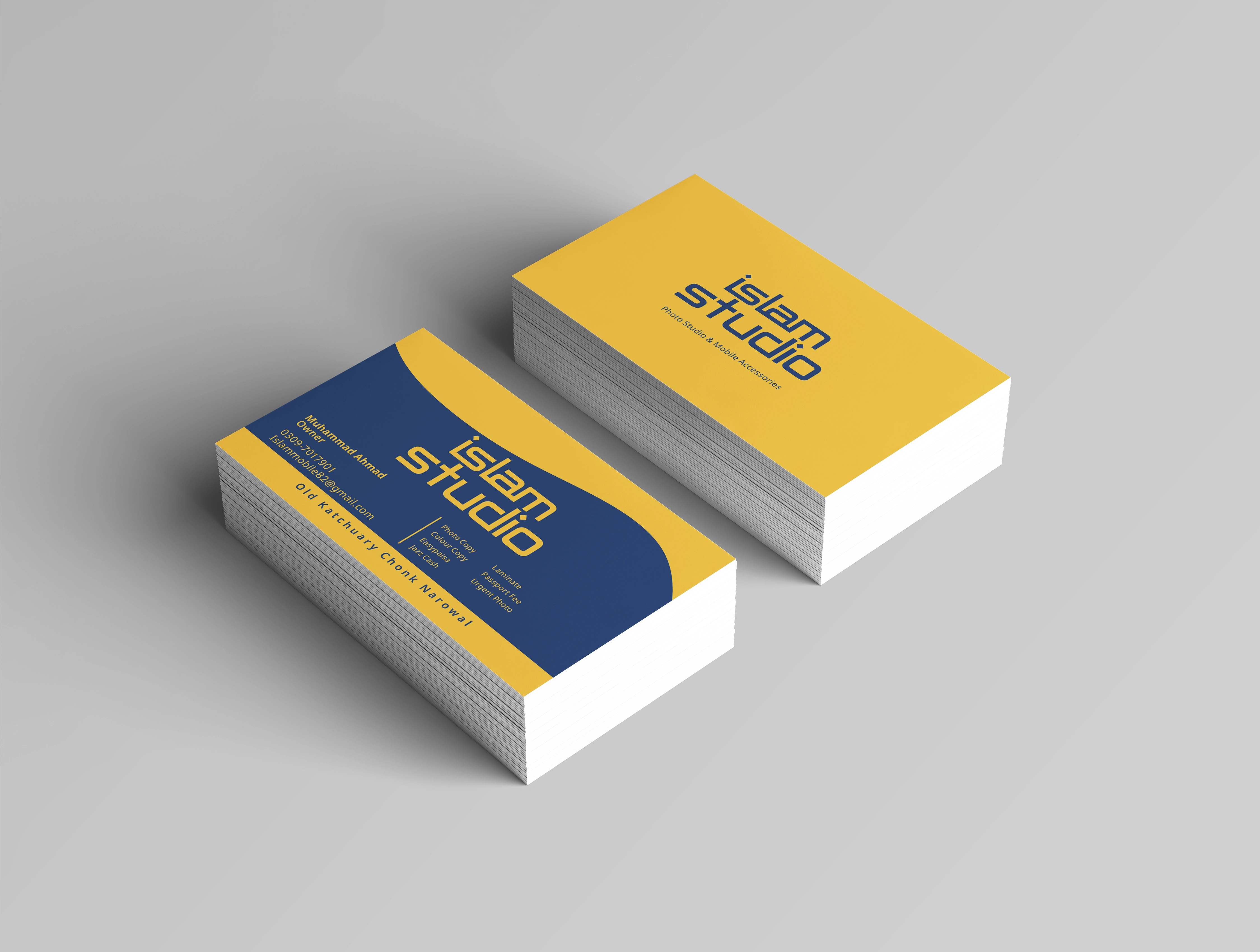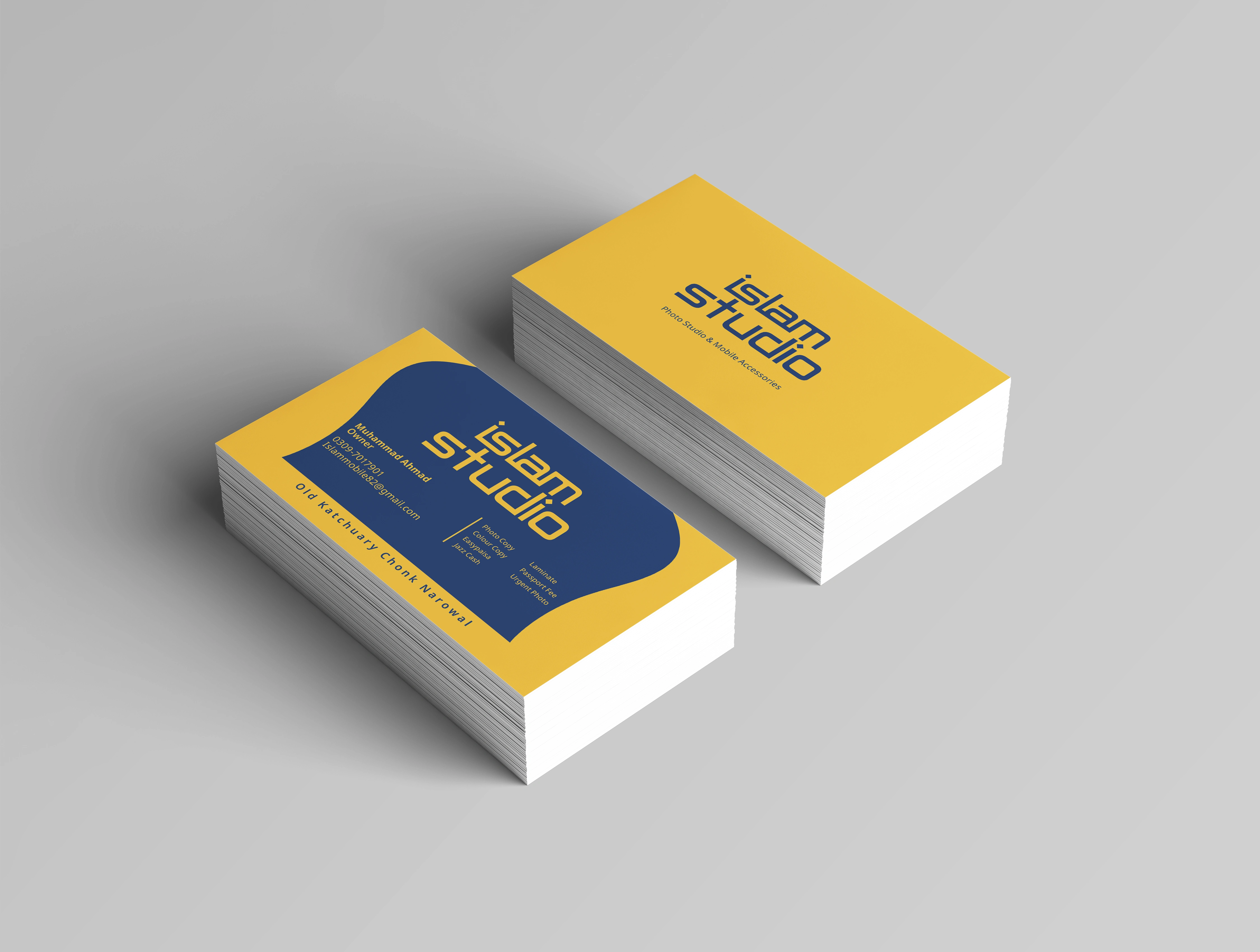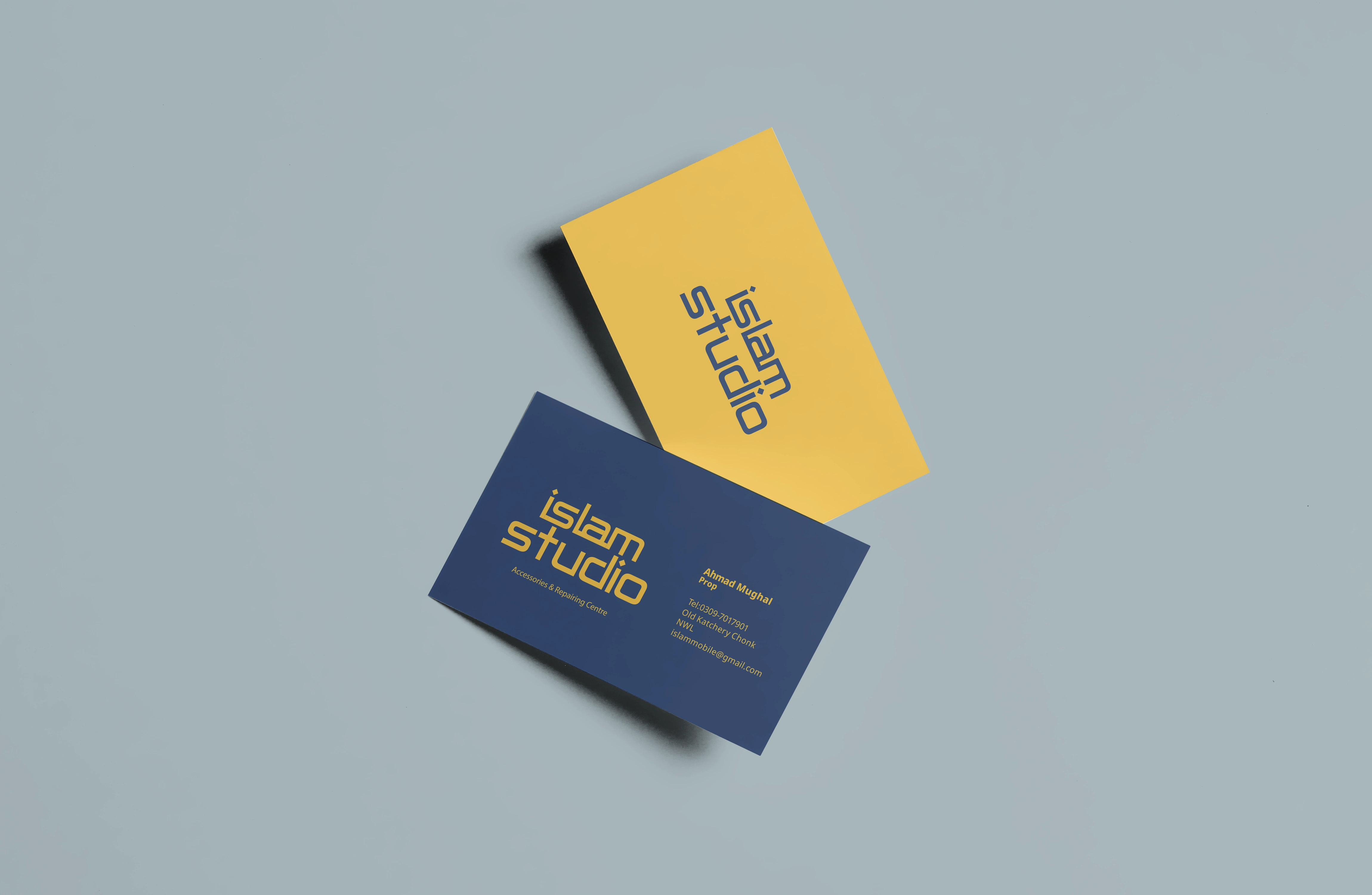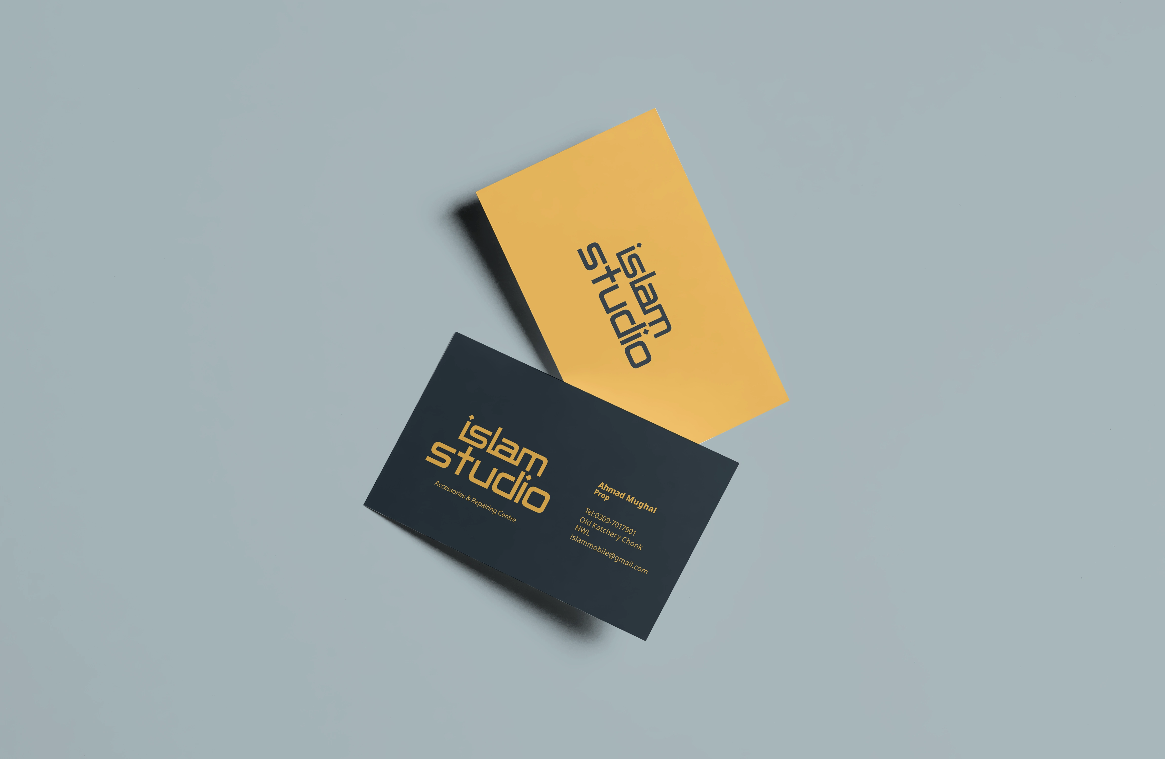 Crafted a modern and visually engaging business card for Islam Studio seamlessly integrating essential contact information, and showcasing unique selling point.