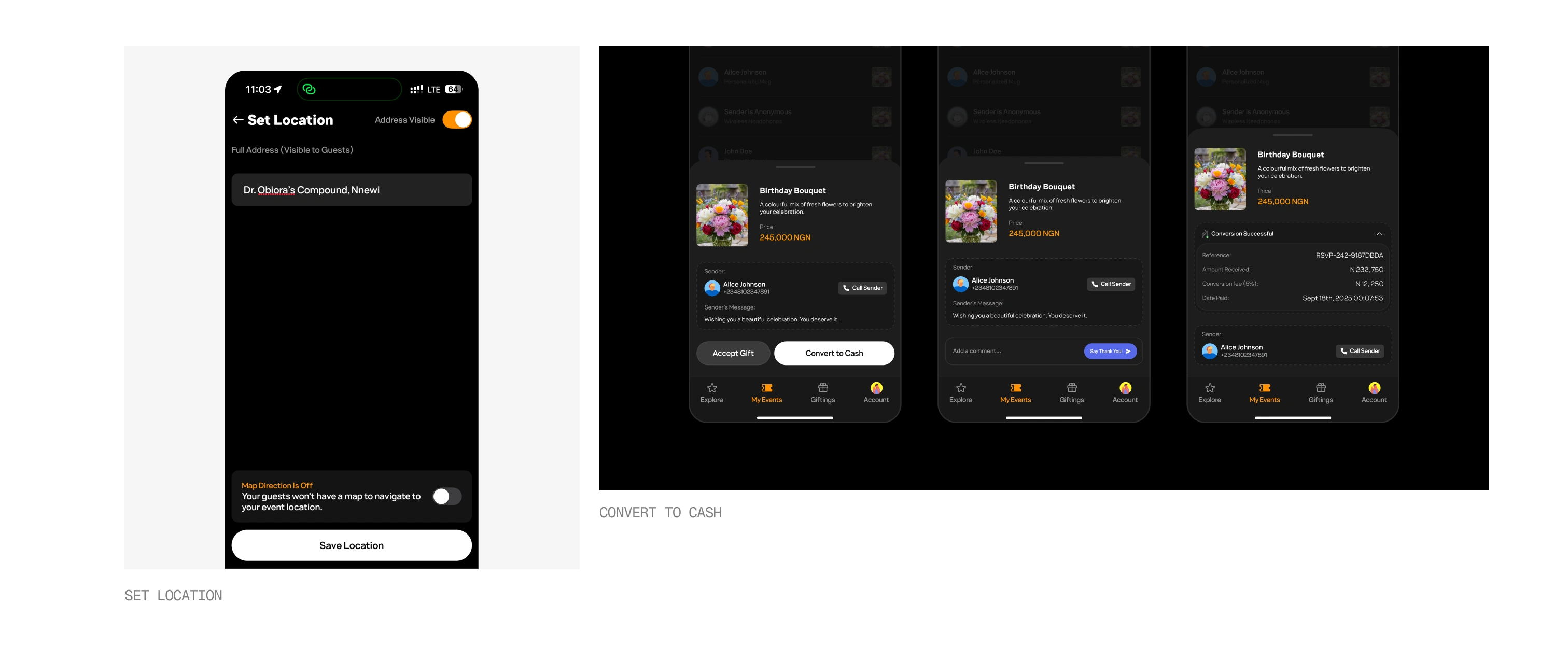 That thinking shaped features like Event Location. Instead of relying only on map pins, we added a full address field, knowing places are often described by landmarks and Maps can be unreliable. It also shaped gifting. Guests can convert gifts to cash, added straight to their event wallet with a thank-you note, because in our culture, that part matters.