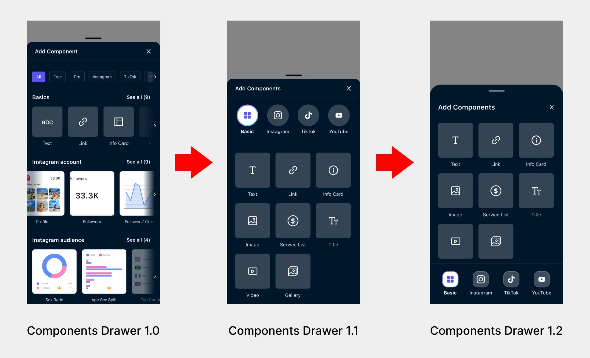 To improve clarity and engagement, I redesigned the flow, and in v1.2, I introduced a visible “Edit Profile” button to separate viewing from editing, and I added clear section titles (Location, Socials, Categories, Bio, and Action Button) inside the edit mode. This gave users structure and guidance, making the editing experience more intuitive and user-friendly.