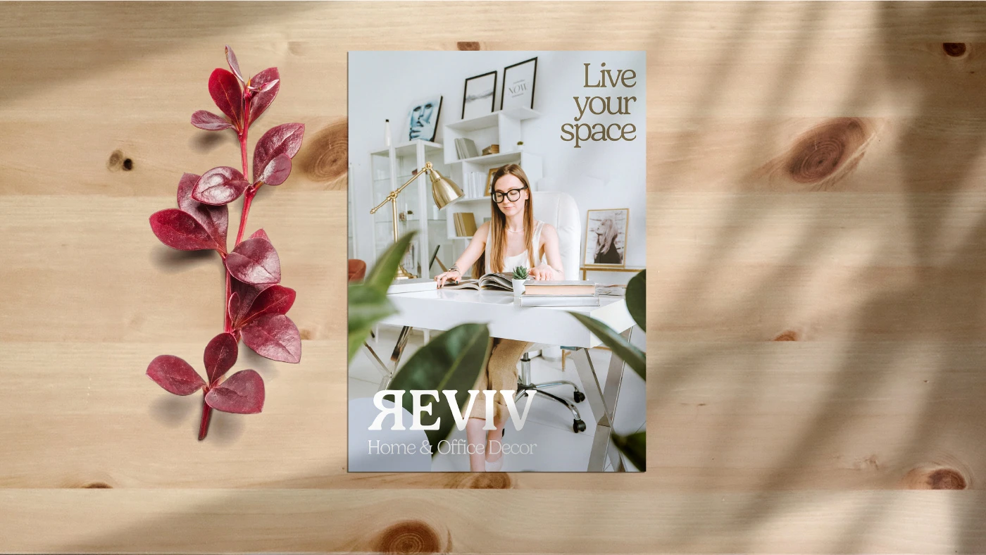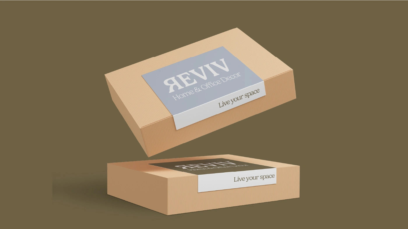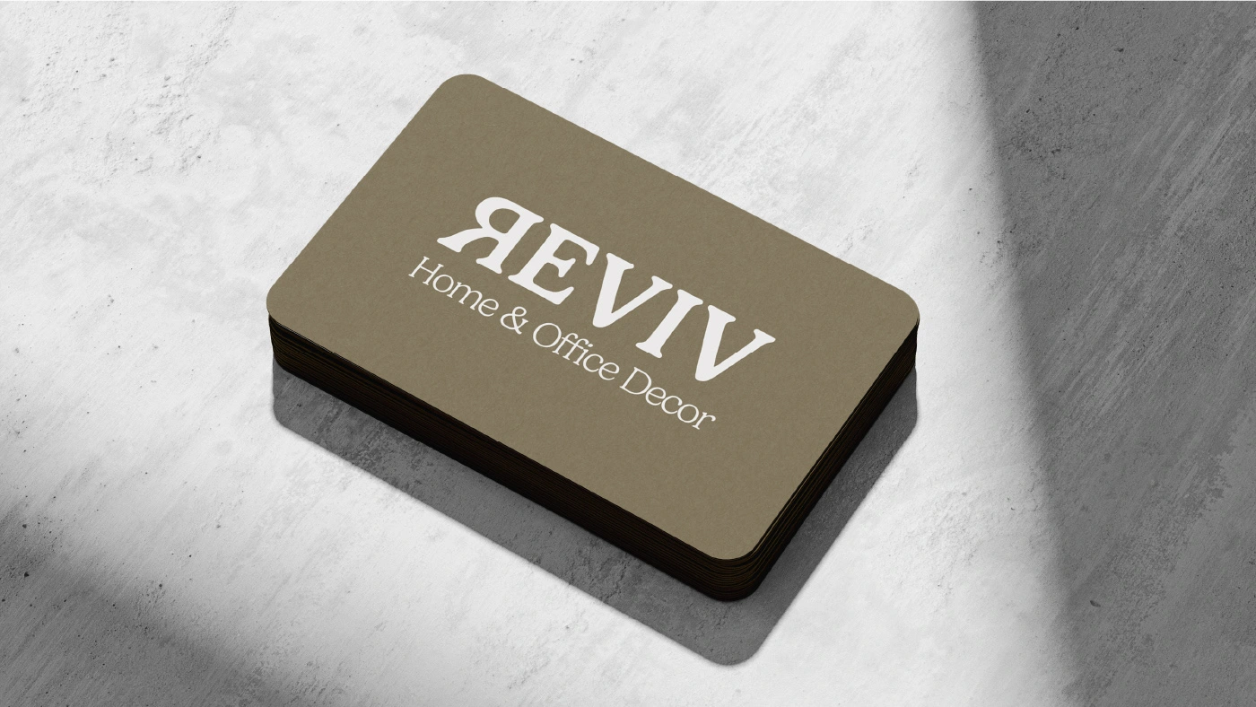 Brand identity project for REVIV Home & Office Decor. REVIV brand that emphasizes modern living and decoration.