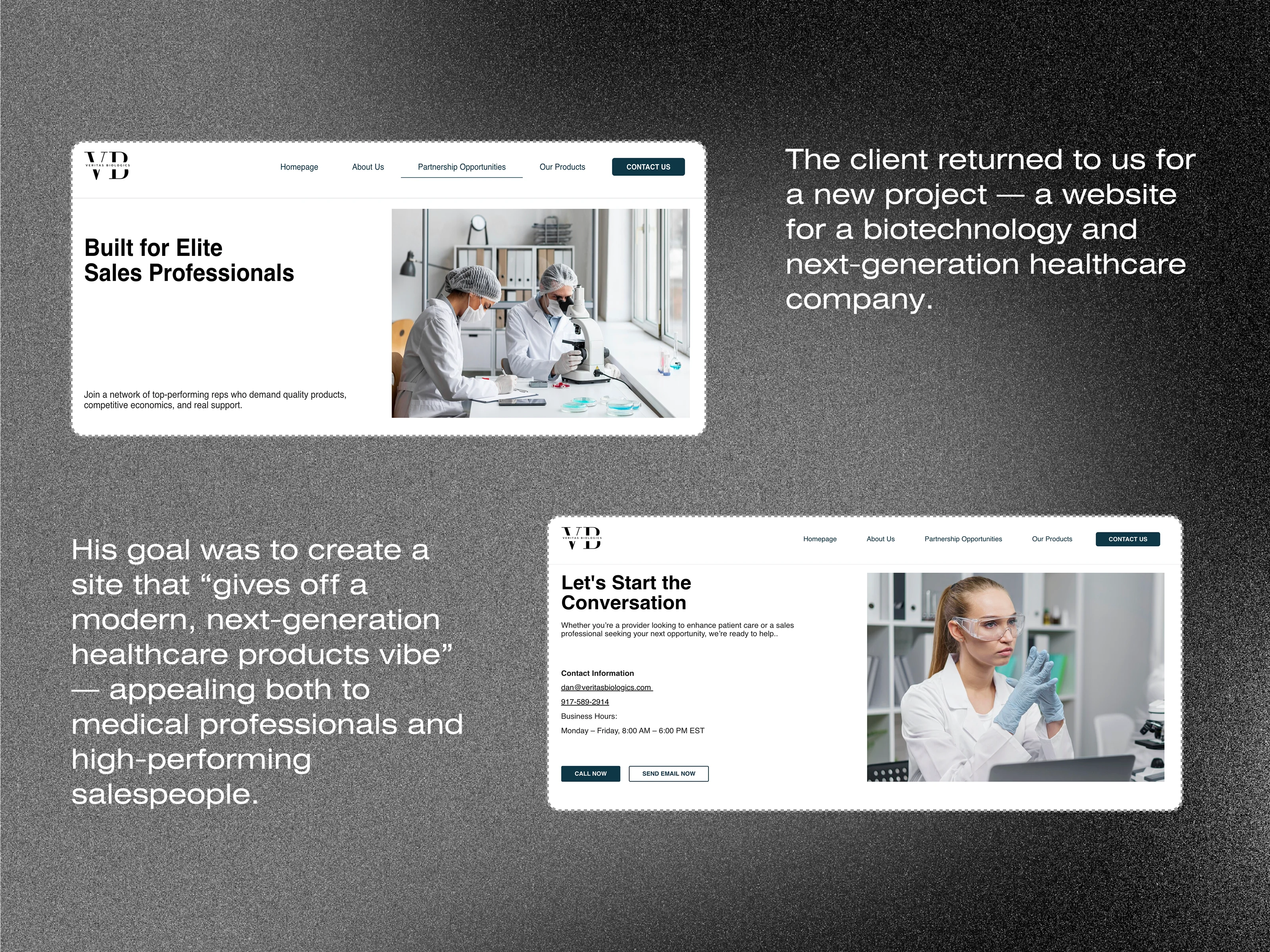 The client returned to us for a new project — a website for a biotechnology and next-generation healthcare company.