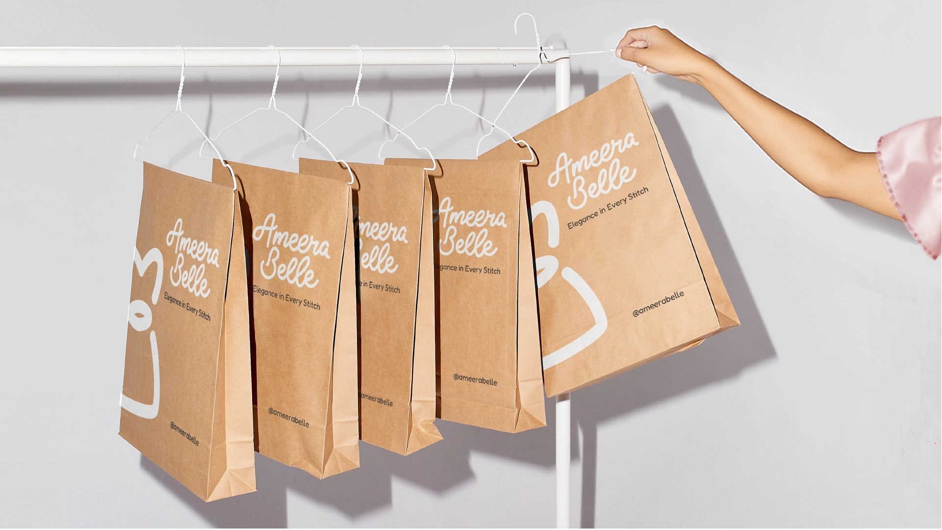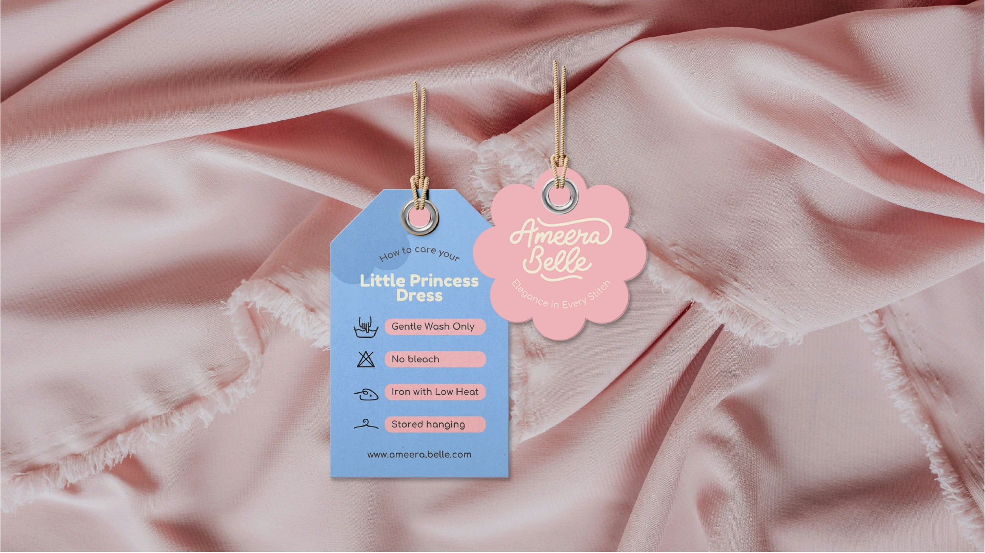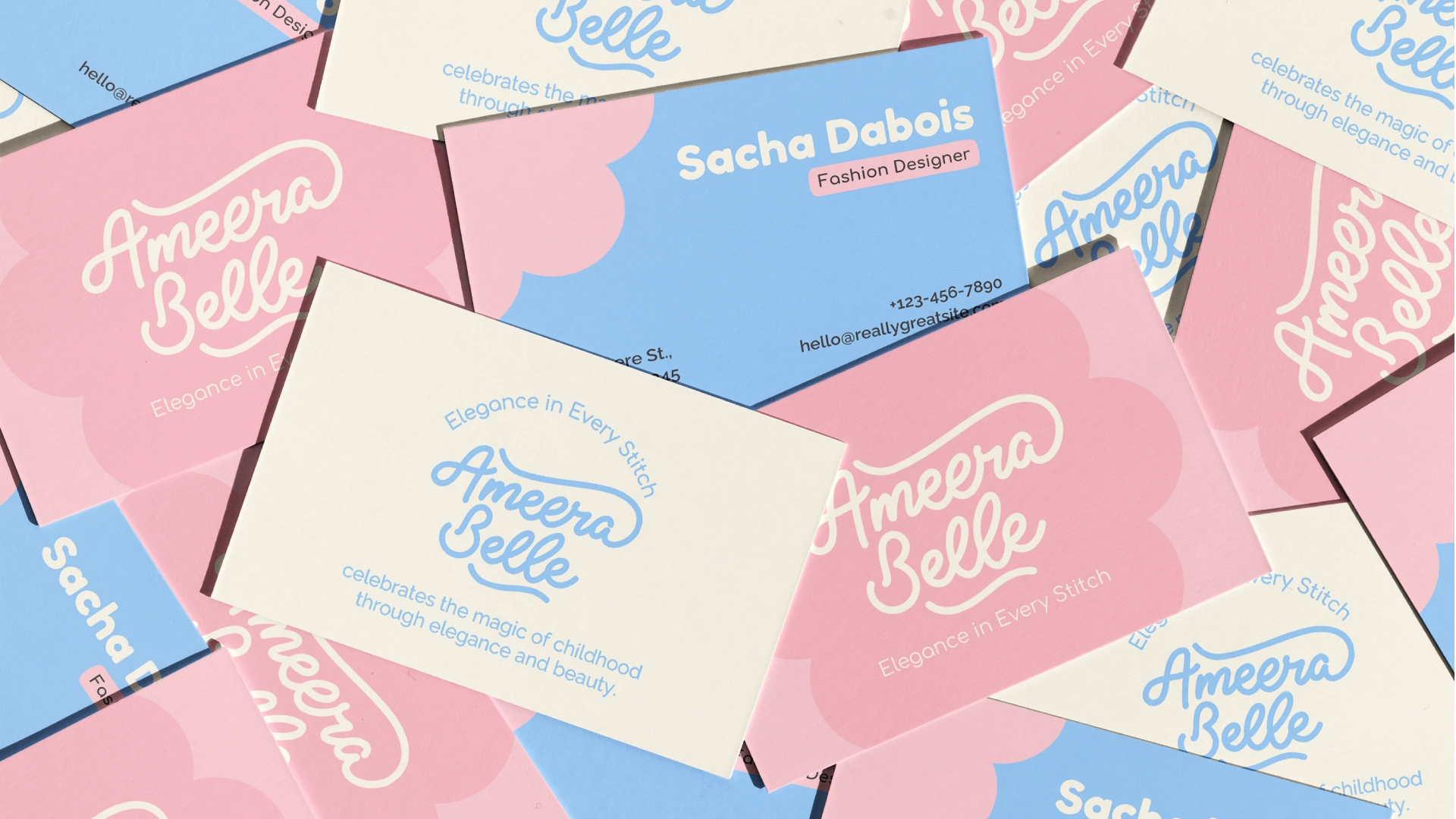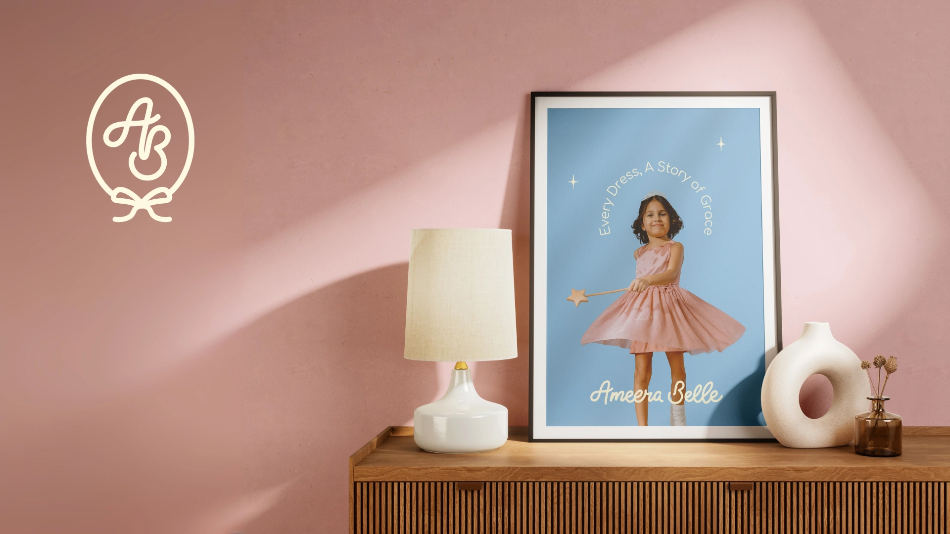 Ameera Belle is a children’s fashion brand identity designed to celebrate softness, elegance, and timeless childhood moments. The project features a cohesive visual system spanning logo design, color palette, packaging, social media, and environmental applications—crafted to create an emotional, premium brand experience for modern parents.
