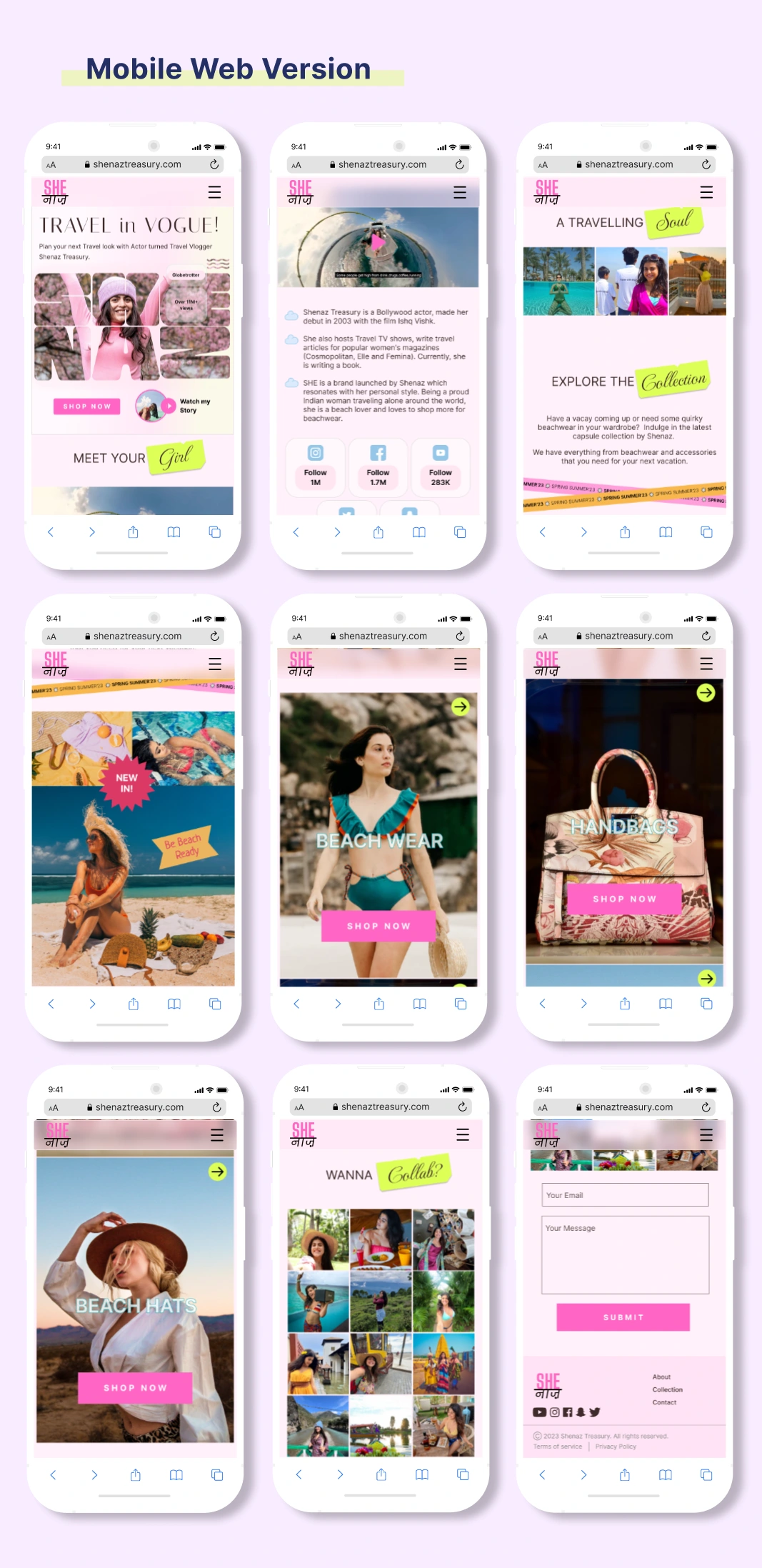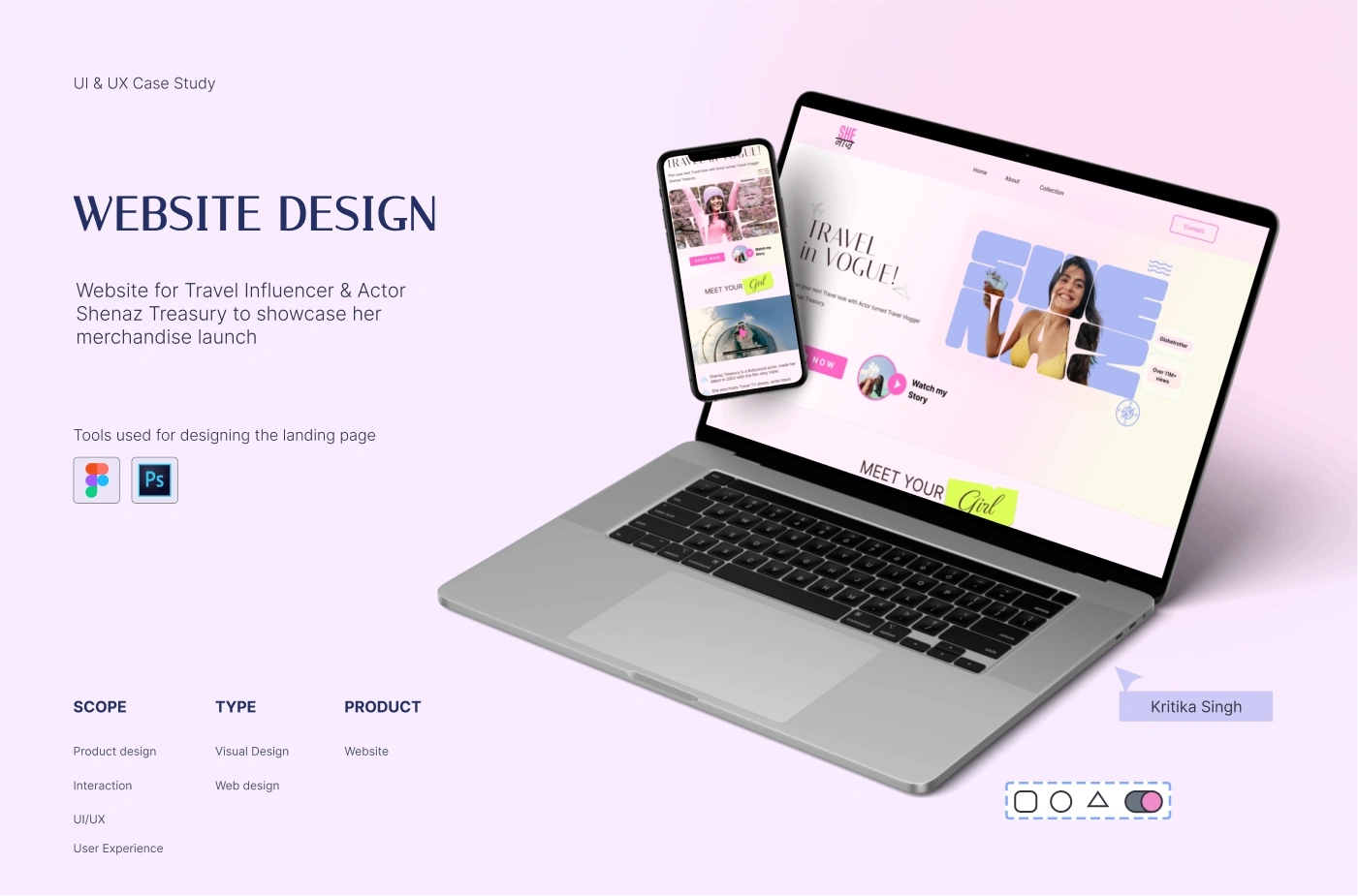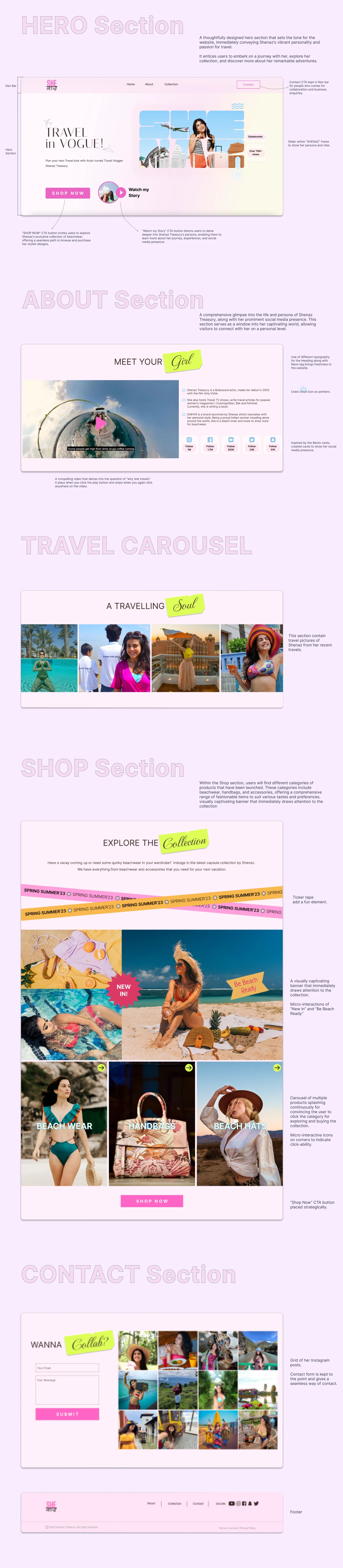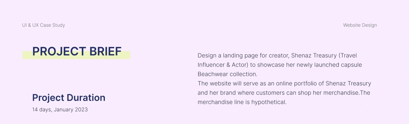 A UI/UX case study on designing a Website Design for Travel Influencer & Actor Shenaz Treasury to showcase her merchandise launch