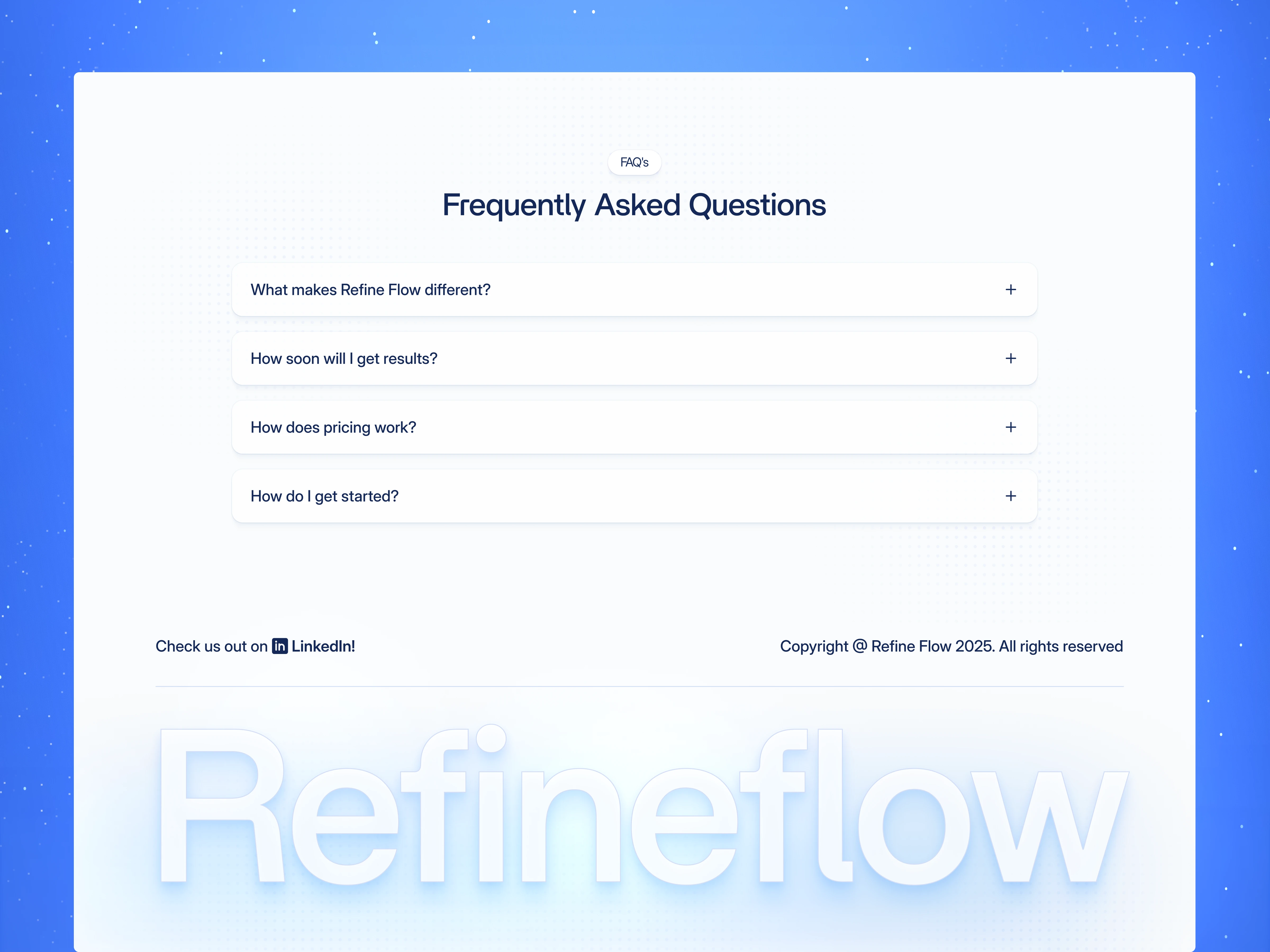 The final page clearly communicates RefineFlow’s value and feels easy to use. Visitors can quickly understand the product and are guided toward booking a call.