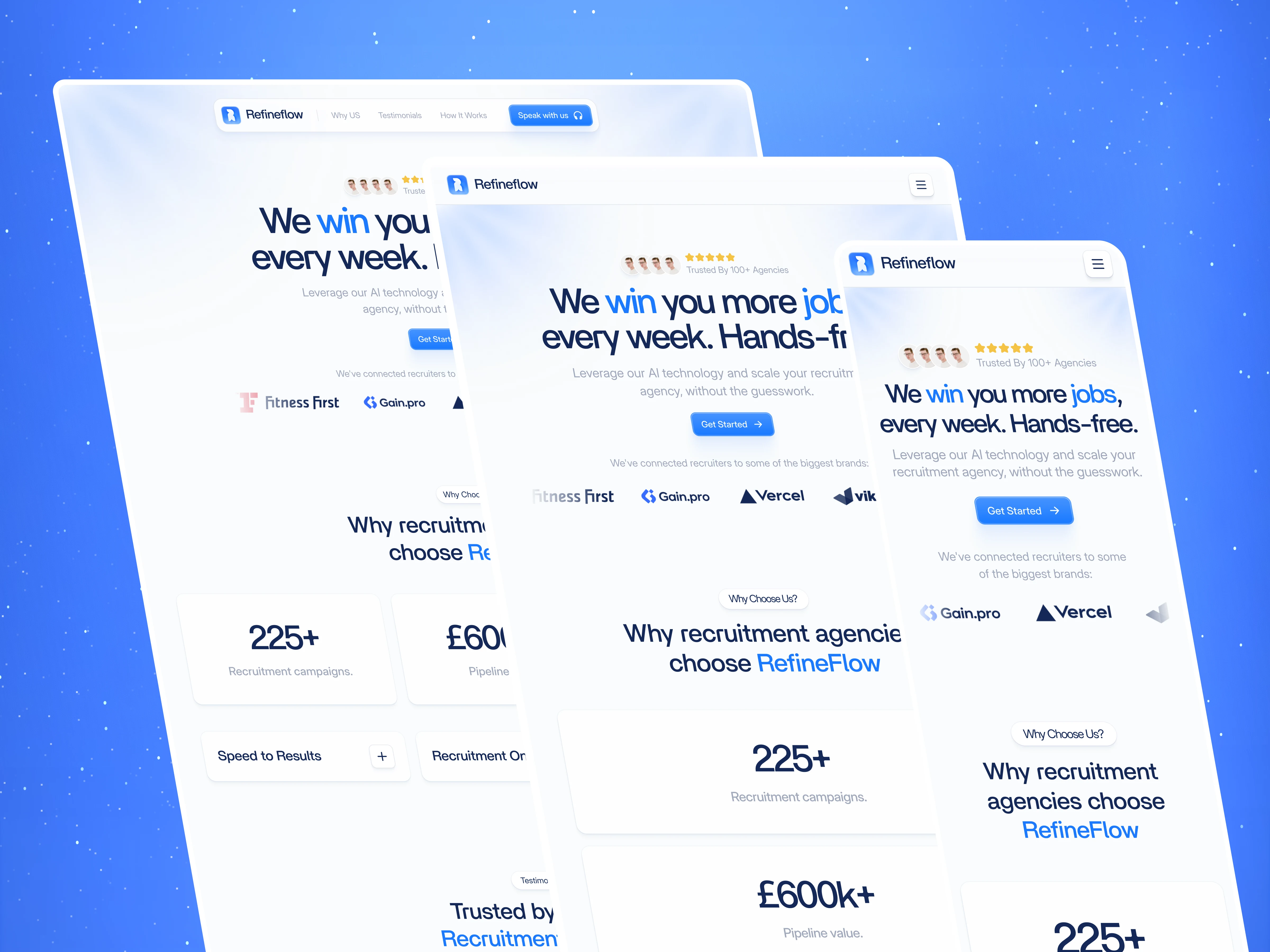 Recruitment agencies struggle with inconsistent leads and unclear AI solutions. RefineFlow needed a simple page that builds trust and pushes users to take action fast.