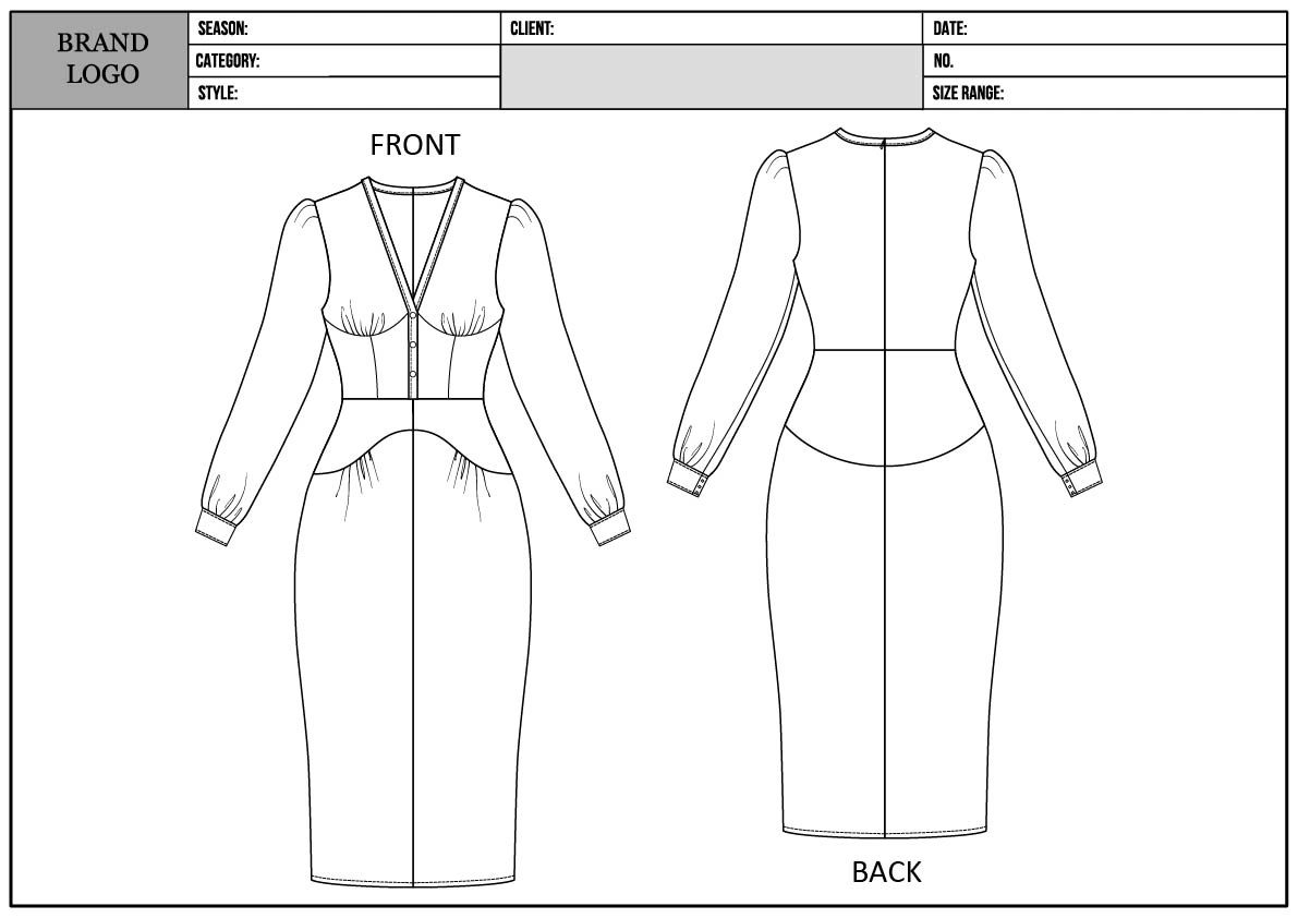 WOMEN'S FASHION DESIGN ILLUSTRATIONS FACTORY TECH PACKS