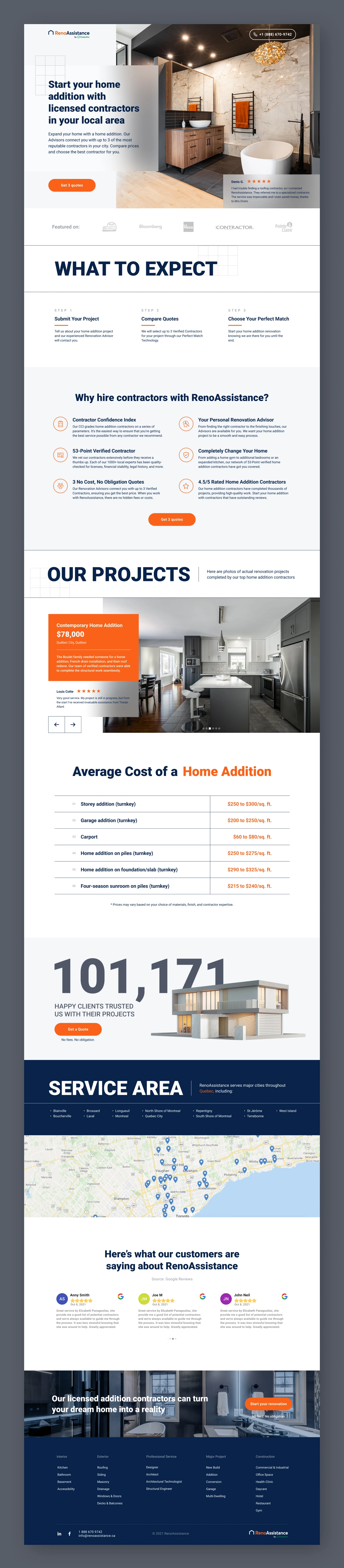 Responsive landing page design for a renovation marketplace with a focus on clarity, trust, and high conversion.