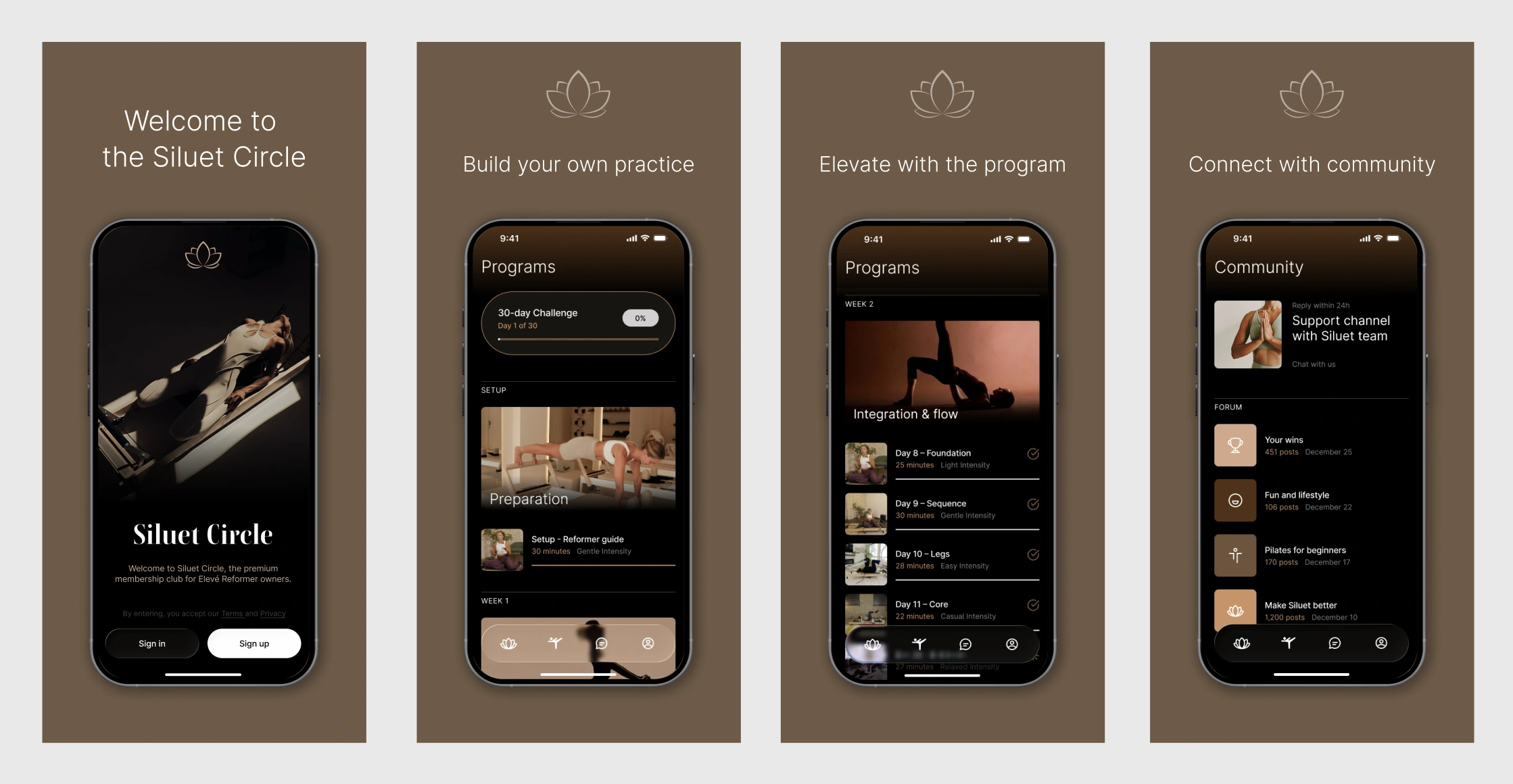 Siluet Circle is a mobile application designed for women who own a reformer Pilates machine and want to build a consistent, meaningful movement practice at home. The app supports guided Pilates programs while encouraging long-term commitment through gentle progress mechanics, personal scores, streaks, and a sense of belonging. Alongside training, Siluet Circle integrates community features, allowing members to connect, share progress, and communicate through chats in a supportive, non-competitive environment.