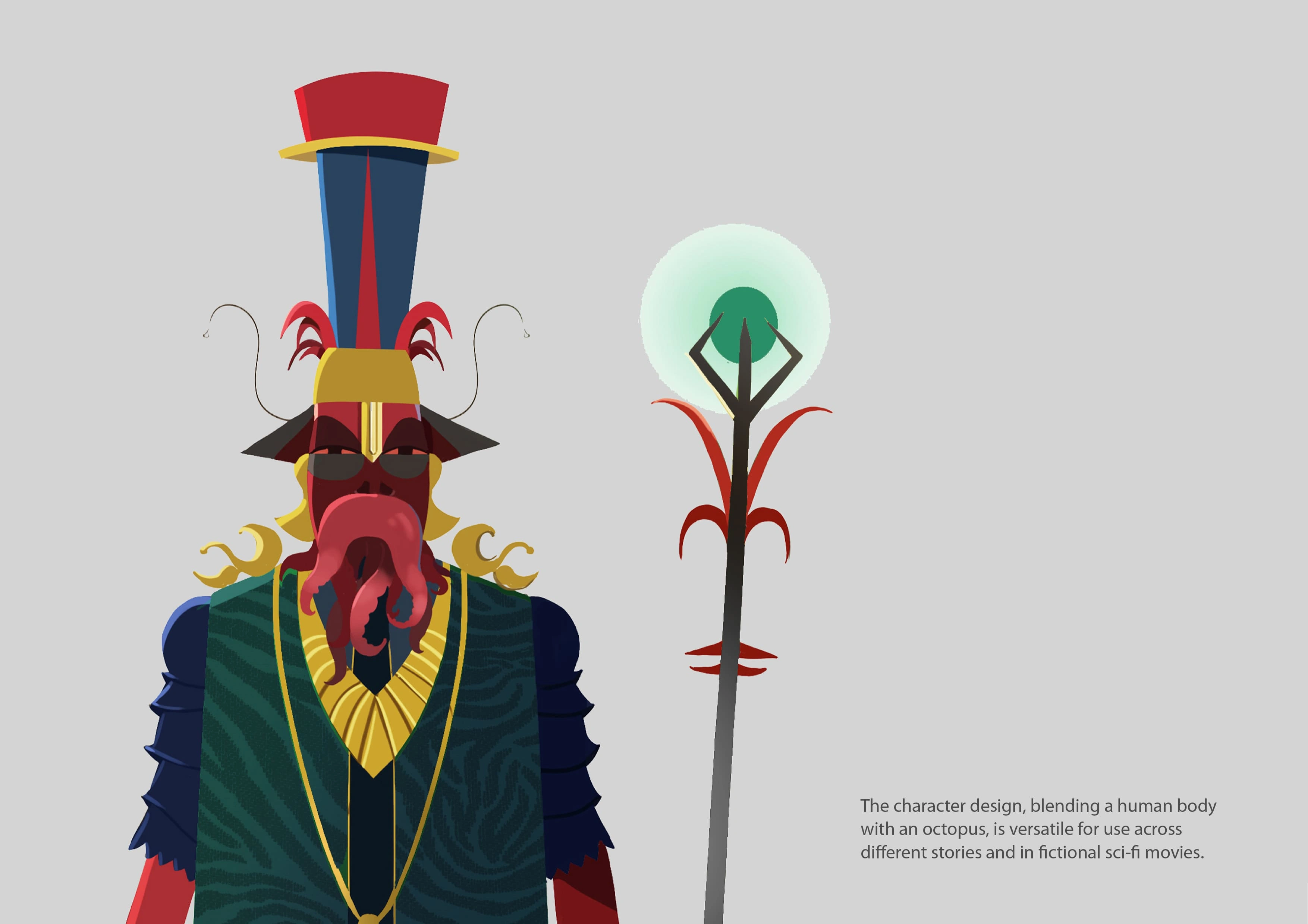 The character design, blending a human body with an octopus, is versatile for use across different stories and in fictional sci-fi movies.
