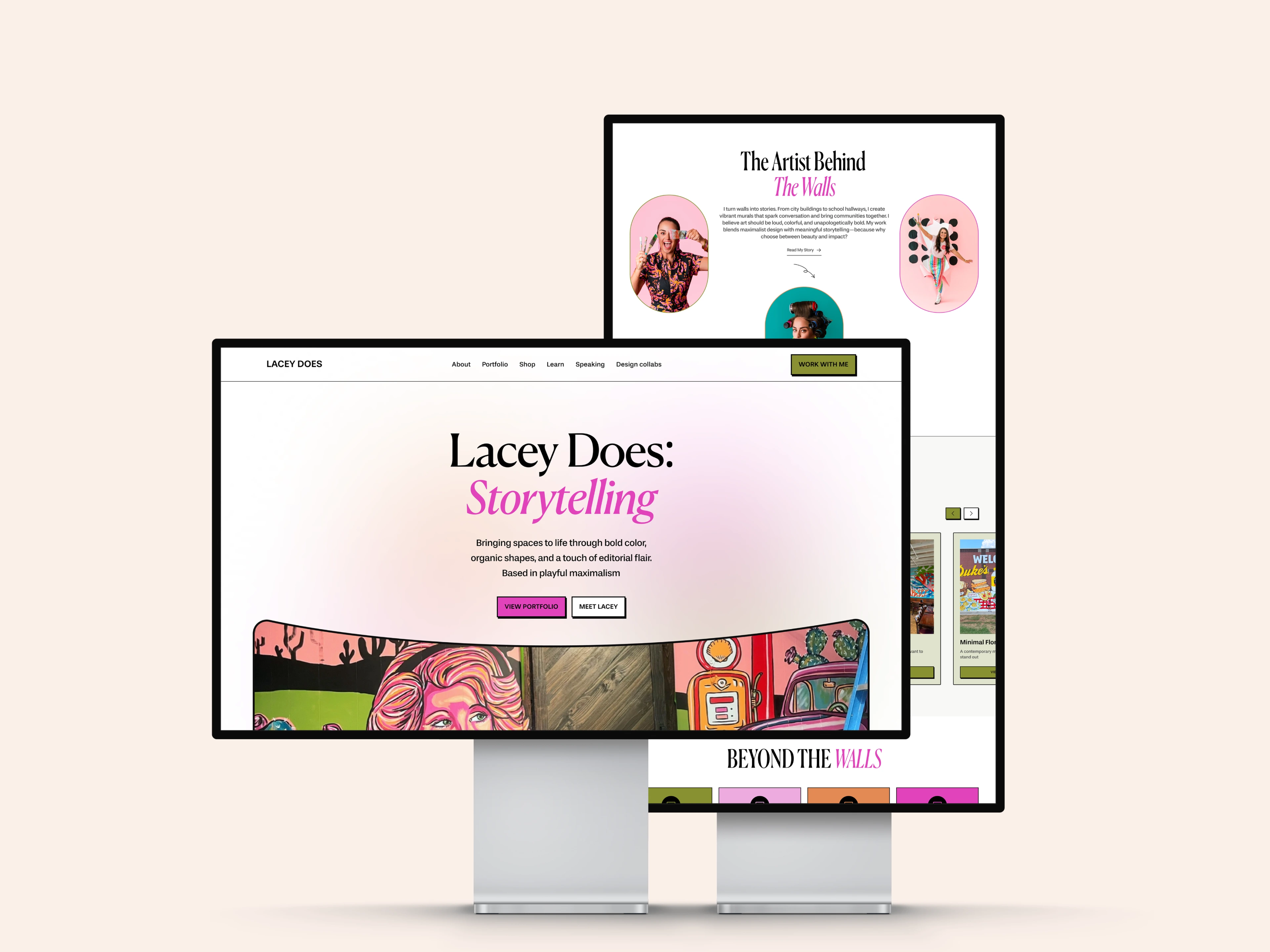 Lacey Does is the personal brand website for Lacey Hennessey — muralist, artist, designer, and creative collaborator. The site was designed to function as both a visual-first murals platform and a flexible brand ecosystem supporting collaborations, licensing, speaking, learning content, and a curated shop.