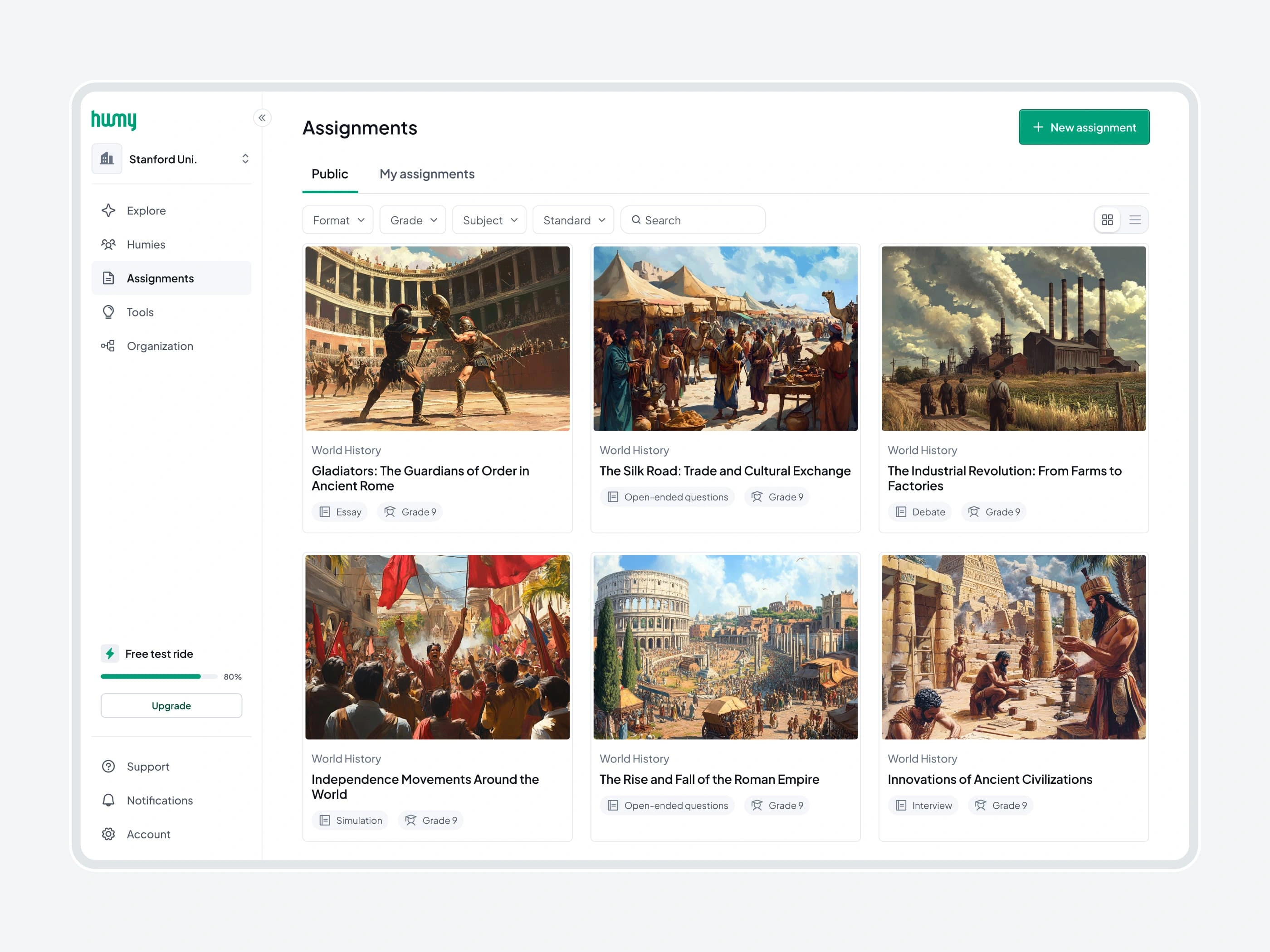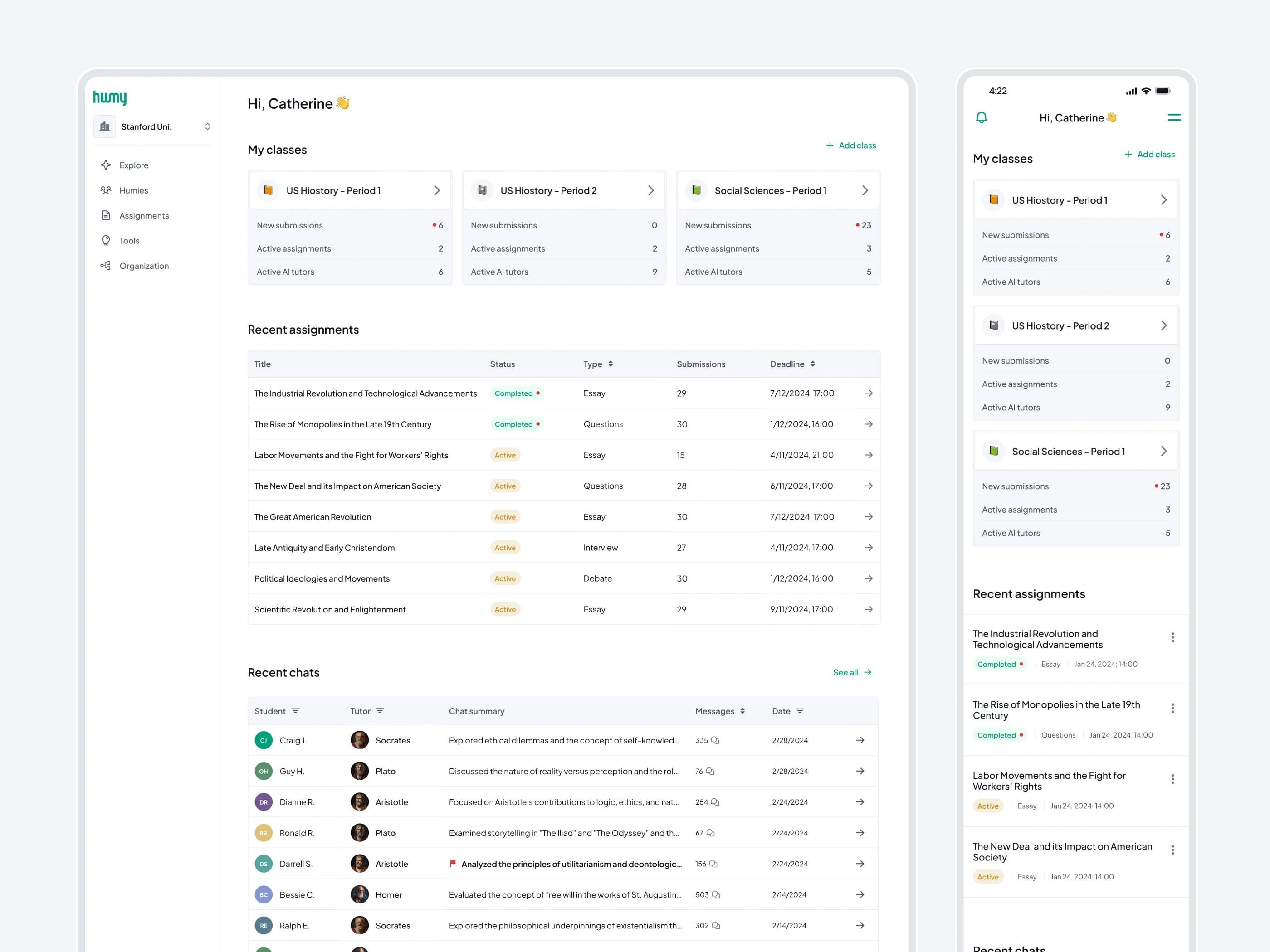 Humy empowers teachers to create AI tutors. I partnered with the founders to design an intuitive platform, improving assignment delivery and learning outcomes.