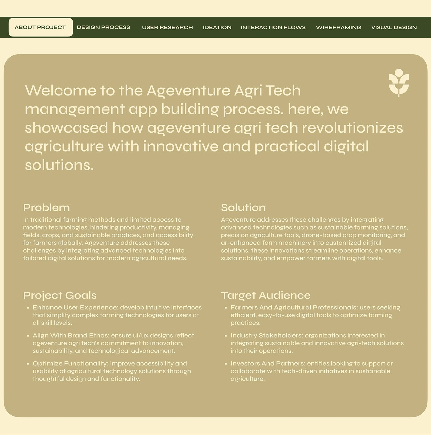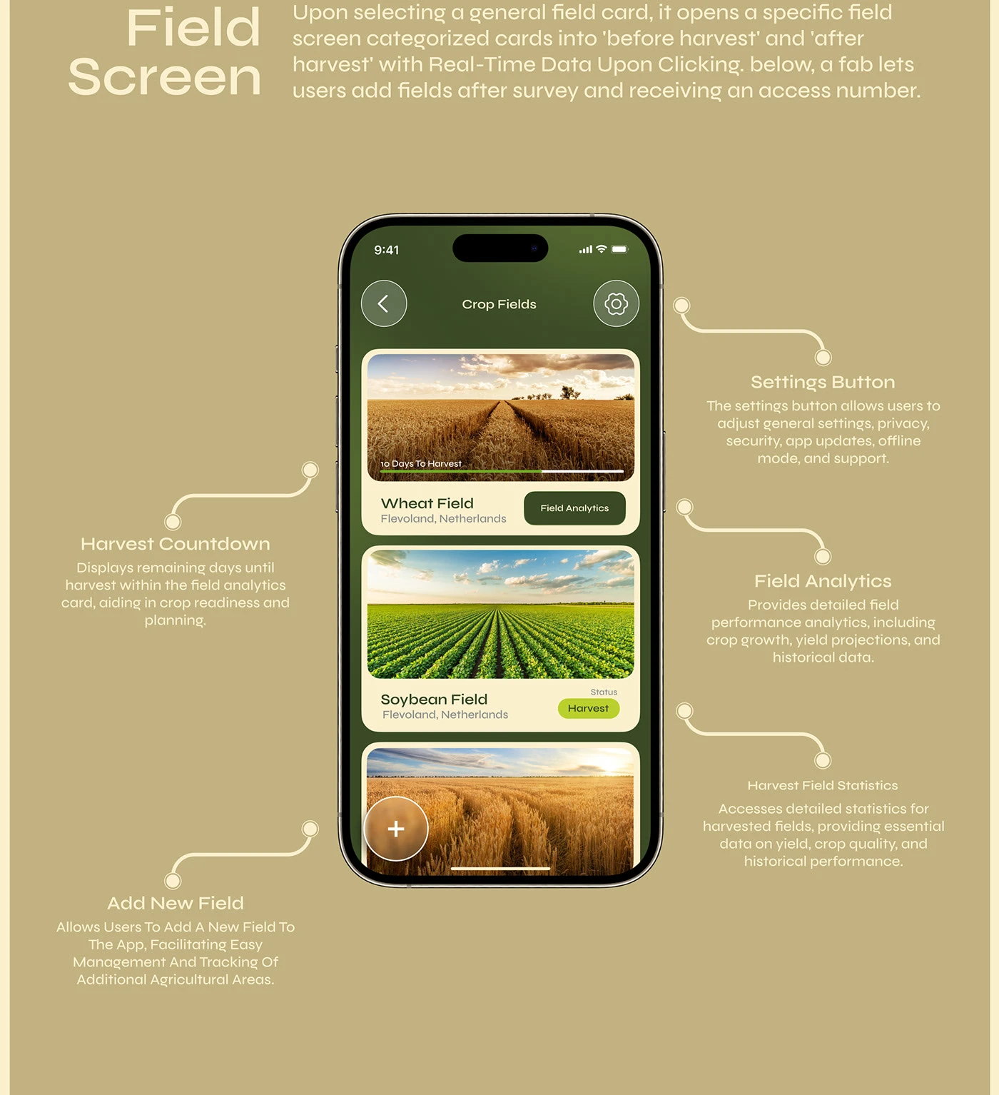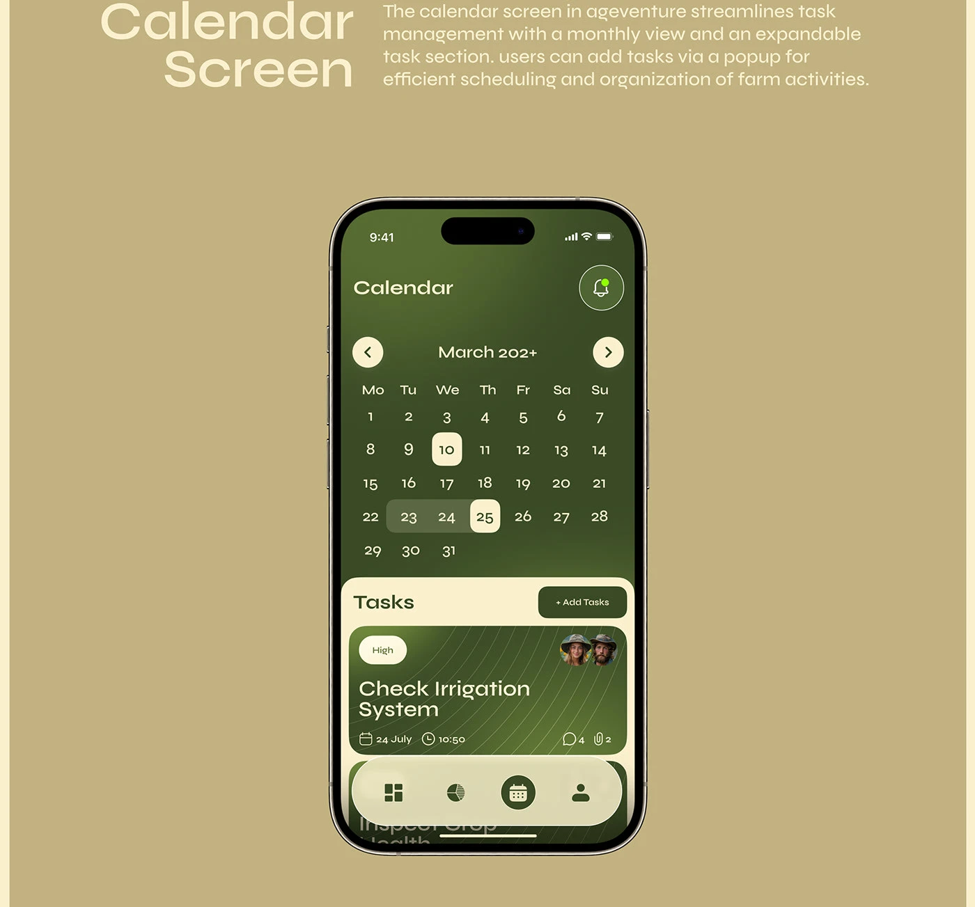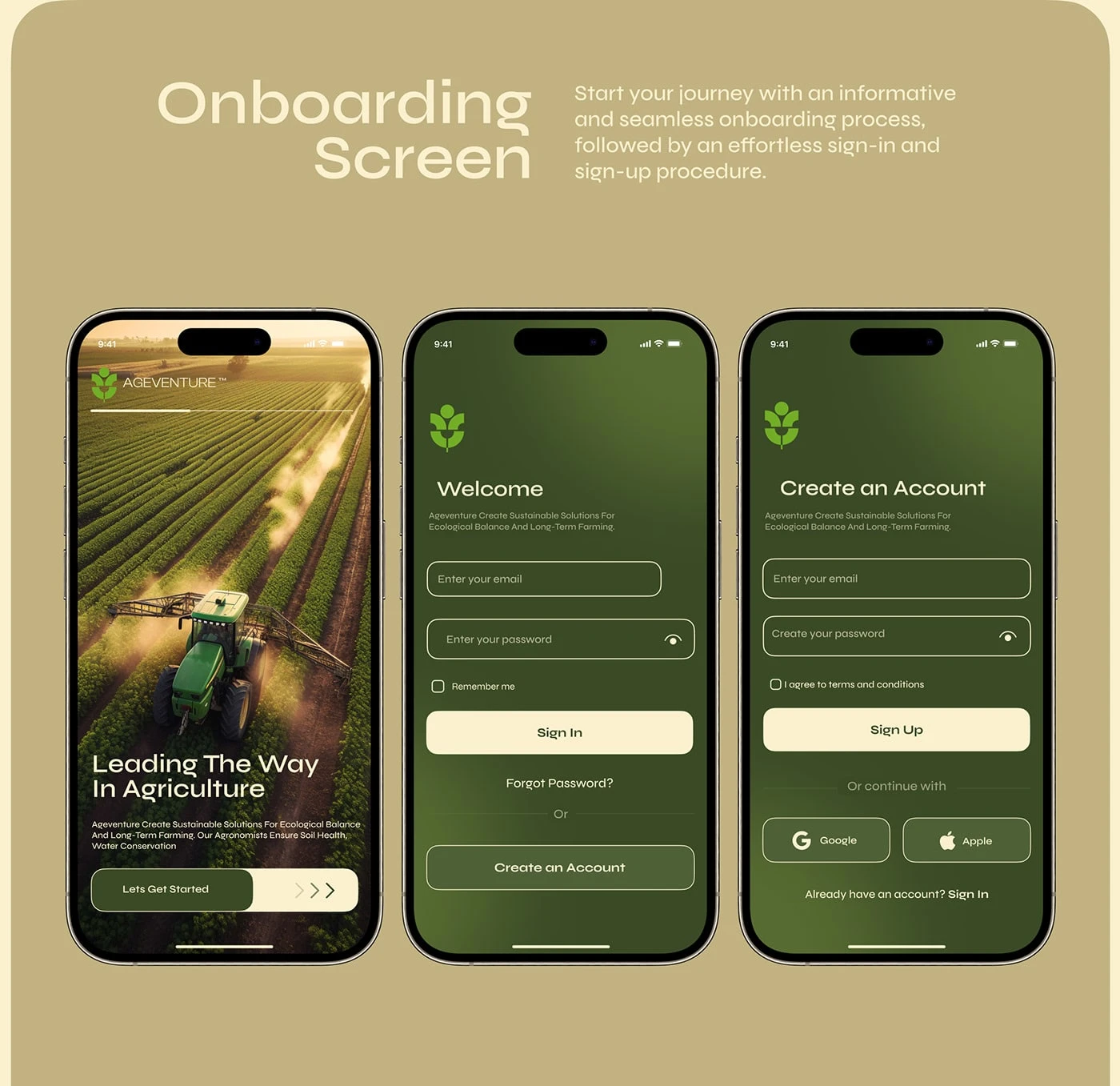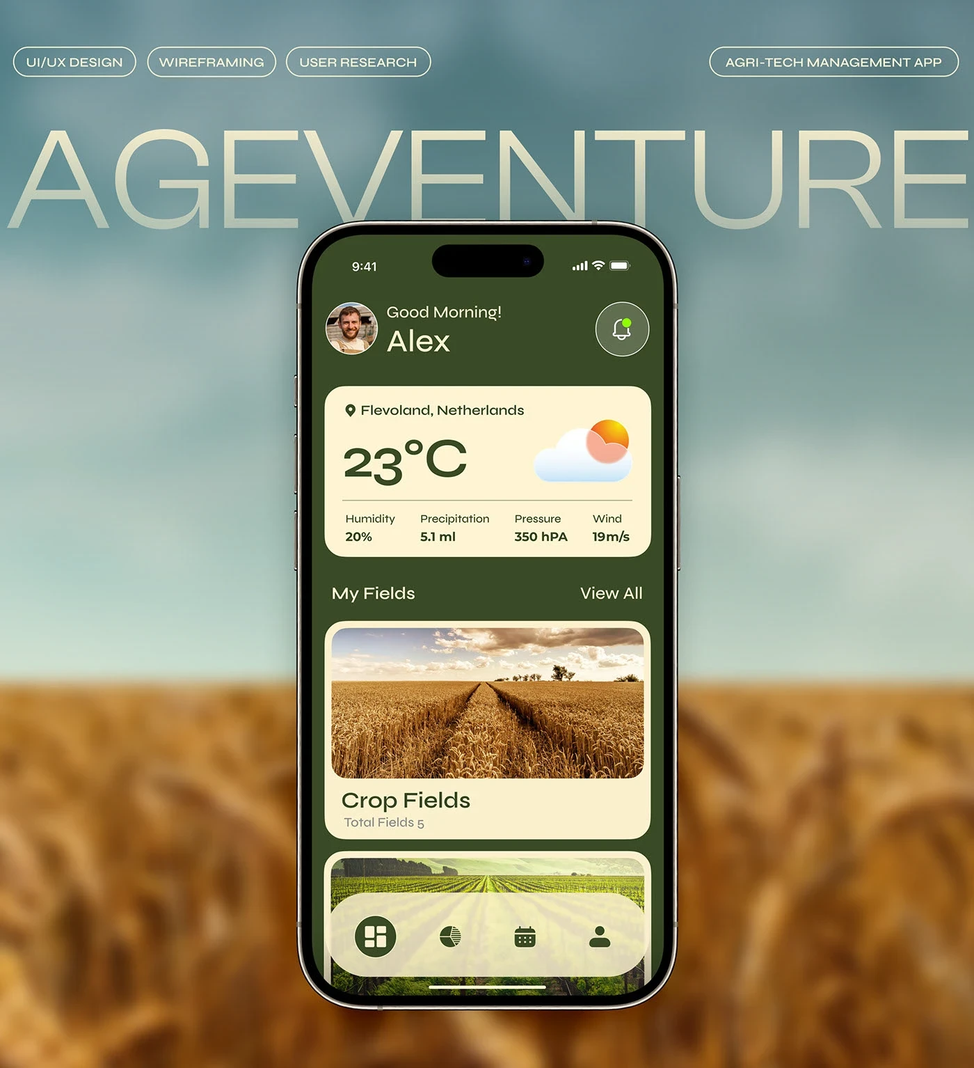 Ageventure is a forward-thinking agri-tech app built to support modern farming practices. I designed a clean, user-friendly interface that helps farmers and stakeholders manage crops, resources, and operations efficiently through smart digital tools. The design focuses on clarity, accessibility, and sustainability.