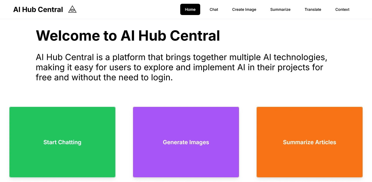 AI Hub central is a multi AI tool web app that allows users to seamlessly utilize different AI technologies.