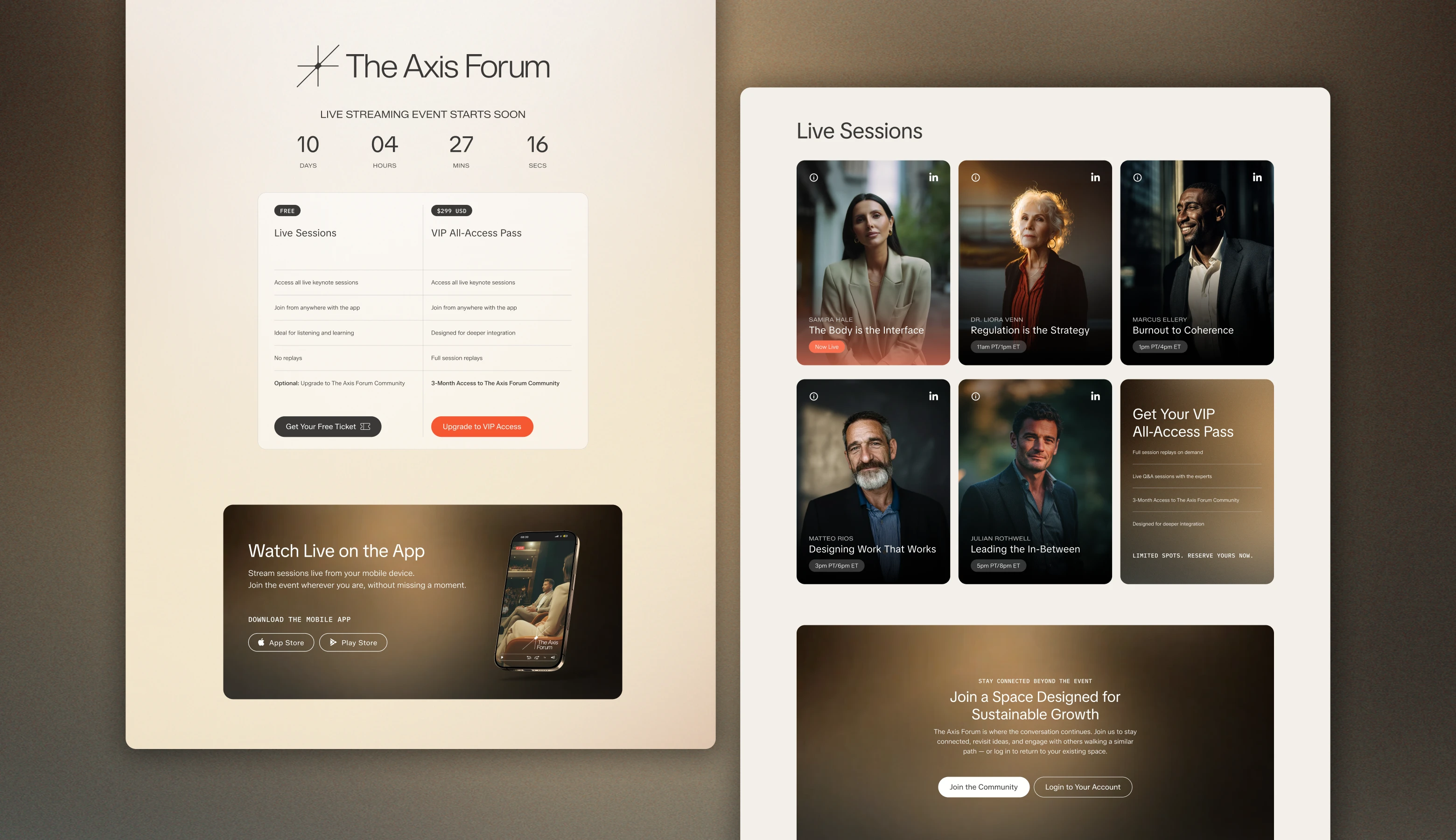 To enhance Vesper’s full ecosystem, we brought The Axis Forum to life; an online event that serves as a nexus for leaders and thinkers driving human-centered transformation. Inspired by the concept of an axis as a point of intersection and expansion, we designed a visionary live event experience that reflects this energy.