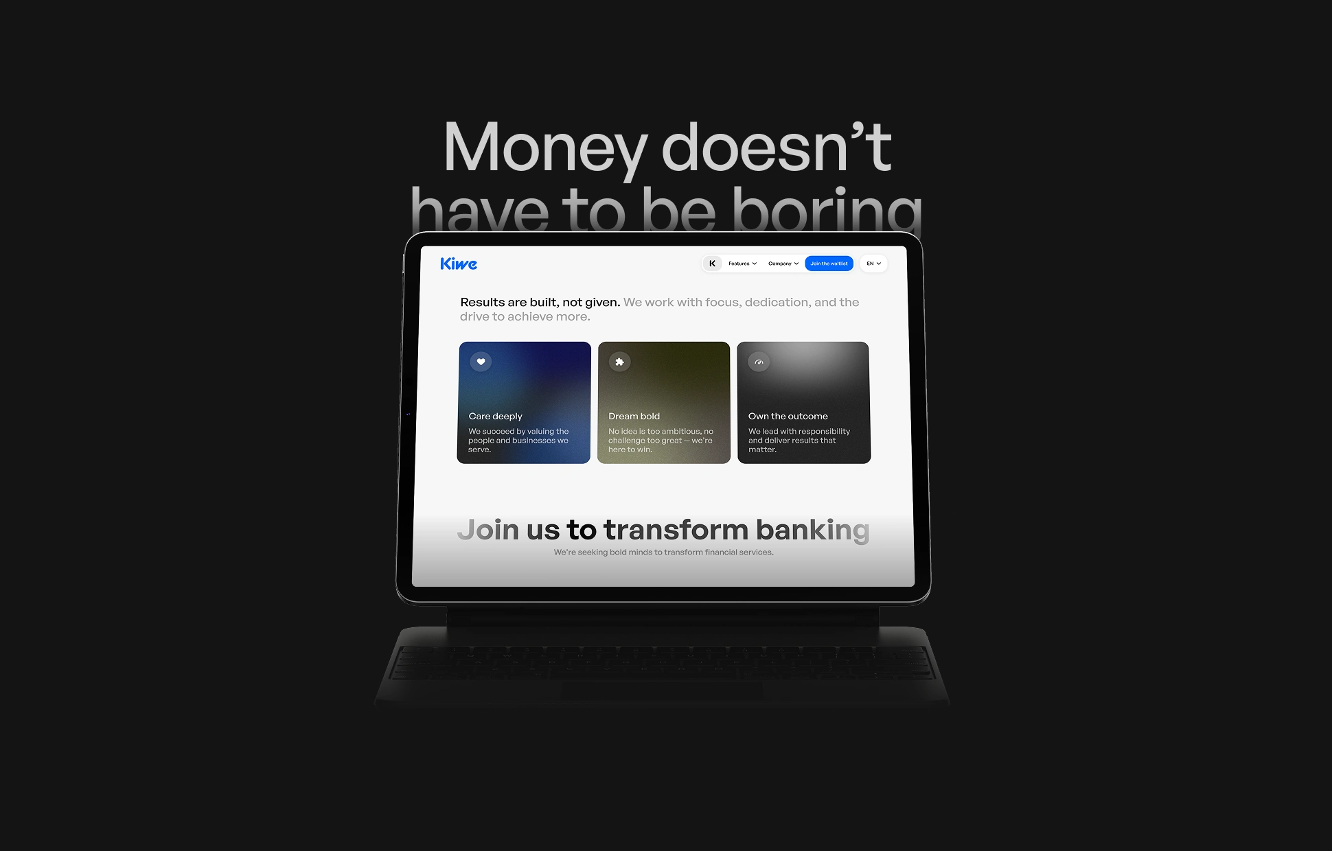 Kiwe Bank is financial product focused on simplicity and trust. We partnered with the team to design both the mobile app and the marketing website.