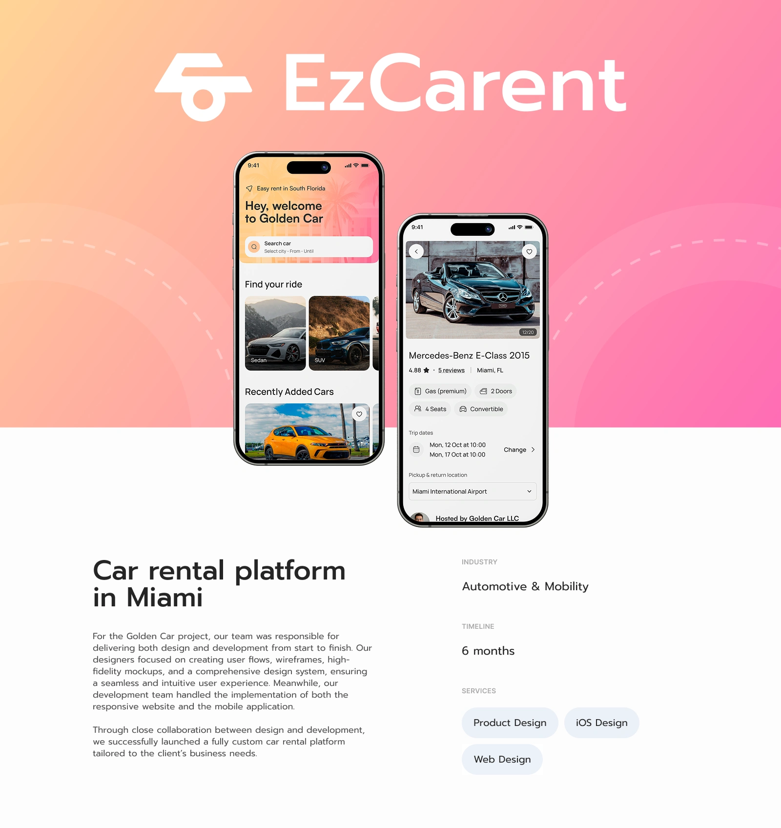 Designed and developed a custom car rental platform, helping the client increase revenue by cutting third-party fees and improving user retention.