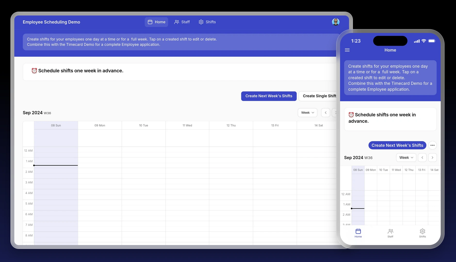 An Employee Scheduling Demo built on Glide simplifies your employee management process, whether you're planning shifts for a day or a week. This template lets you create and edit employee schedules effortlessly, integrating with your existing data and tools.