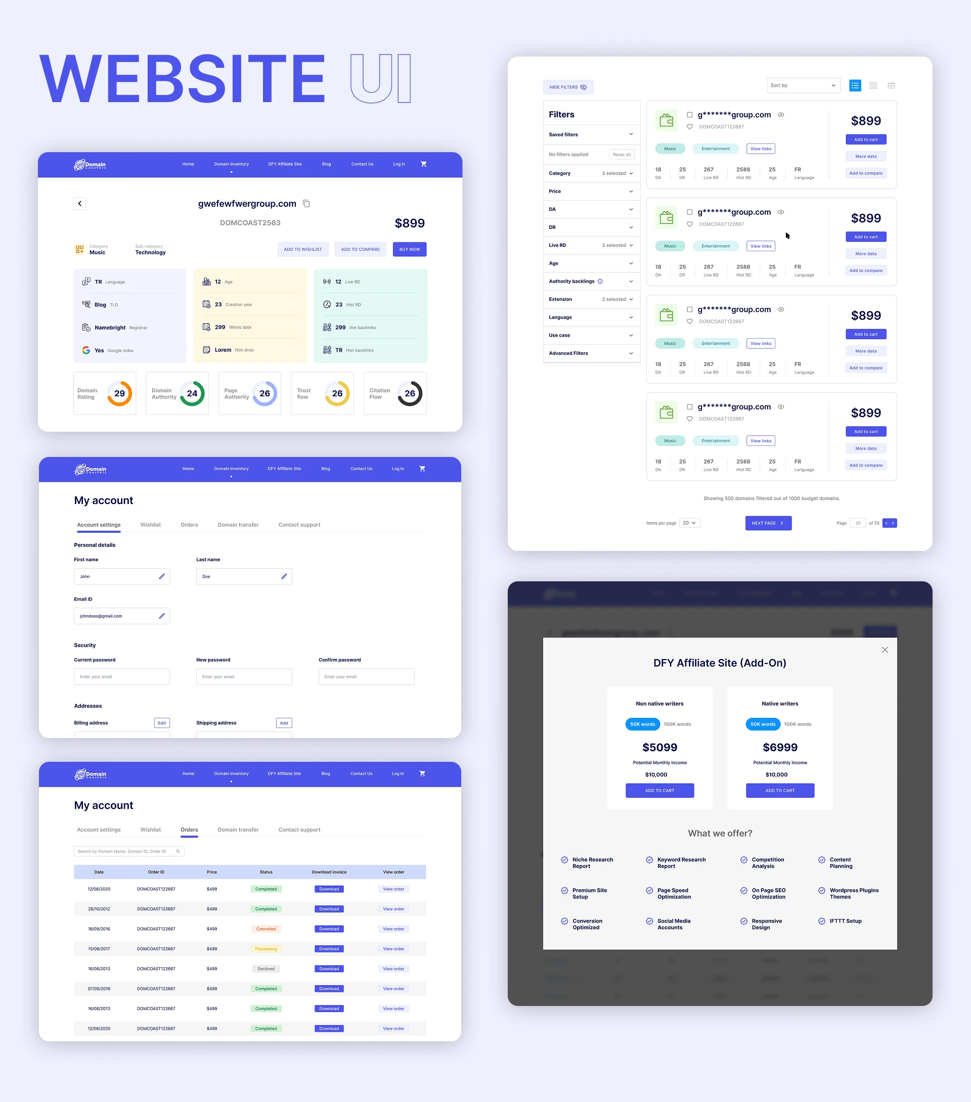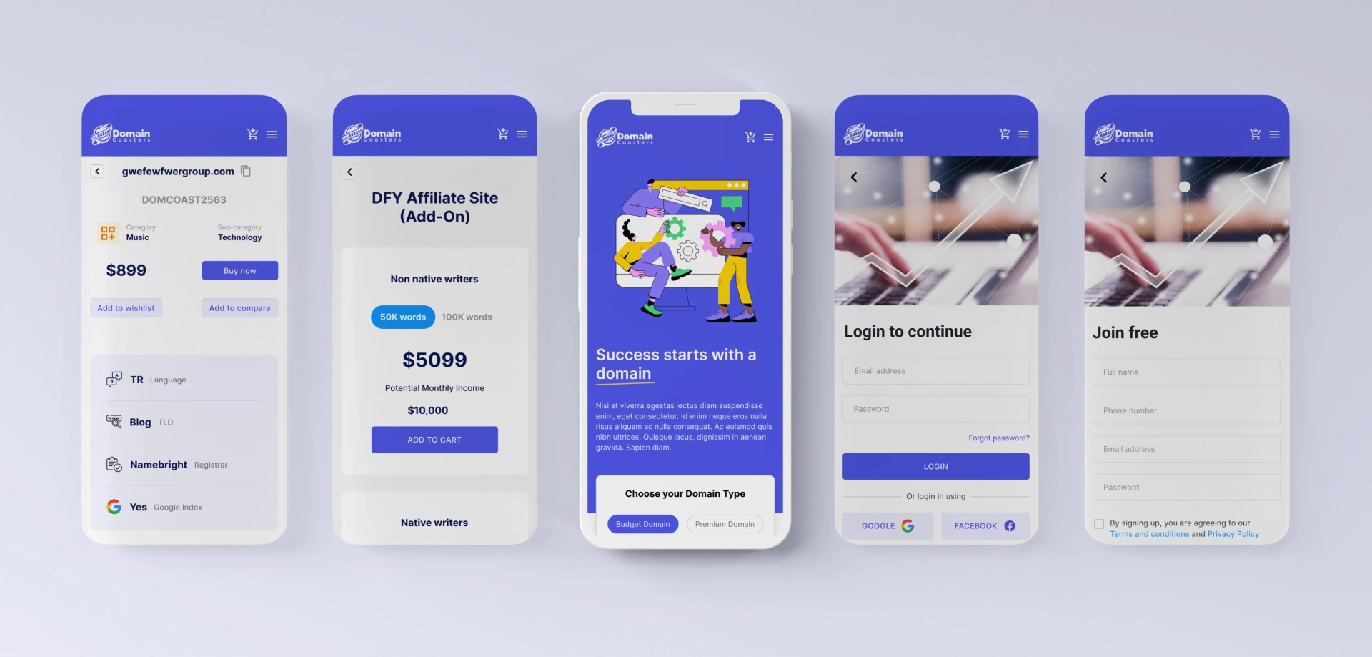 We designed the web app and responsive mobile experience from the ground up, focusing on clarity, speed, and usability. Starting with user flow mapping and information architecture, we streamlined key actions such as domain search, filtering, comparison, and checkout.