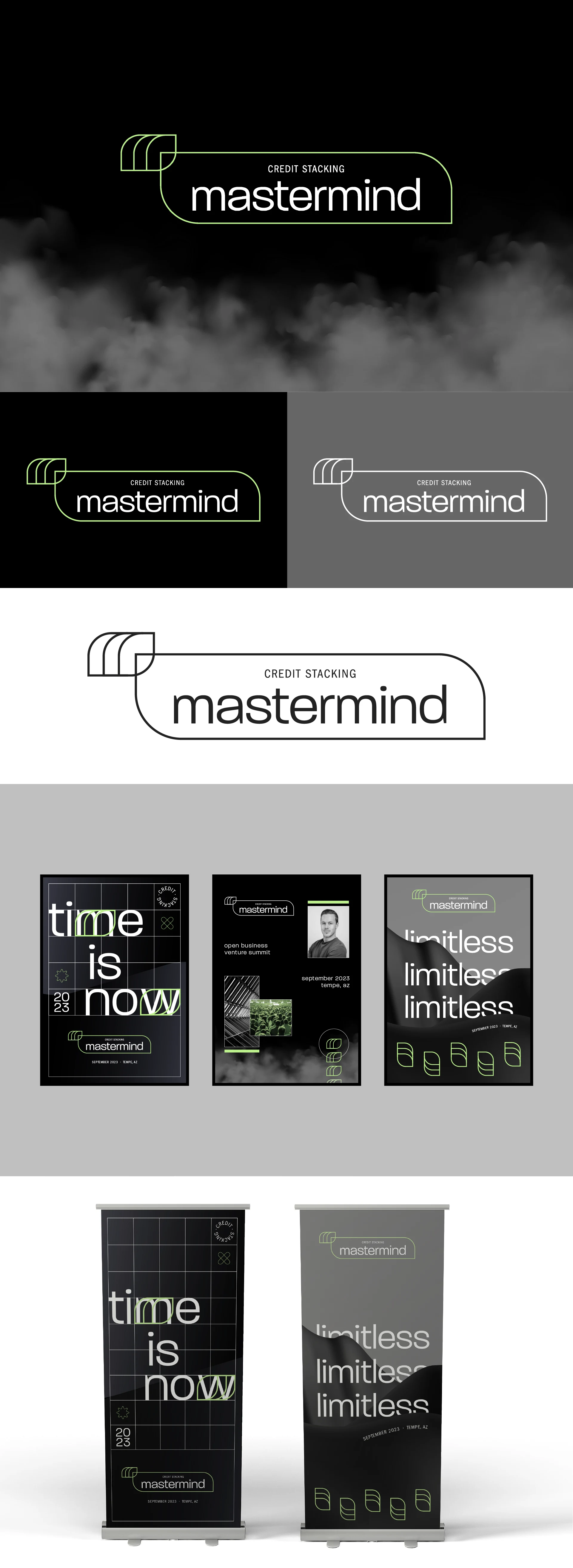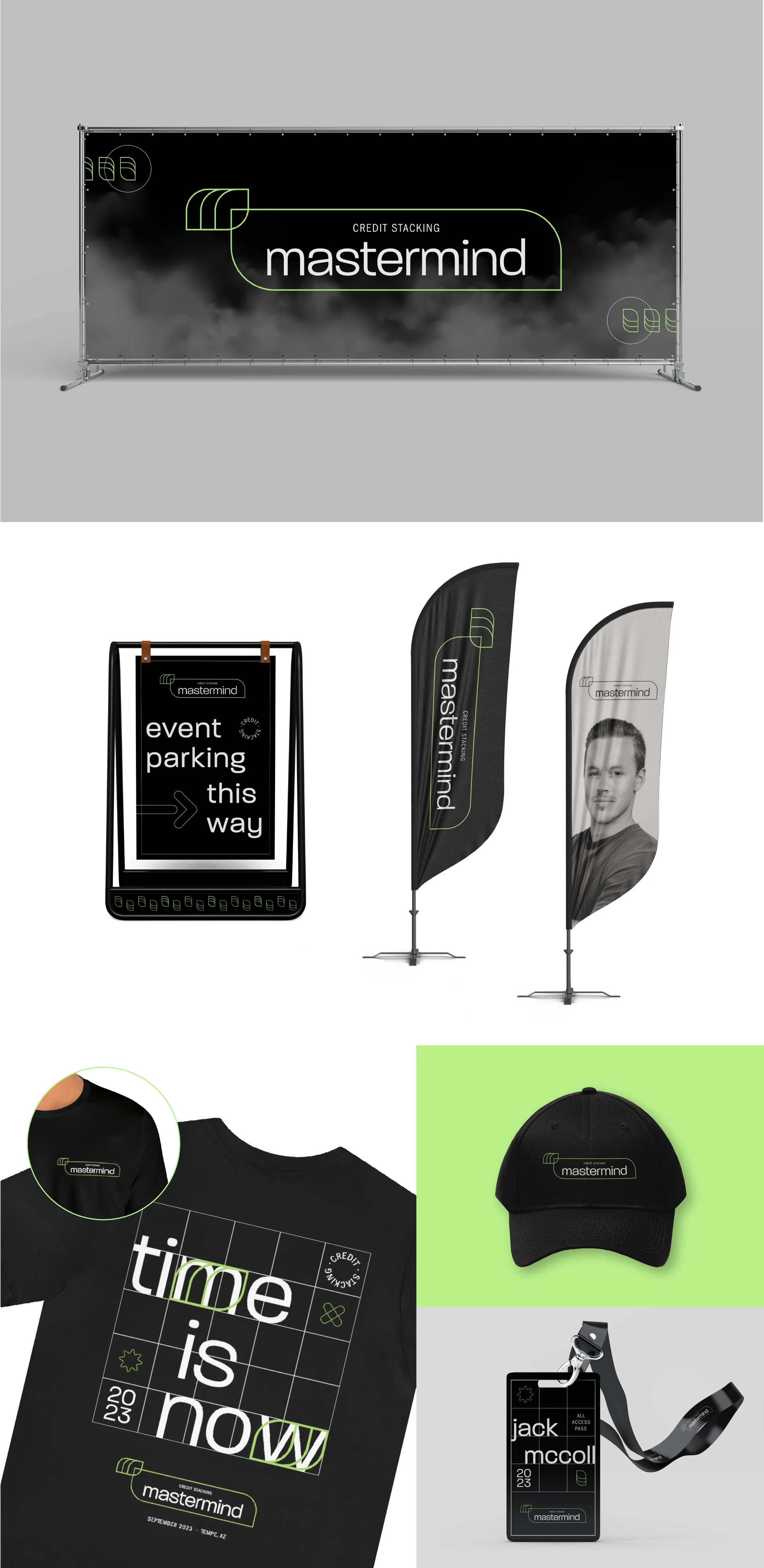 For the quarterly Credit Stacking Mastermind event themed "Time is Now," I thoughtfully crafted a comprehensive design scheme that seamlessly blended the essence of urgency and empowerment. Taking charge of the entire visual identity, I conceptualized and designed a dynamic logo that has graphic elements that were used through the brand materials. The color scheme, carefully chosen, not only resonates with the urgency of the theme but also exudes a sense of motivation and progress. The signage and merch were attentively curated to reinforce the event's branding, fostering a strong sense of community among the participants.
