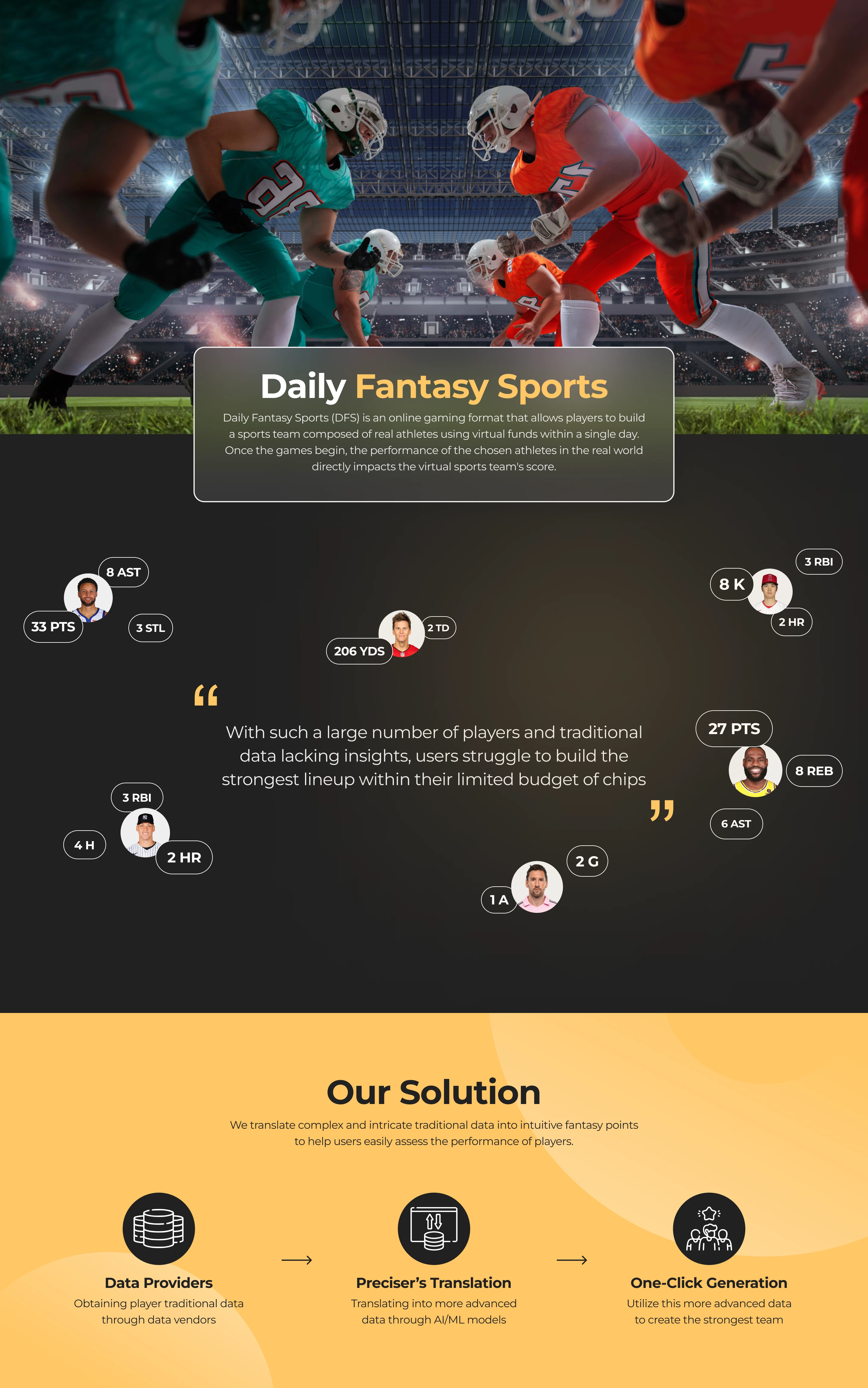 Preciser is a sports data analysis platform that collaborates with the world's largest data providers to offer precise sports event analysis to its clients.