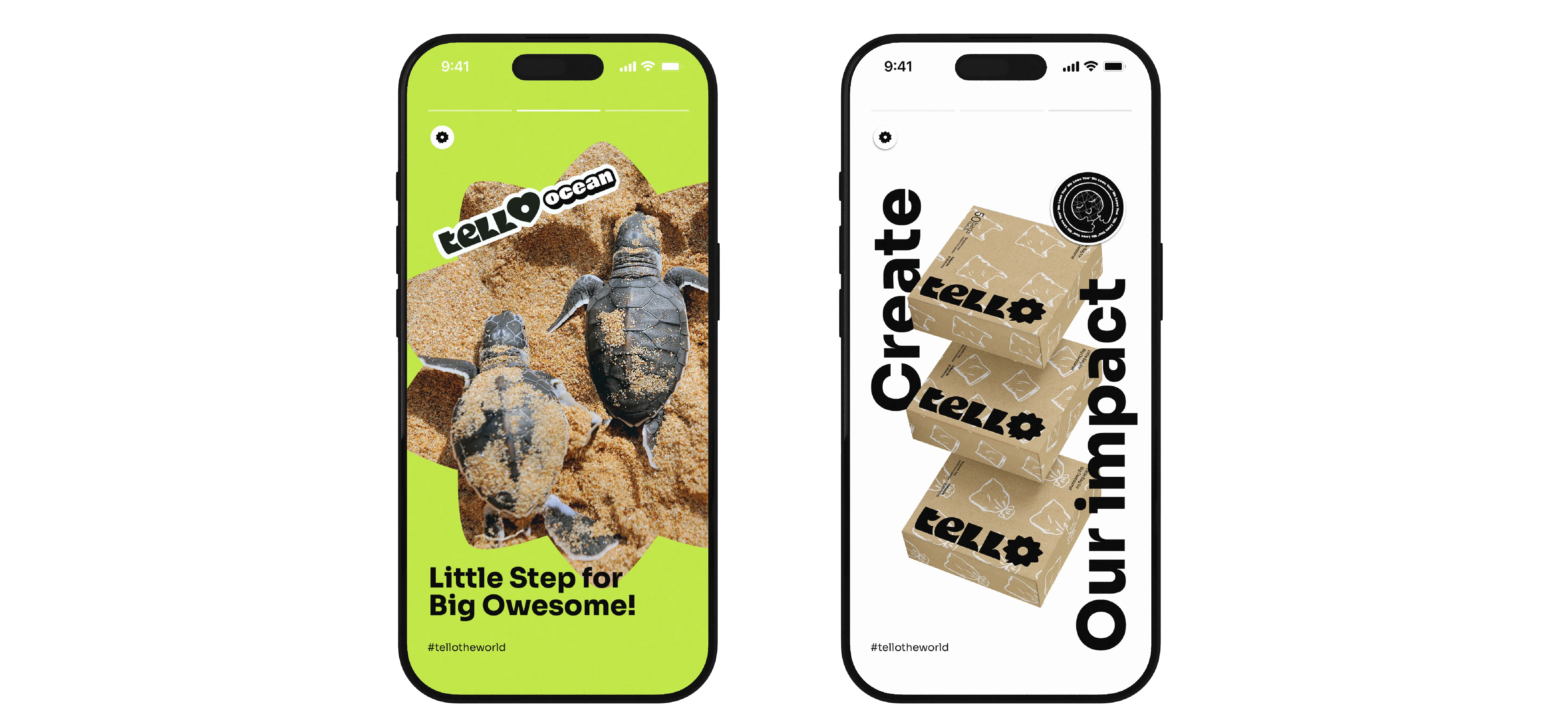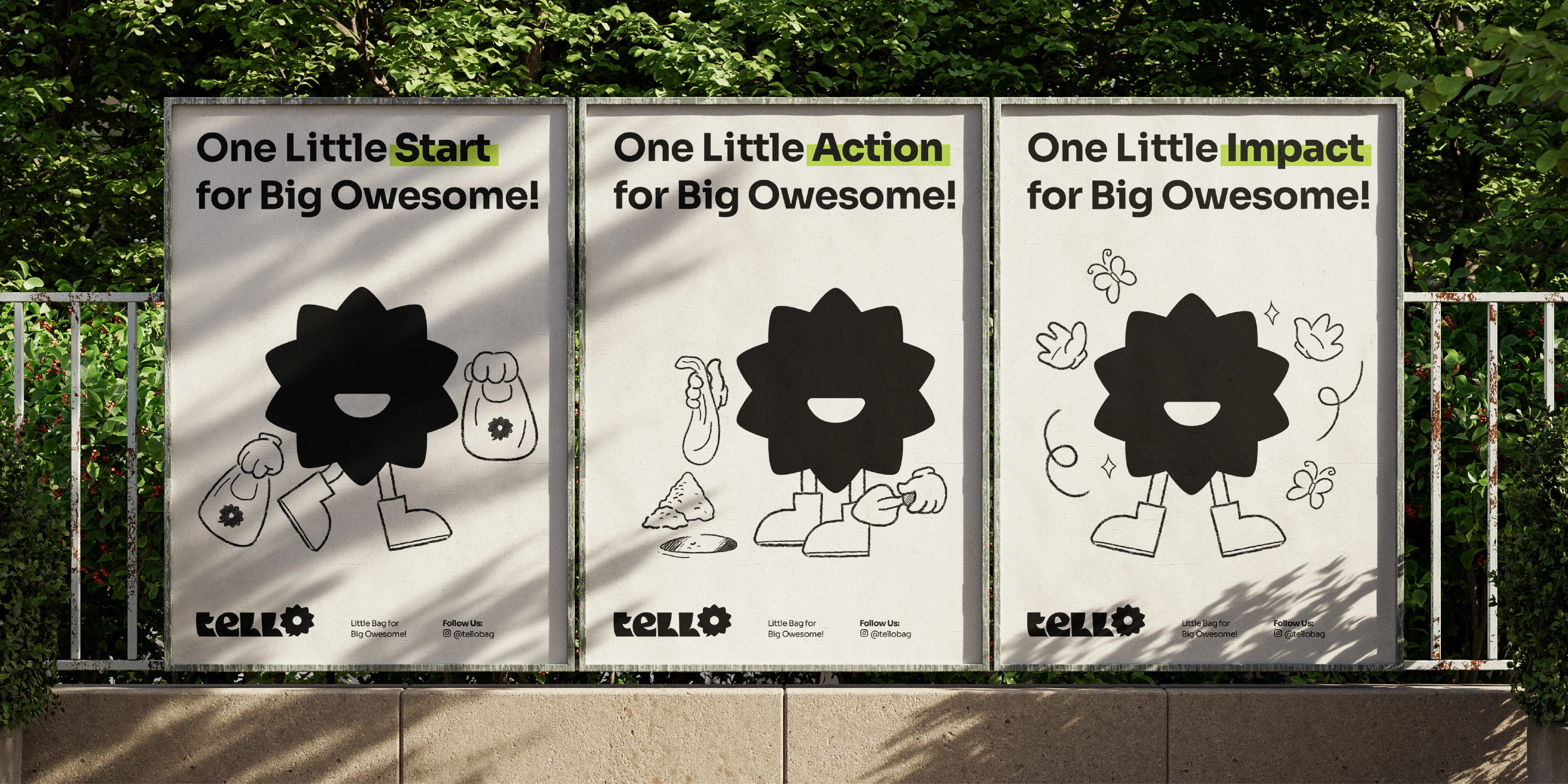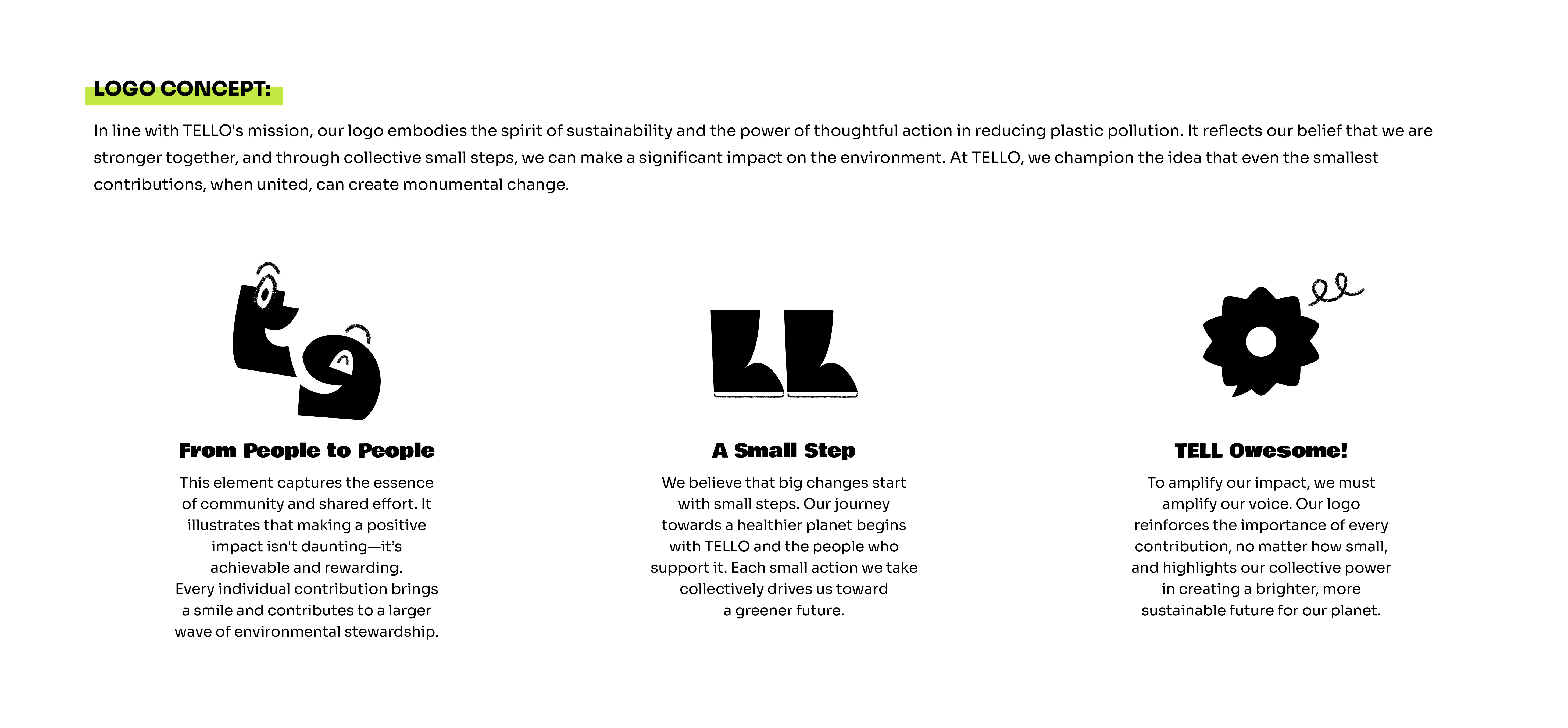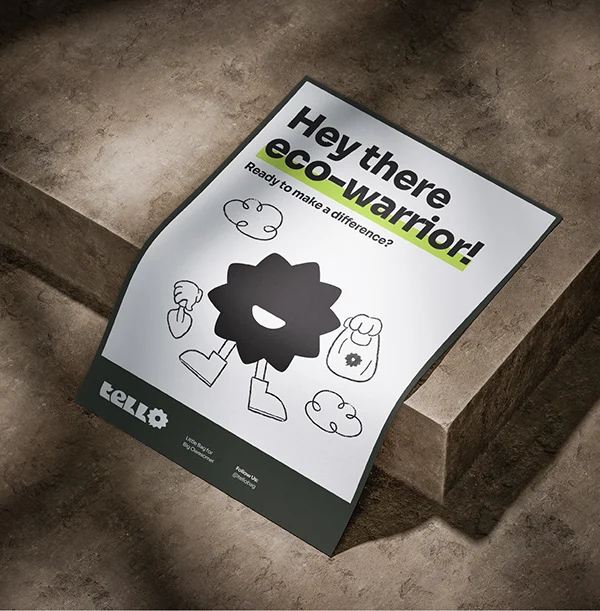 A Playful Path to Sustainability—TELLO’s design is bright, friendly, and full of energy, making sustainability feel approachable and exciting. The color palette reflects nature, with earthy greens and warm neutrals reinforcing the brand’s eco-friendly mission. Playful typography and dynamic layouts give TELLO a fresh, modern feel, while the logo captures the essence of collective action—small steps leading to big change. Every visual element works together to inspire confidence in making greener choices and proving that sustainability can be simple, fun, and impactful.