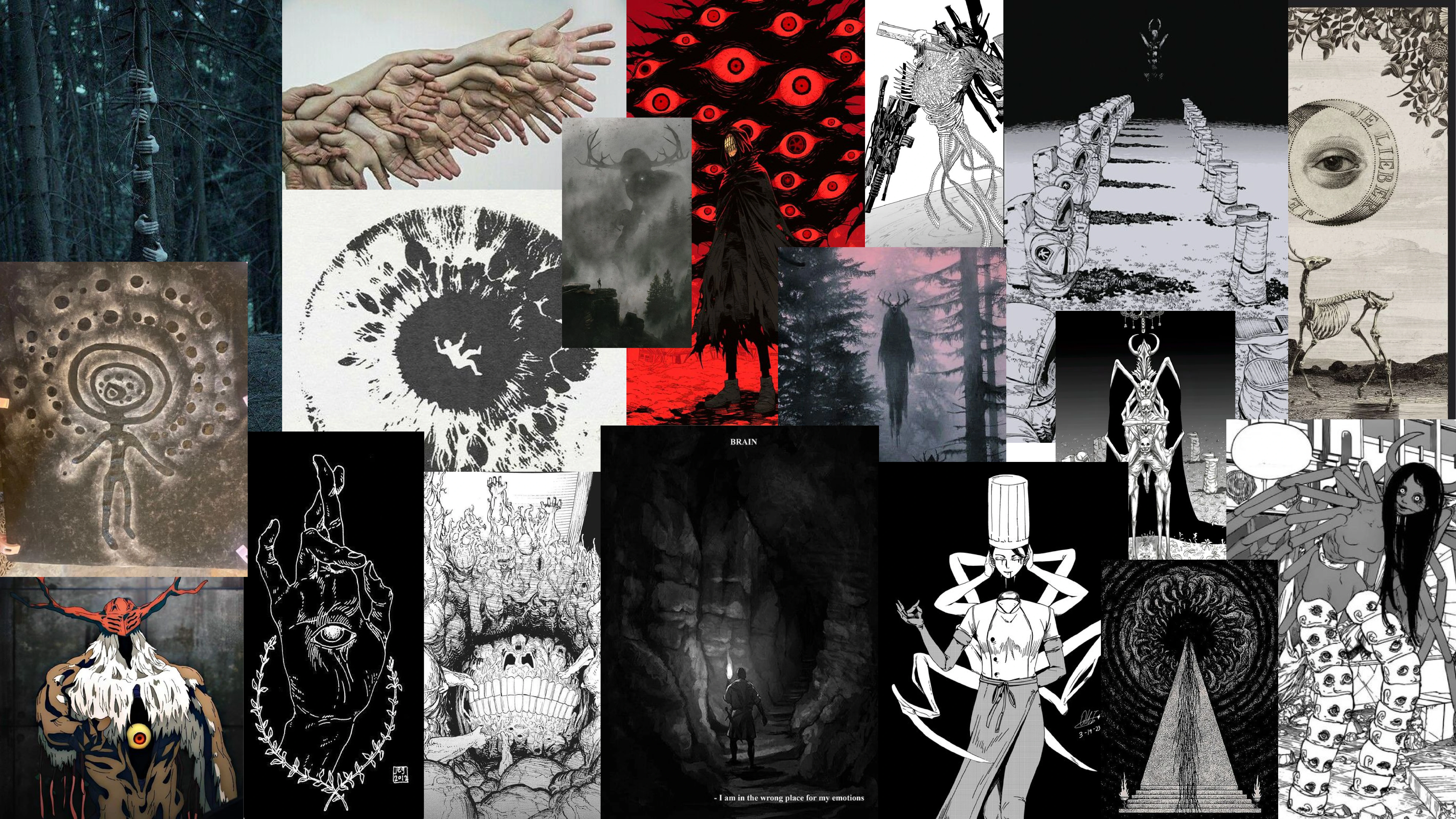 Moodboard for the Darkness Deity pulling from a lot of my personal favorite inspirations. Thank you Tatsuki Fujimoto.