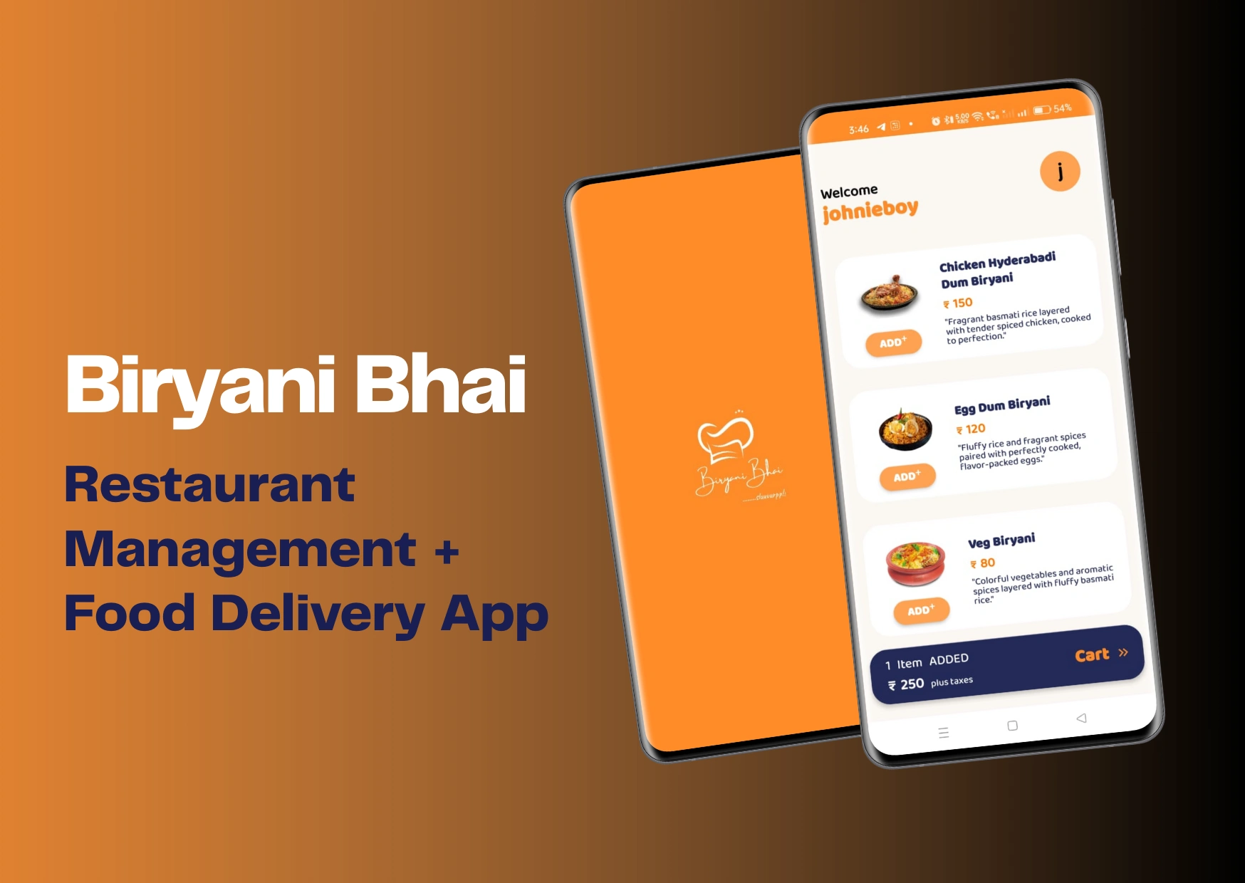 Biryani Bhai – A food delivery app serving authentic, freshly prepared biryanis and sides with a simple, fast, and mouth-watering ordering experience.