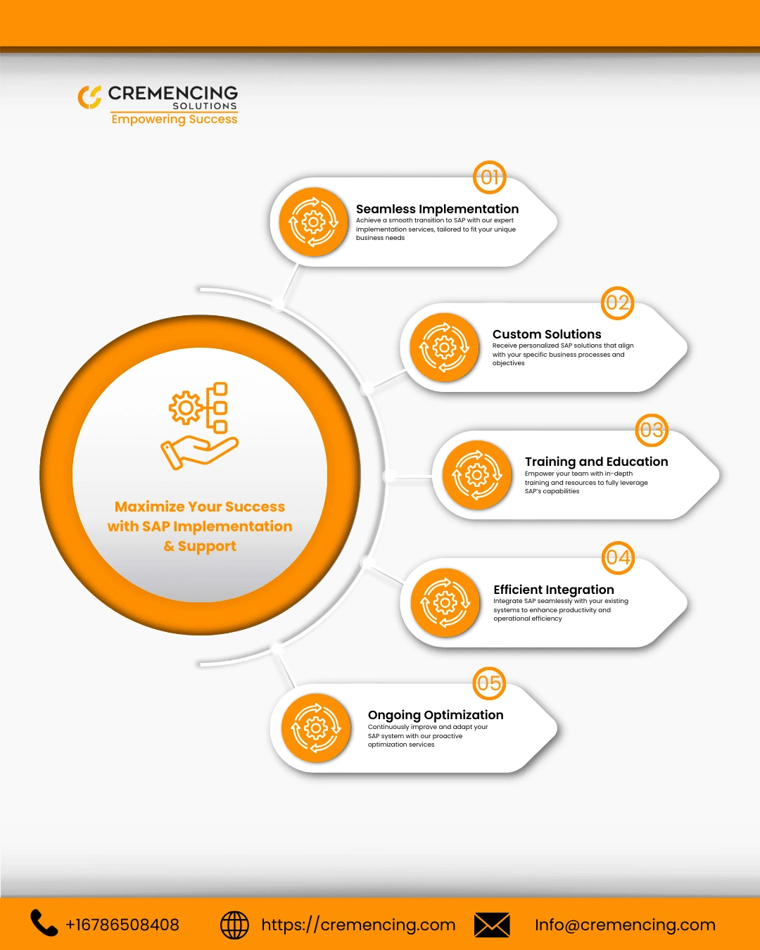 Cremencing Solution, a US-based company, specializes in SAP S/4 HANA implementations. I was tasked with designing infographics to visually represent key concepts and processes related to SAP S/4 HANA, focusing on its features, benefits, and the integration process. These infographics were designed to communicate complex technical information in a visually engaging and easily understandable way.