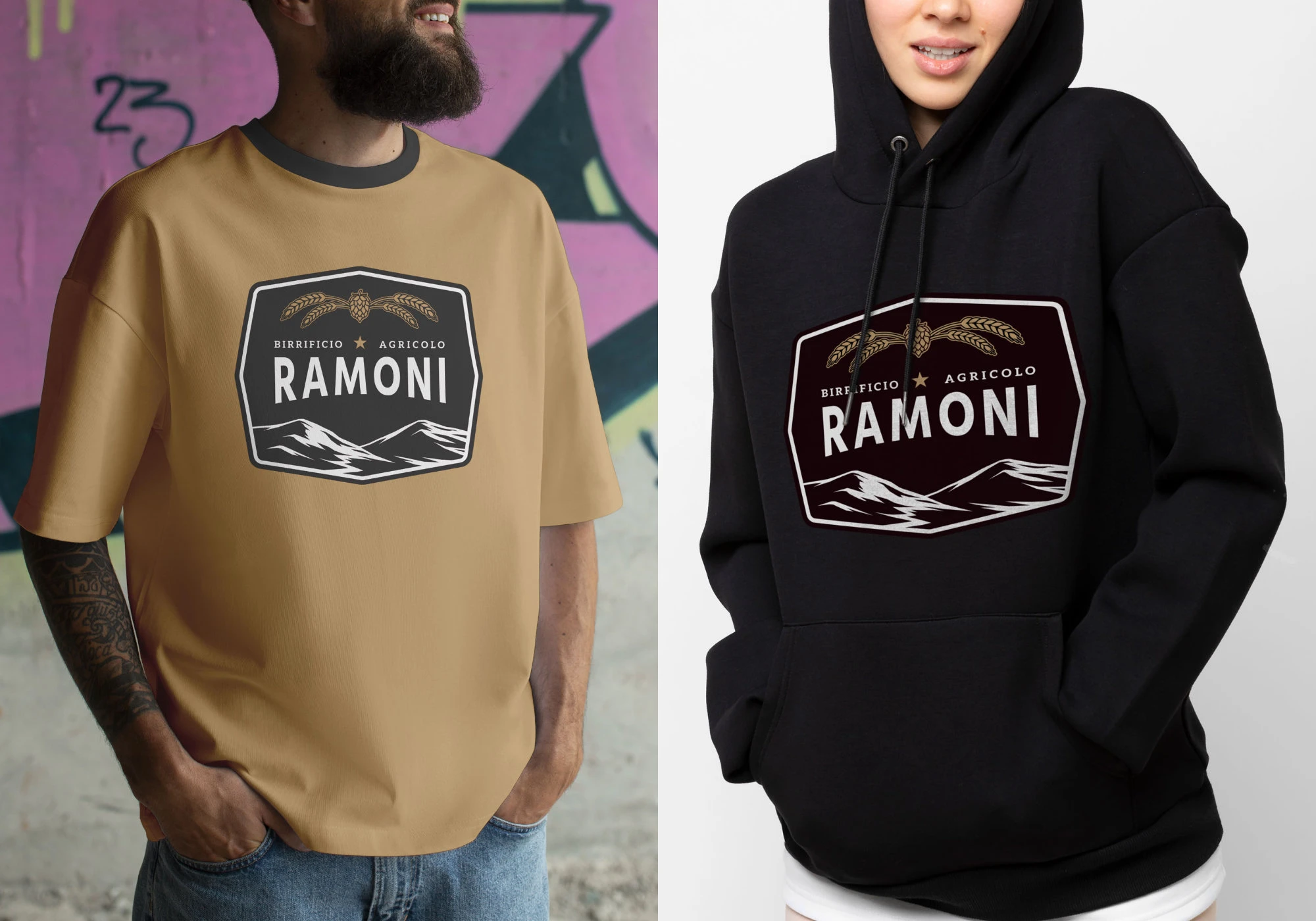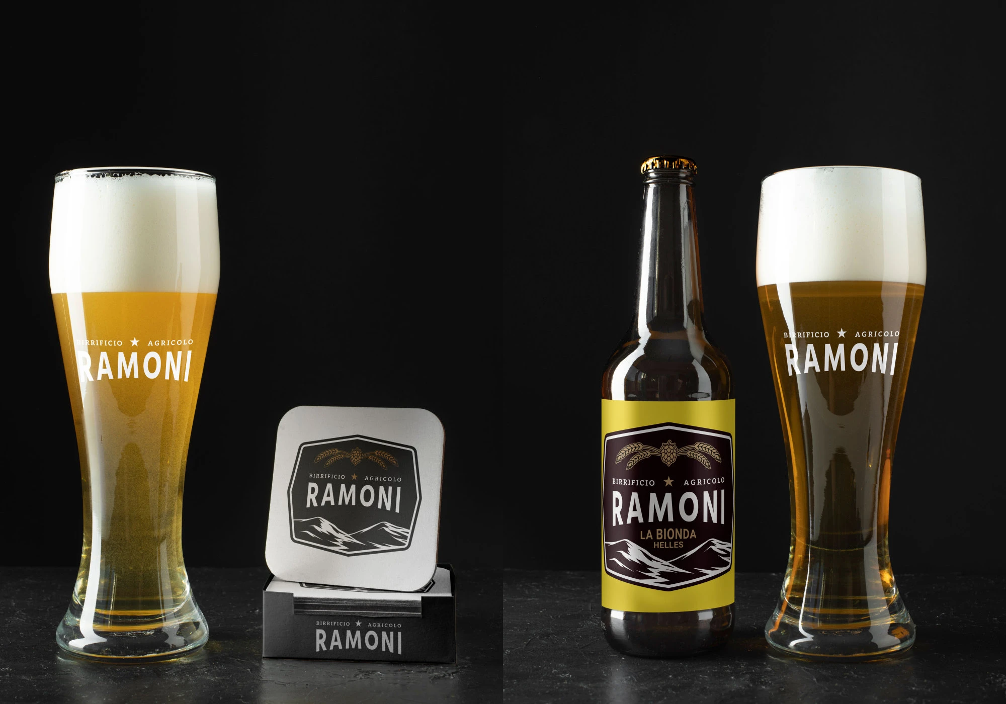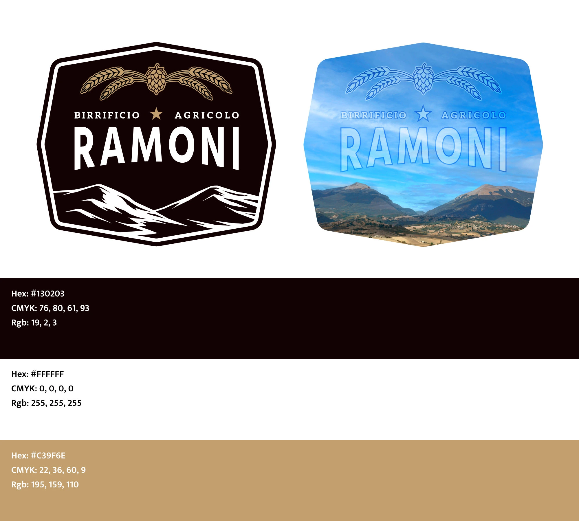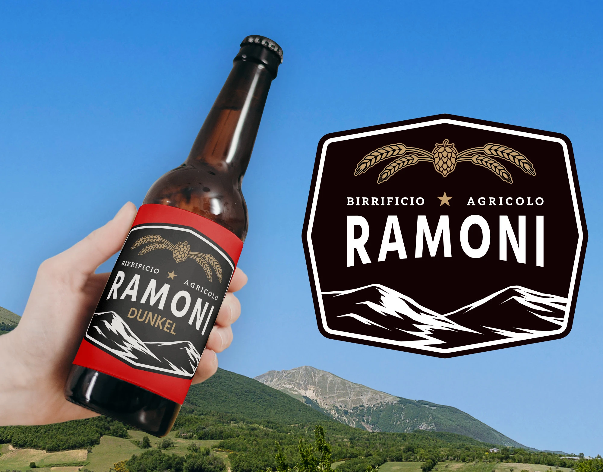 The “Birrificio Agricolo Ramoni” logo combines natural elements with a clean, straightforward design.