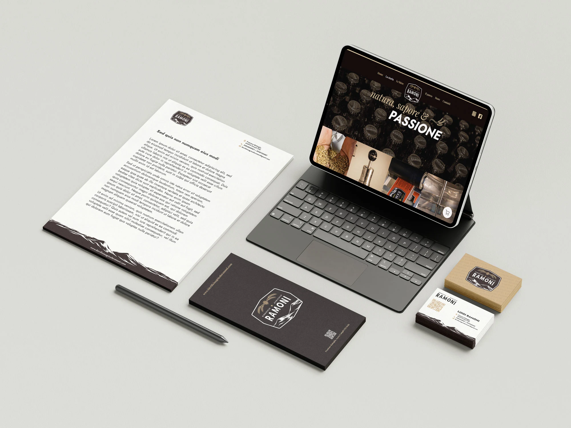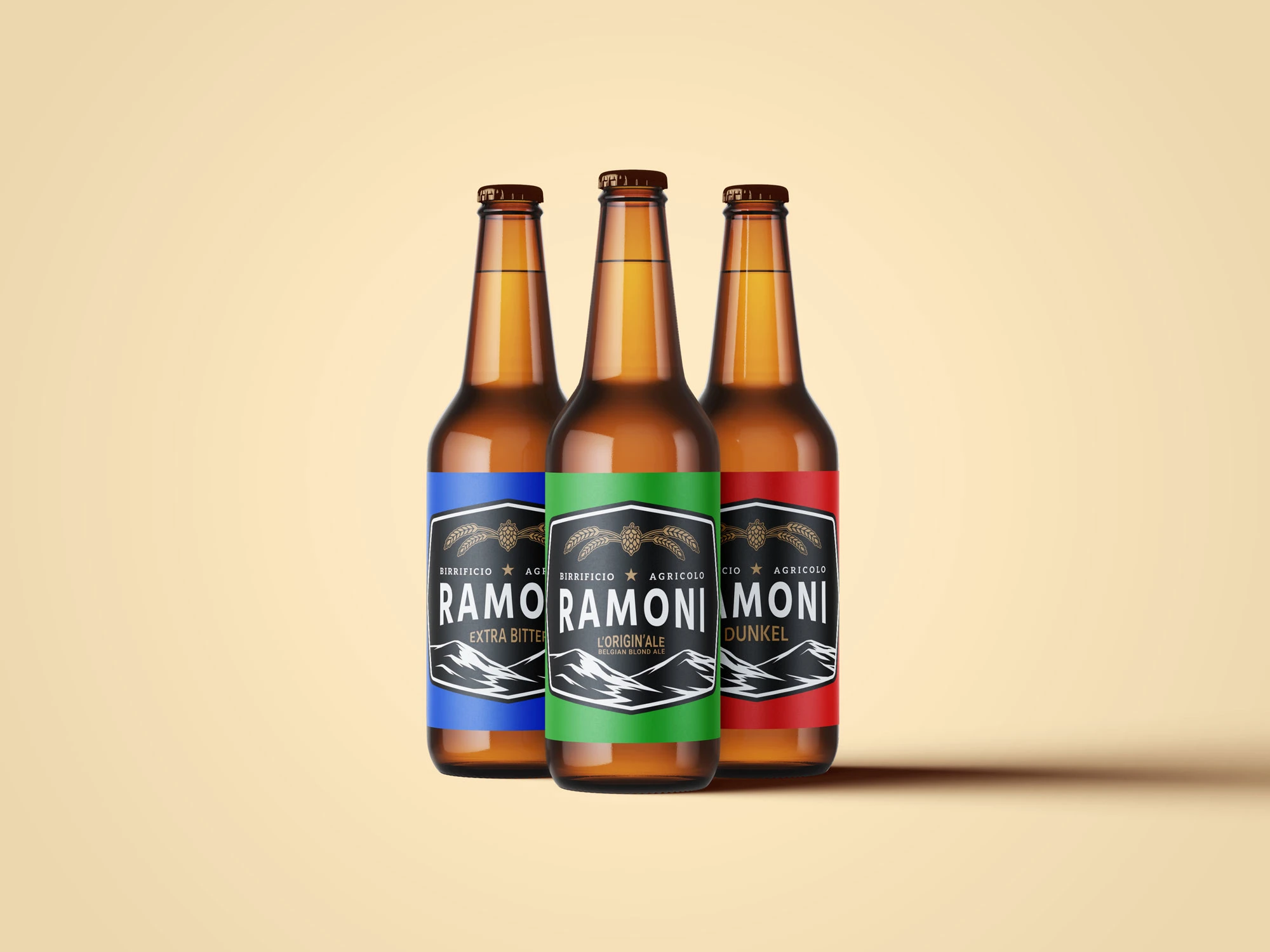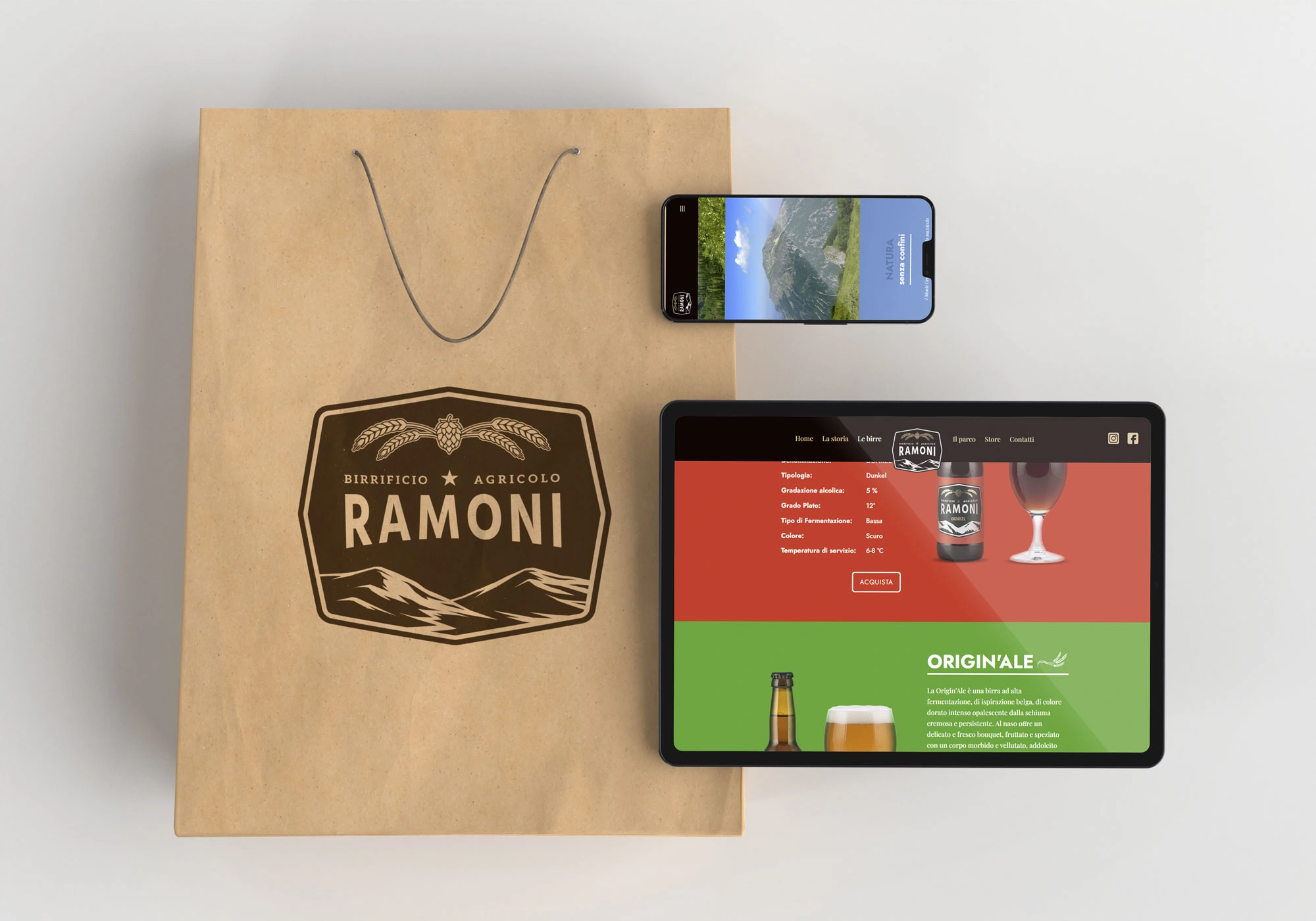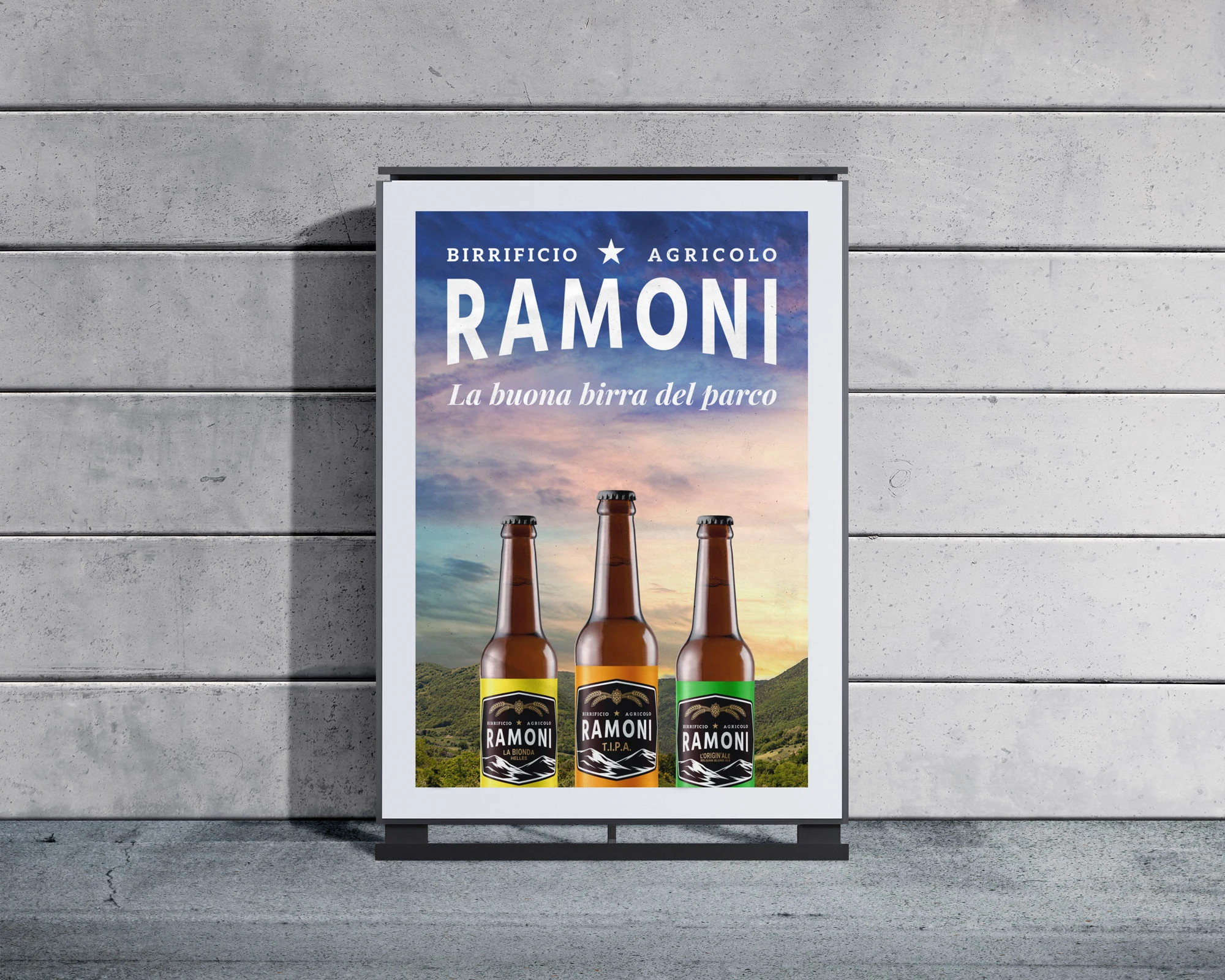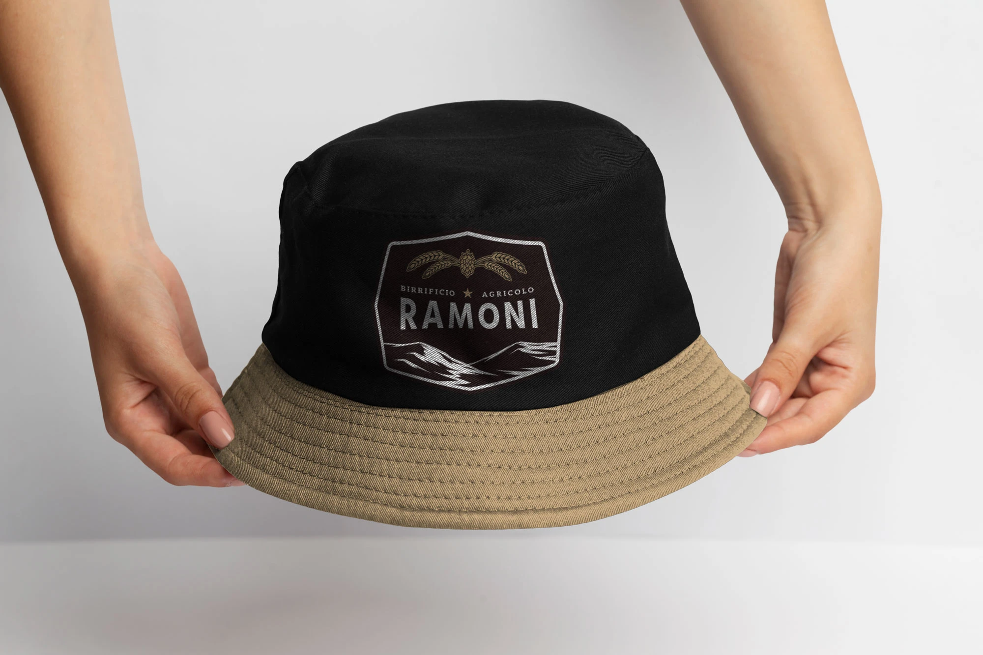 The “Birrificio Agricolo Ramoni” logo combines natural elements with a clean, straightforward design.
