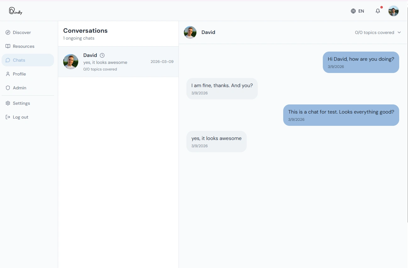 Messaging: conversations between matched users; Supabase Realtime (WebSocket) so the conversation list and chat update live when new messages or conversations are created.