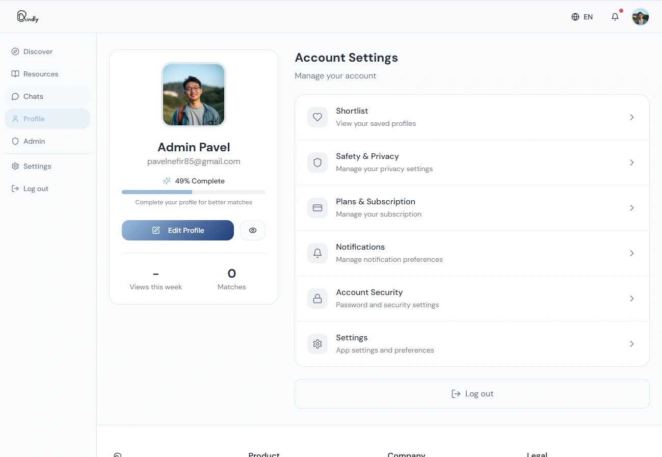 Invite-only web platform for people exploring intentional co-parenting. Users request access, complete guided onboarding, build detailed profiles (values, custody preferences, lifestyle), discover and shortlist compatible candidates, and message matches — with clear structure and privacy.